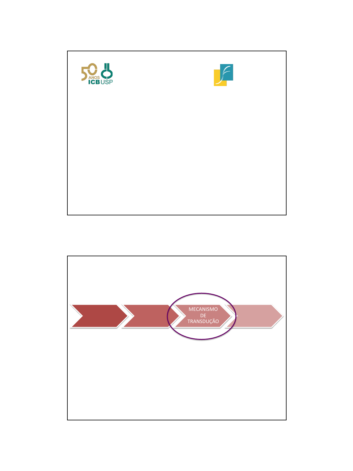 <p>30/04/22</p><p>1</p><p>BMF0120:</p><p>INTERAÇÃO FÁRMACO-RECEPTOR</p><p>E MECANISMOS DE TRANSDUÇÃO</p><p>Leticia Veras Costa Lotufo</p><p>Departamento de Farmacologia</p><p>Email: costalotufo@gmail.com</p><p>DEPARTAMENTO DE</p><p>ARMACOLOGIA</p><p>1</p><p>MECANISMOS DE TRANSDUÇÃO</p><p>FÁRMACO RECEPTOR</p><p>MECANISMO</p><p>DE</p><p>TRANSDUÇÃO</p><p>EFEITO</p><p>BIOLÓGICO</p><p>AFINIDADE è EFICÁCIA</p><p>ASPECTOS MOLECULARES DA AÇÃO DO FÁRMACOS</p><p>Fármaco deve ligar-se a receptores ou alvos</p><p>farmacológicos, causar sua ativação para</p><p>enfim causar sua resposta biológica!!!</p><p>2</p><p>30/04/22</p><p>2</p><p>ALVOS FARMACOLÓGICOS OU</p><p>RECEPTORES</p><p>• ALVOS PROTÉICOS</p><p>– Enzimas</p><p>– Transportadores</p><p>– Canais iônicos</p><p>– Receptores</p><p>“macromolécula (ou complexa macromolecular) com o</p><p>qual a molécula interage para produzir uma resposta</p><p>celular (i.e. uma alteração da função celular)”</p><p>Goodman & Gilman (12a. Edição - 2012)</p><p>OUTROS ALVOS:</p><p>Proteínas estruturais</p><p>Tubulina</p><p>DNA</p><p>Parede Celular</p><p>3</p><p>RECEPTORES</p><p>RANG et al., 2012. Farmacologia, 7a edição</p><p>4</p><p>30/04/22</p><p>3</p><p>TIPO 3 – RECEPTORES LIGADOS E</p><p>RELACIONADOS A QUINASES:</p><p>• Hélice transmembrana única</p><p>– Domínio extracelular – reconhecimento do ligante</p><p>– Domínio intracelular – tamanho e função variados –</p><p>relacionado a atividade quinase</p><p>• Efetor – quinases</p><p>– Tirosina quinases (RTKs): fatores de crescimento</p><p>epidérmico e neuronal, insulina, hormônio de</p><p>crescimento</p><p>– Serina/treonina quinases: TGF</p><p>– Receptores de Citocinas: não tem atividade intrínseca</p><p>– ativação recruta quinase (Jak)</p><p>5</p><p>Ȓ</p><p>ȼɋɵ�ąøąűƄŒŵɵøŒňɵÚƄĪƠĪþÚþąɵąŊưĪňÛƄĪøÚɵŒƊɵÚŻŻŒøĪÚþŒŻɵÚɵąŊưĪňÚ</p><p>.IEIdj]g�0Qg]hQ[<�</p><p>-kQ[<hI</p><p>.IEIdj]g�/IgQ[<�0gI][Q[<��</p><p>-kQ[<hI</p><p>.IEIdj]g�0Qg]hQ[<�</p><p>�]hN<j<hI</p><p>.IEIdj]g�<hh]EQ<G]�<�</p><p>jQg]hQ[<�fkQ[<hI</p><p>.IEIdj]g�Ok<[QYQY�</p><p>EQEY<hI</p><p>}łăğ×ăĿ¾ăņɰŎăĿĦņɋɰ</p><p>�ɉ �ɉ �ɉ ɉ $ɉ</p><p>TIPO 3 – RECEPTORES LIGADOS E</p><p>RELACIONADOS A QUINASES:</p><p>6</p><p>30/04/22</p><p>4</p><p>TIPO 3 – RECEPTORES LIGADOS E</p><p>RELACIONADOS A QUINASES:</p><p>�ąøąűƄŒŵɵøŒňɵÚƄĪƠĪþÚþąɵąŊưĪňÛƄĪøÚɵ</p><p>Ã</p><p>�ąøąűƄŒŵɵÚŻŻŒøĪÚþŒɵÚɵąŊưĪňÚƠąŵŻƊŻ</p><p>ÚƄĪƠĪþÚþąɵĪŊƄŵĬŊŻąøÚ ŻąňɵÚƄĪƠĪþÚþąɵĪŊƄŵĬŊŻąøÚ</p><p>7</p><p>Receptor inativo</p><p>Tirosina</p><p>Quinase</p><p>inativa</p><p>Quinase ativa com</p><p>domínios de ligação SH2</p><p>Adaptador SH2,</p><p>proteína Grb2</p><p>Fatores de</p><p>Transcrição</p><p>Proteína</p><p>Estrutural</p><p>Regulação</p><p>dos Genes</p><p>Quinase de</p><p>Janus (JAK)</p><p>Citocinas</p><p>Brunton et al. 2011. As bases farmacológicas da terapêutica de Goodman & Gilman. 12a. Ed.</p><p>8</p><p>30/04/22</p><p>5</p><p>TIPO 3 – RECEPTORES LIGADOS E</p><p>RELACIONADOS A QUINASES:</p><p>• Crescimento e diferenciação celular</p><p>• Transdução geralmente envolve dimerização e</p><p>autofosforilação do receptor</p><p>• Regulação indireta da transcrição gênica</p><p>• Vias importantes:</p><p>– Ras/Raf/proteína – mitógenos</p><p>– Jak/Stat – citocinas – síntese e liberação de</p><p>mediadores inflamatórios</p><p>9</p><p>EXEMPLOS DE FÁRMACOS QUE</p><p>MODULAM RECEPTORES DO TIPO 3</p><p>DÛŵňÚøŒŻɵŴƊąɵÚĞąňɵąňɵŵąøąűƄŒŵąŻɵªĪŵŒŻĪŊÚɵ�ƊĪŊÚŻąɵɛªcɜ</p><p>Ɣ �ăłĦņăğ¾ɰŁœăğ¾ņá</p><p>ż EğņœĘăğ¾</p><p>ż EоŎăğăÖá</p><p>ż Aáł×áĿŎăğ¾</p><p>Ç</p><p>Ɣ �áłĦğăğ¾ɞ�łáĦğăğ¾ɰŁœăğ¾ņá</p><p>ż �Ħöáł¾ğăÖáɰɘ�Tɰáɰ��Tə</p><p>ż $ŧáłĦĘăĞœņɰɘĞ�d�ə</p><p>10</p><p>30/04/22</p><p>6</p><p>RECEPTOR GUANILIL CICLASE</p><p>• Neseritide</p><p>– Atua na Guanilil</p><p>ciclase de</p><p>membrana</p><p>• Nitrovasodilatores</p><p>– Atuam na Guanilil</p><p>ciclase solúvel</p><p>11</p><p>Exemplos</p><p>ÂÇ</p><p>�k<[QYQY�EQEY<hI</p><p>�GI�ZIZDg<[<</p><p>�k<[QYQY�EQEY<hI�h]YmpIY</p><p>.ƦąňűŁŒɵþąɵ.ɍɵÆĪÚɵþąɵŻĪŊÚŁĪưÚûóŒɵFn�ø</p><p>12</p><p>30/04/22</p><p>7</p><p>QUINASES E A TRANSDUÇÃO DE SINAIS</p><p>RANG et al., 2012. Farmacologia, 7a edição</p><p>Receptores</p><p>ligados à GC</p><p>Receptores</p><p>ligados a</p><p>quinases</p><p>Auto-</p><p>fosforilação</p><p>CAM</p><p>quinases</p><p>CASCATAS DE QUINASES</p><p>PROTEÍNAS-ALVO</p><p>RESPOSTA</p><p>Enzimas Receptores Canais</p><p>Iônicos</p><p>Transportado</p><p>res</p><p>Fatores de</p><p>crescimento</p><p>Proteínas</p><p>contráteis</p><p>Mecanismos</p><p>secretórios</p><p>Resposta</p><p>fisiológicas</p><p>Respostas</p><p>Imunológicas</p><p>Apoptose Transformação</p><p>maligna</p><p>Crescimento Diferenciação</p><p>13</p><p>TIPO 4 : RECEPTORES NUCLEARES</p><p>• Receptores solúveis ou intracelulares</p><p>– Nucleares</p><p>– Citoplasmáticos</p><p>• Estrutura: proteínas monoméricas – 4 domínios</p><p>– N-terminal (sítio Af-1) – reconhecimento do ligante</p><p>– Domínio central – reconhecimento e ligação no DNA</p><p>– Região da dobradiça – dimerização</p><p>– Região C-terminal (sítio Af-2) - reconhecimento do</p><p>ligante (Ligação a HSP90 – inativação durante</p><p>repouso)</p><p>14</p><p>30/04/22</p><p>8</p><p>TIPO 4: RECEPTORES NUCLEARES</p><p>533</p><p>Some Dissolved Gases Cross the Plasma Membrane and</p><p>Activate Intracellular Enzymes Directly</p><p>Steroid hormones and thyroid hormones are not the only extracellular</p><p>signal molecules that can pass through the plasma membr