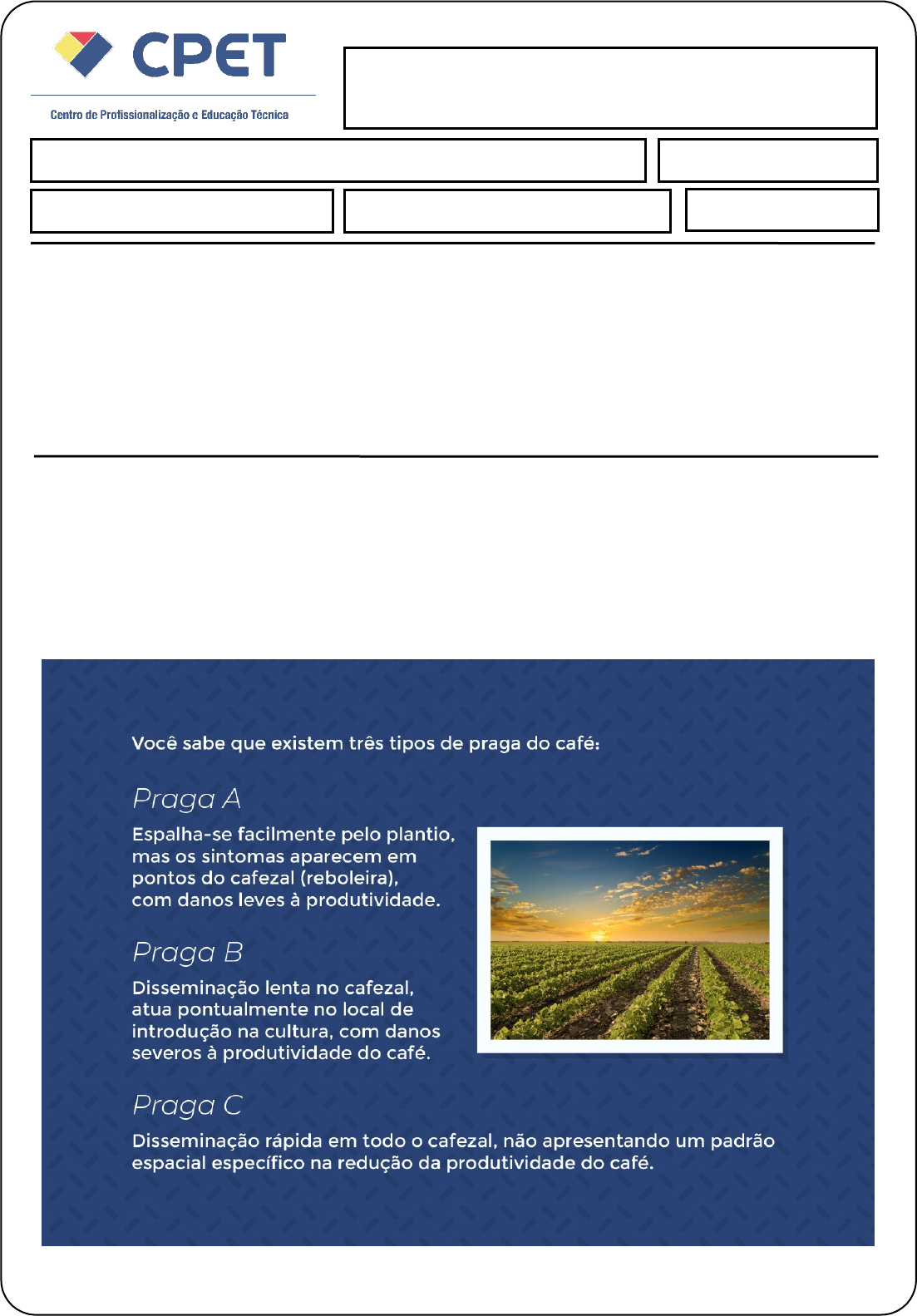 <p>Geoprocessamento</p><p>Aluno (a): gisele rodrigues berno</p><p>Data: 29/01/24</p><p>Avaliação Pesquisa/Prática</p><p>NOTA:</p><p>INSTRUÇÕES:</p><p>· Esta Avaliação contém 1 (uma) questão, totalizando 10 (dez) pontos.</p><p>· Você deve preencher dos dados no Cabeçalho para sua identificação</p><p>· Nome / Data de entrega</p><p>· As respostas devem ser digitadas abaixo de cada pergunta.</p><p>· Ao terminar, grave o arquivo com o nome Avaliação Pesquisa/Prática.</p><p>· Envio o arquivo pelo sistema.</p><p>No cultivo do café, diversas são as pragas e doenças que podem reduzir sua produtividade. Dependendo do padrão espacial em que ocorre determinado sintoma, torna-se possível a identificação do agente causador do problema.</p><p>Você foi contratado por uma grande empresa que planta café e exporta para vários países. Dentre as suas atribuições, está a identificação de pragas e doenças que acometem o cultivo da planta.</p><p>Considerando essas informações, seu chefe o questionou sobre alguns temas relacionados à identificação dos sintomas ocasionados pelas pragas A, B e C. Sendo assim, responda:</p><p>a) Quais fontes de dados poderiam ser utilizadas para identificação dessa praga?</p><p>Como é um caso especifico a ser solucionado, é necessário o levantamento de dados primários.</p><p>b) Quais seriam as variáveis mínimas necessárias para que a coleta de dados reflita na identificação do tipo de praga?</p><p>As variáveis mínimas a serem coletadas nesse levantamento são: o grau de perda de produtividade e as coordenadas geográficas do local de ocorrência do dano. De acordo com a distribuição geográfica e a intensidade desses danos, torna-se possível a identificação da praga.</p><p>c) Qual tipo de amostragem poderia ser aplicada no cafezal?</p><p>A amostragem sistemática apresentaria maior potencial de aplicação, visto que poderia detectar a forma de distribuição das três pragas por meio de coletas de pontos retirados a distância predeterminadas</p><p>Avaliação Pesquisa/Prática: Avaliação Financeira em Logística</p><p>image1.png</p><p>image2.jpeg</p>
