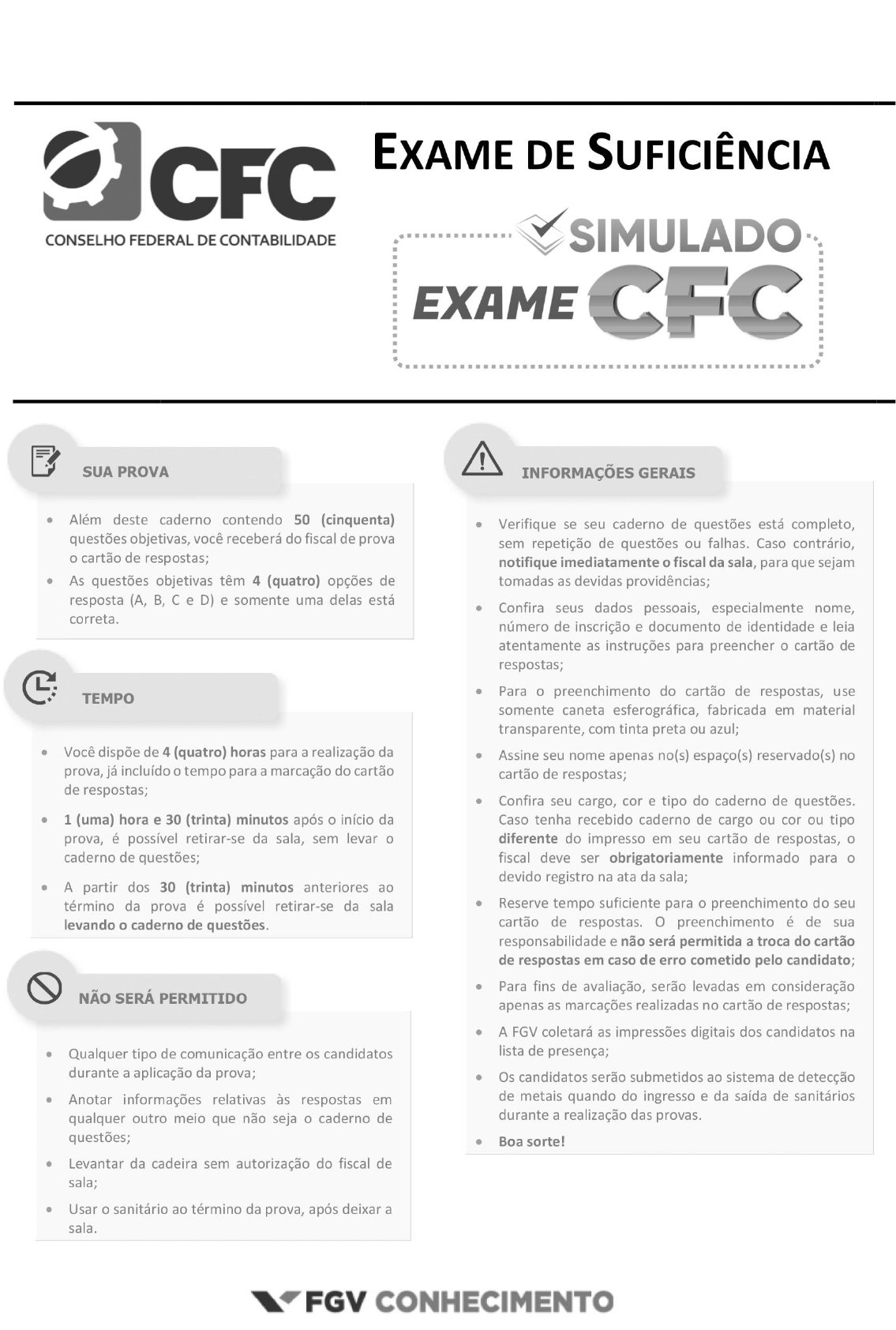 <p>SIMULADO EXAME CFC PÁGINA</p><p>2</p><p>1</p><p>Uma empresa apresentou um lucro líquido de R$ 500.000 ao final do exercício, mas tinha ações preferenciais</p><p>acumuladas que totalizavam R$ 150.000 em dividendos prioritários. Considerando que a empresa possui 50.000</p><p>ações ordinárias em circulação e nenhuma ação preferencial é conversível, qual seria o lucro por ação ordinária a</p><p>ser divulgado nas demonstrações contábeis?</p><p>(A) R$ 10,00</p><p>(B) R$ 7,00</p><p>(C) R$ 7,50</p><p>(D) R$ 6,00</p><p>2</p><p>Uma empresa, ao revisar seus ativos imobilizados, verificou que uma de suas máquinas já não possui mais</p><p>potencial para gerar benefícios econômicos futuros. O valor contábil atual da máquina ainda está registrado no</p><p>balanço, porém ela não será mais utilizada pela companhia. Qual o procedimento correto a ser adotado pela</p><p>entidade em relação a este ativo?</p><p>(A) A empresa deve desreconhecer a máquina, retirando-a do balanço patrimonial.</p><p>(B) A máquina deve permanecer registrada até que esteja totalmente depreciada.</p><p>(C) O ativo deve ser transferido para o passivo circulante como um passivo contingente.</p><p>(D) A máquina deve ser mantida no ativo, mas sua depreciação deve ser acelerada.</p><p>3</p><p>Após o fechamento das demonstrações contábeis do ano de 2023, uma empresa recebeu uma notificação de um</p><p>órgão fiscal, exigindo o pagamento de um passivo que não havia sido provisionado anteriormente. Como a</p><p>empresa deve tratar este evento, considerando que a notificação foi recebida antes da autorização para a emissão</p><p>das demonstrações financeiras?</p><p>(A) A empresa deve manter as demonstrações inalteradas e divulgar o fato nas notas explicativas.</p><p>(B) O ajuste deve ser realizado apenas nas demonstrações do próximo período.</p><p>(C) A empresa deve ajustar as demonstrações financeiras de 2023, reconhecendo o passivo.</p><p>(D) Não é necessário nenhum ajuste, pois o passivo se refere a fatos do período subsequente.</p><p>4</p><p>O Código de Ética Profissional do Contador estabelece regras claras sobre a transferência de trabalhos entre</p><p>profissionais. Suponha que um contador contratado para um determinado projeto precise transferir a execução do</p><p>serviço para outro profissional. Sob quais condições essa transferência pode ser feita, sem infringir o Código de</p><p>Ética?</p><p>(A) Desde que haja autorização expressa por escrito do cliente.</p><p>(B) Caso o outro profissional tenha sido indicado pelo próprio cliente.</p><p>(C) Somente com a aprovação do Conselho Regional de Contabilidade.</p><p>(D) Se o contador informante for sócio do profissional que assumirá o trabalho.</p><p>5</p><p>Uma empresa adquiriu ações próprias para manutenção em tesouraria e pretende vendê-las futuramente. De</p><p>acordo com as normas do CPC, como as ações em tesouraria devem ser tratadas no balanço patrimonial e nas</p><p>SIMULADO EXAME CFC PÁGINA</p><p>3</p><p>demonstrações financeiras da empresa?</p><p>(A) Como ativo circulante, uma vez que poderão ser vendidas.</p><p>(B) Como redutor do patrimônio líquido, até sua venda ou cancelamento.</p><p>(C) Como passivo circulante, já que a empresa deverá se desfazer delas.</p><p>(D) Como ativo imobilizado, por serem bens intangíveis da empresa.</p><p>6</p><p>De acordo com o CPC 46 (R2), o valor justo de um ativo financeiro deve ser medido utilizando os preços</p><p>observáveis em mercados ativos. No entanto, nem sempre o mercado principal está disponível para negociação.</p><p>Nesse caso, a entidade deve:</p><p>(A) Adotar uma abordagem conservadora, registrando o ativo pelo custo histórico corrigido.</p><p>(B) Estimar o valor justo com base nos preços de ativos similares, sem considerar o mercado.</p><p>(C) Não registrar o valor justo até que um mercado adequado esteja disponível.</p><p>(D) Utilizar o preço do mercado mais vantajoso disponível, considerando custos de transação.</p><p>7</p><p>Uma empresa de tecnologia adquiriu direitos sobre patentes que serão usadas para o desenvolvimento de novos</p><p>produtos. Como esses direitos devem ser contabilizados?</p><p>(A) Despesa operacional no exercício de aquisição.</p><p>(B) Passivo circulante até a conclusão do desenvolvimento dos produtos.</p><p>(C) Receita diferida, reconhecida ao longo do tempo.</p><p>(D) Ativo intangível, desde que gerem benefícios econômicos futuros identificáveis.</p><p>8</p><p>Um contador é convidado a assumir um novo projeto de auditoria. Contudo, ao analisar os requisitos técnicos, ele</p><p>percebe que não possui a competência necessária para realizar o trabalho com qualidade. Segundo o Código de</p><p>Ética Profissional, o contador deve:</p><p>(A) Recusar o convite e informar ao cliente sobre sua limitação técnica.</p><p>(B) Aceitar o projeto, mas buscar capacitação durante a execução.</p><p>(C) Delegar a responsabilidade a outro contador, sem necessidade de comunicar o cliente.</p><p>(D) Aceitar o projeto, contanto que haja supervisão de um contador mais experiente.</p><p>9</p><p>Segundo a Lei das Sociedades por Ações, as demonstrações financeiras devem ser elaboradas de forma a fornecer</p><p>informações úteis para a tomada de decisões econômicas pelos usuários. Com base nisso, como a empresa deve</p><p>descrever os princípios e métodos contábeis utilizados para preparar suas demonstrações?</p><p>(A) Em um relatório separado, exclusivo para os auditores independentes.</p><p>(B) Nas Notas Explicativas que acompanham as demonstrações financeiras.</p><p>(C) No Relatório da Administração, junto às projeções financeiras.</p><p>(D) No Balanço Patrimonial, junto à descrição dos principais ativos.</p><p>10</p><p>SIMULADO EXAME CFC PÁGINA</p><p>4</p><p>Em uma papelaria, quais dos seguintes itens deve ser considerado um ativo não monetário de aco