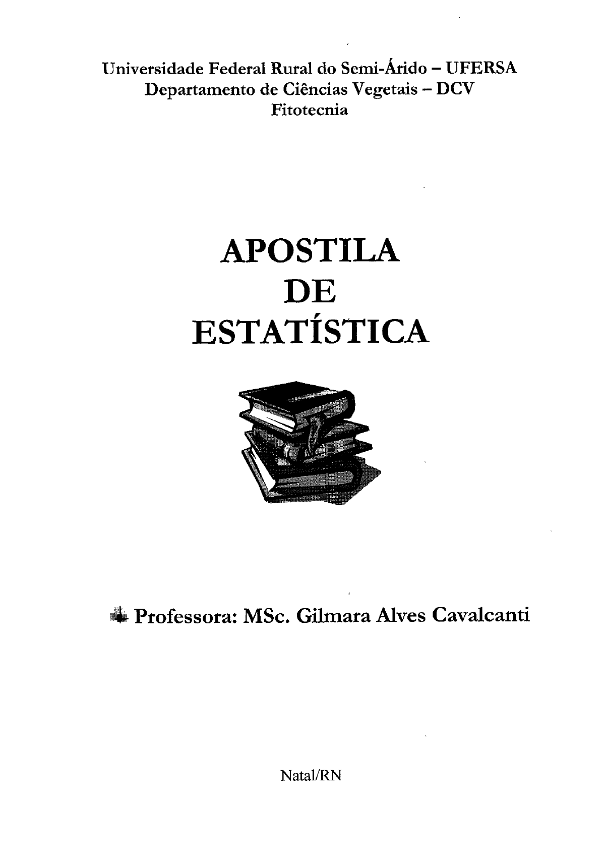 <p>Universidade Federal Rutal do Semi-Árido —- UFERSA</p><p>Departamento de Ciências Vegetais —- DCV</p><p>Fitotecnia</p><p>APOSTILA</p><p>DE</p><p>ESTATÍSTICA</p><p>= Professora: MSc. Gilmara Alves Cavalcanti</p><p>Natal/RN</p><p>Mude</p><p>mas comece devagar,</p><p>porque a direção é mais importante</p><p>que a velocidade.</p><p>[...]</p><p>Quando sair,</p><p>Procure andar pelo outro lado da tua.</p><p>Depois mude de caminho,</p><p>ande pot outras ruas,</p><p>calmamente,</p><p>observando com atenção</p><p>os lugares por onde você passa.</p><p>[.]</p><p>ude.</p><p>Lembre-se que a vida é uma só.</p><p>[...]</p><p>Se você não encontrar razões pata ser livre,</p><p>invente-as.</p><p>Seja criativo.</p><p>[..]</p><p>Experimente coisas novas.</p><p>Troque novamente.</p><p>Mude, de novo.</p><p>Experimente outra vez.</p><p>(Clarice Lispector)</p><p>De tudo ficatam três coisas:</p><p>A certeza de que estamos sempre a começar...</p><p>A certeza de que é preciso continuar...</p><p>A certeza de que seremos interrompidos antes de terminar...</p><p>Portanto, devemos:</p><p>Fazer da interrupção um caminho novo...</p><p>Fazer da queda um passo de dança...</p><p>Do medo uma escada...</p><p>Do sonho uma ponte...</p><p>Da procura um encontro...</p><p>E assim terá valido a pena existir...</p><p>(Fernando Sabino)</p><p>PROGRAMA:</p><p>UNIDADE I: ESTATÍSTICA DESCRITIVA.</p><p>1.1 — Introdução.</p><p>1.2 — Coleta, Organização e Apresentação de Dados.</p><p>1.3 — Medidas de Posição (Medidas de Tendência Central).</p><p>1.4 — Medidas de Dispersão e Achatamento.</p><p>UNIDADE II: CONJUNTOS E PROBABILIDADE.</p><p>2.1 — Conjuntos e Subconjuntos.</p><p>2.2 — Operações com Conjuntos.</p><p>2.3 — Conceitos de Probabilidade (Experimento, Espaço Amostral, Eventos).</p><p>2.4 — Probabilidade e suas Leis.</p><p>2.5 — Probabilidade Condicional.</p><p>UNIDADE III: VARIÁVEIS ALEATÓRIAS E DISTRIBUIÇÃO DE PROBABILIDADE.</p><p>3.1 — Variáveis Aleatórias (Conceitos).</p><p>3.2 — Distribuições de Probabilidade Discretas.</p><p>3.3 — Funções de Distribuição para Variáveis Aleatórias Discretas.</p><p>3.4 — Distribuições de Probabilidade Contínuas.</p><p>UNIDADE IV: DISTRIBUIÇÕES ESPECIAIS DE PROBABILIDADE.</p><p>4.1 — Distribuição Binomial.</p><p>4.2 — Distribuição de Poisson.</p><p>4.3 — Distribuição Normal.</p><p>4.4 — Distribuição Qui-quadrado.</p><p>4.5 — Distribuição T de Student.</p><p>UNIDADE V: TEORIA DE AMOSTRAGEM.</p><p>5.1 — Introdução.</p><p>5.2 — Amostragem Probabilística (Amostragem Aleatória Simples, Amostragem Sistemática,</p><p>Amostragem Estratificada.).</p><p>5.3 — Amostragem Não-Probabilística (Amostragem a Esmo ou sem Norma, Amostragem</p><p>Intencionais).</p><p>UNIDADE VI: TEORIA DE ESTIMAÇÃO.</p><p>6.1 — Introdução.</p><p>6.2 — Estimação por Ponto e por Intervalo. :</p><p>6.3 — Estimando a Média em Grandes e Pequenas Amostras.</p><p>6.4 — Estimando a Diferença entre Duas Médias em Grandes e Pequenas Amostras.</p><p>UNIDADE VI: TESTES DE HIPÓTESES</p><p>7.1 — Hipótese Estatística.</p><p>7.2 — Erros Tipo Le IH.</p><p>7.3 — Testes Unilaterais e Bilaterais.</p><p>7.4 — Testes Referentes a Médias.</p><p>7.5 — Teste de Ajustamento de Distribuição Teóricas.</p><p>7.6 — Testes de Independências.</p><p>UNIDADE VIII: CORRELAÇÃO E REGRESSÃO LINEAR.</p><p>8.1 — Diagrama de Dispersão.</p><p>8.2 — Coeficiente de Correlação.</p><p>8.3 — Regressão Linear Simples.</p><p>UNIDADE I: ESTATÍSTICA DESCRITIVA</p><p>1.1 - INTRODUÇÃO.</p><p>ESTATÍSTICA mu» CIÊNCIA</p><p>"A ciência não é um conhecimento definitivo sobre a realidade, mas um conhecimento</p><p>hipotético, que pode ser questionado e corrigido".</p><p>(Sónia Vieira)</p><p>Ensinar ciência não significa apenas descrever fatos, enunciar leis e apresentar novas</p><p>descobertas, mas ensinar o método científico, que é a maneira de buscar o conhecimento.</p><p>,</p><p>Exige: Organização dos dados, análise e tomada de decisões em condições de incerteza.</p><p>v e</p><p>ESTATÍSTICA: ferramenta do método científico</p><p>Os métodos estatísticos vêm sendo cada vez mais utilizados nas mais diversas áreas.</p><p>O que é Estatística?</p><p>Definições:</p><p>(1) "É a parte da Matemática Aplicada que trata de chegar a conclusões a partir de dados</p><p>observados".</p><p>(2) "É a ciência que trata de da organização, descrição, análise e interpretação de dados</p><p>experimentais”.</p><p>(3) "É a ciência que se ocupa dos fenômenos aleatórios".</p><p>(4) "É o estudo dos métodos e procedimentos para recolher, classificar, resumir e</p><p>analisar dados e, a partir deles, estabelecer inferências científicas”.</p><p>(5) "Não se limita ao levantamento e apresentação de dados numéricos dispostos em</p><p>tabelas e gráficos, mas também constitui na ciência da tomada de decisões ante a</p><p>incerteza”.</p><p>(6) "É a ciência ocupada em medir com precisão a imprecisão”.</p><p>(7) “É a ciência que se ocupa em medir a incerteza”.</p><p>Generalizando:</p><p>É a ciência que coleta, classifica e avalia numericamente fatos que servirão de base para</p><p>extrair conclusões. É um conjunto de técnicas para se obter conhecimento preciso a partir de</p><p>informações incompletas; é um sistema científico para coleta, organização, análise,</p><p>interpretação e apresentação de informações que possam ser colocadas sob forma numérica.</p><p>A Estatística trata de idéias e métodos que visam aperfeiçoar a obtenção de conclusões a</p><p>partir de informações numéricas, na presença da incerteza. :</p><p>Profa. MSc. Gilmara Alves Cavalcanti 4</p><p>Métodos Estatísticos: são métodos adaptados ao esclarecimento de dados quantitativos sujeitos à</p><p>influência de uma multiplicidade de causas.</p><p>Ramos da Estatística:</p><p>a) Estat