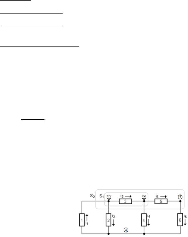<p>CAPÍTULO 2</p><p>CIRCUITOS RESISTIVOS</p><p>2.1 INTRODUÇÃO</p><p>Para se resolver circuitos resistivos, e para outras classes de circuitos que serão vistos posteriormente, utiliza-se basicamente duas ferramentas para a análise: as leis de Kirchhoff e a lei de Ohm.</p><p>2.2. LEIS DE KIRCHHOFF</p><p>As leis de Kirchhoff serão apresentadas como postulados, não cabendo aqui, suas deduções, por exigirem o uso das equações de Maxwell, as quais estão fora do propósito deste curso. Antes de enunciá-las, serão estabelecidas algumas definições importantes, como segue:</p><p>- Nó (ou nodo): é a conexão entre dois ou mais elementos.</p><p>- Super nó (ou nó composto): é qualquer contorno fechado envolvendo mais de um nó.</p><p>- Malha (ou malha simples): é qualquer percurso fechado sem elementos intermediários ou que não contenham outros percursos fechados.</p><p>- Super malha (ou malha composta): é qualquer percurso fechado abrangendo mais de uma malha.</p><p>LEI DE KIRCHHOFF PARA AS CORRENTES</p><p>Esta lei pode ser enunciada assim: para qualquer circuito concentrado, em qualquer instante, a soma algébrica das correntes que concorrem em um nó, ou super nó, qualquer, é sempre nula.</p><p>Como em cada nó pode haver correntes saindo ou chegando, é preciso arbitrar-se os sinais destas correntes. Por exemplo, se as correntes que saem do nó são escolhidas como positivas, então as correntes que chegam são negativas ou vice-versa. Por isso a lei fala em soma algébrica.</p><p>Usando a figura 2-1 para ilustrar esta lei, pode-se escrever as seguintes equações para os quatro nós e para os super nós S1 e S2, onde os seis bipolos (elementos de dois terminais), numerados de 1 a 6, têm os sentidos das correntes escolhidos de forma arbitrária.</p><p>Nó 1: –i1 + i2 + i3 = 0 (2-1)</p><p>Nó 2: –i3 + i4 + i5 = 0 (2-2)</p><p>Nó 3: –i5 + i6 = 0 (2-3)</p><p>Nó 4: i1 – i2 – i4 – i6 = 0 (2-4)</p><p>Super nó S1: –i1 + i2 + i4 + i5 = 0 (2-5)</p><p>Super nó S2: –i1 + i2 + i4 + i6 = 0 (2-6)</p><p>Fig. 2-1: Circuito para ilustração da primeira lei de Kirchhoff</p><p>Observem-se, nestas equações, que se escolheram para correntes negativas as que chegam aos nós e como positivas as que saem do nó. Esta escolha, obviamente, é arbitrária, já que o segundo membro de cada equação é nulo.</p><p>Note-se também que, as equações dos super nós, correspondem à soma das equações dos nós envolvidos pelos super nós. Assim, por exemplo, a equação (2-5) é o resultado da soma, membro a membro, das equações (2-1) e (2-2).</p><p>EQUAÇÕES INDEPENDENTES DE CORRENTES</p><p>As equações de correntes escritas para os n nós de um circuito, não são independentes. De fato, qualquer corrente de um bipolo sai de um nó e entra no outro, assim a soma das equações membro a membro é sempre nula.</p><p>Para que se tenham equações independentes, elimina-se uma equação de um nó qualquer. Feito isto, as (n – 1) equações restantes, pode ser mostrado, se tornam independentes.</p><p>Se as correntes dos bipolos forem agrupadas em um vetor coluna i, as equações independentes de correntes podem ser colocadas na forma matricial:</p><p>Ai = o</p><p>Onde, a matriz A é chamada matriz de incidência do circuito, i é o vetor coluna das correntes e o é o vetor coluna nulo. O posto da matriz A é sempre (n – 1). As entradas da matriz só podem ser:+1 (se a corrente sai do nó), –1 (se entra) ou 0 (se o bipolo não está ligado ao nó). Em cada coluna da matriz podem existir, no máximo, duas entradas não-nulas, com sinais diferentes.</p><p>A matriz de incidência descreve completamente a maneira como os bipolos de um circuito estão interligados, isto é, descreve a topologia do circuito.</p><p>CORRENTES INDEPENDENTES</p><p>Das equações independentes, as correntes independentes são àquelas a partir das quais as equações permitem calcular as (n – 1) correntes restantes. Na linguagem de sistemas lineares visto em álgebra, as correntes independentes são as incógnitas livres e as demais são as líderes. O número de correntes independentes é dado por:</p><p>b – n + 1</p><p>onde b é o número de bipolos e n é o número de nós.</p><p>OBSERVAÇÃO: As colunas das incógnitas líderes sempre formam uma matriz quadrada não singular, isto é, com determinante não-nulo.</p><p>Exercício: A partir das equações dos nós do circuito da figura 2-1, elimine a equação do nó 4 e monte a matriz de incidência para as equações restantes. Quantas correntes são independentes e quais são elas?</p><p>LEI DE KIRCHHOFF PARA AS TENSÕES</p><p>Esta lei pode ser enunciada assim: para qualquer circuito concentrado, em qualquer instante, a soma algébrica das tensões sobre os elementos que formam um percurso qualquer (não necessariamente fechado fisicamente), é sempre nula.</p><p>Como, em cada percurso, um elemento pode ser percorrido do polo positivo para o polo negativo ou do negativo para o positivo, é preciso arbitrar-se os sinais das tensões em cada elemento. Por exemplo, se for escolhida a tensão positiva quando indo do polo positivo para o polo negativo, então a tensão deverá ser negativa quando ao contrário. Por isso é que a lei fala em soma algébrica das tensões.</p><p>Para ilustrar a segunda lei de Kirchhoff será usado o circuito da figura 2-2 que é o mesmo da figura 2-1, só que agora mostrando as polaridades das tensões dos bipolos, seguindo a convenção passiva. Assim, escrevem-se as equações dos percursos, neste caso arbitrando o sentido horário, como segue:</p><p>Malha 12: v1 + v2 = 0 (2-7)</p><p>Malha 234: –v2 + v3 + v4 = 0 (2-8)</p><p>Malha 456: –v4 + v5 + v6 = 0 (2-9)</p><p>Super malha 134: v1 + v3 + v4 = 0 (2-10)</p><p>Super malha 1356: v1 + v3 + v5 + v6 = 0 (2-11)</p><p>Fig. 2-2: Circuito para ilustração da Segunda lei de Kirchhoff</p><p>Observe-se que, ao se percorrer cada bipolo, a tensão foi considerada negati