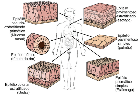 <p>0 Epitélio pavimentoso 0 0 estratificado Epitélio pseudo- (esôfago) -estratificado primático (Mucosa Epitélio nasal) pavimentoso simples (pulmão) Epitélio cúbico (túbulo do rim) 0 0 0 0 0 0 0 Epitélio Epitélio colunar prismático estratíficado simples (Uretra) (Estômago)</p>
