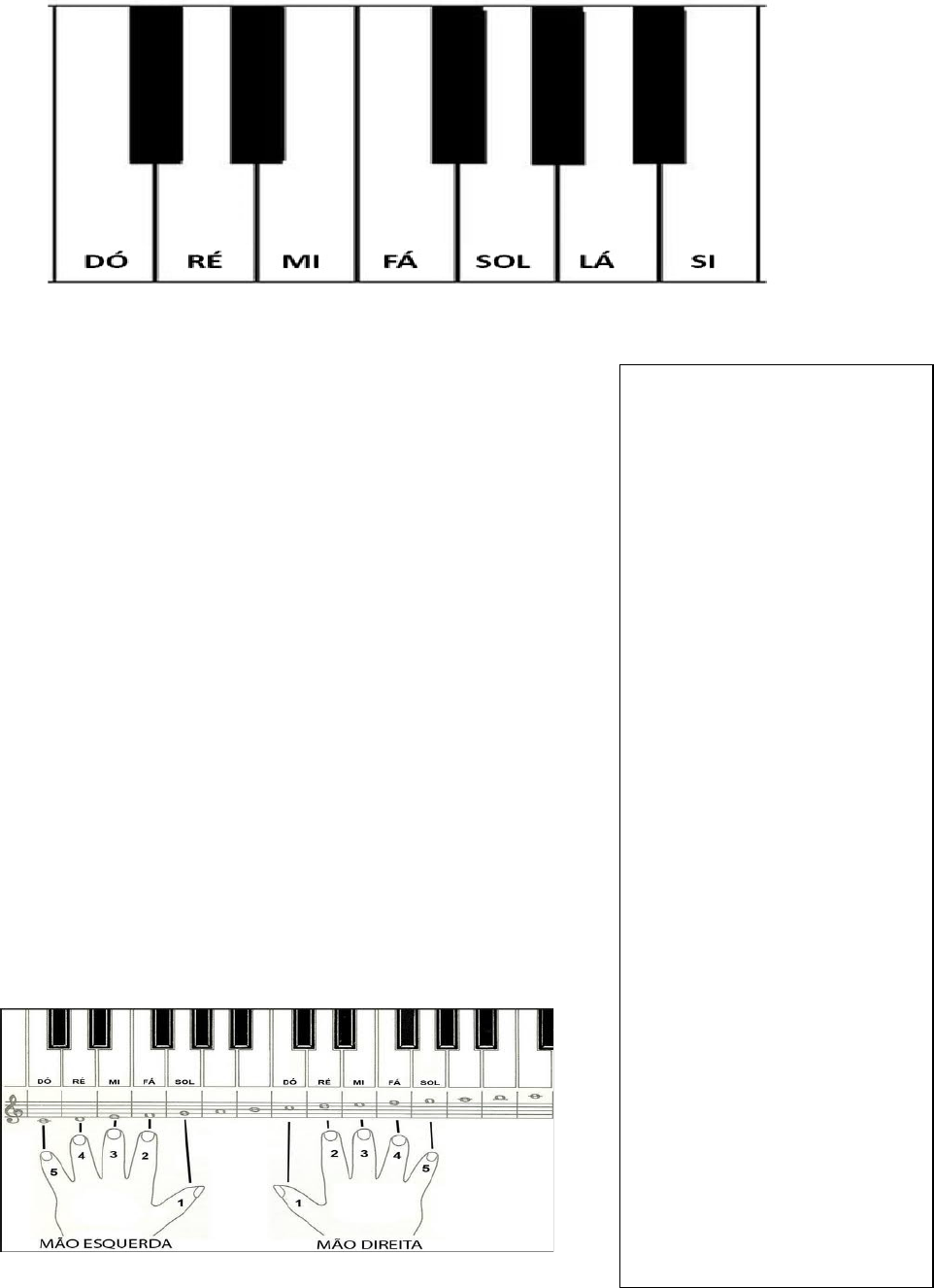 <p>POSIÇÃO DOS DEDOS PARA TECLADO E ESCALETA</p><p>· A NOTA (DÓ) VEM ANTES DO JOGO DE 2</p><p>· A NOTA (RÉ) VEM NO MEIO DO JOGO DE 2</p><p>· A NOTA ( MI )VEM DEPOIS DO JOGO DE 2</p><p>· A NOTA ( FÀ) VEM ANTES DO JOGO DE 2</p><p>· A NOTA (SOL) VEM NO PRIMEIRO ESPAÇO DO JOGO DE 3</p><p>· A NOTA ( LÀ) VEM NO SEGUNDO ESPAÇO DO JOGO DE 3Nomes dos dedos</p><p>Dedo 1 - polegar</p><p>Dedo 2 - indicador</p><p>Dedo 3 - médio</p><p>Dedo 4 - Anelar</p><p>Dedo 5 – Mindinho</p><p>CIFRA MUSICAL</p><p>Cifra é uma notação para representar os nomes dos acordes. Já aprendemos que a nomenclatura básica para as notas é a seguinte:</p><p>C –> dó</p><p>D –> ré</p><p>E –> mi</p><p>F –> fá</p><p>G –> sol</p><p>A –> lá</p><p>B –> si</p><p>· A NOTA (SI) VEM DEPOIS DO JOGO DE 3</p><p>· A NOTA (DÓ#) É A PRIMEIRA NOTA DO JOGO DE 2</p><p>· A NOTA (RÉ#) É A SEGUNDA NOTA DO JOGO DE 2</p><p>· A NOTA (FÀ#) É A PRIMEIRA NOTA DO JOGO DE 3</p><p>· A NOTA (SOL#) É A SEGUNDA NOTA DO JOGO DE 3</p><p>· A NOTA (LÀ#) É A TERCEIRA NOTA DO JOGO DE 3</p><p>image1.jpeg</p><p>image2.jpeg</p>