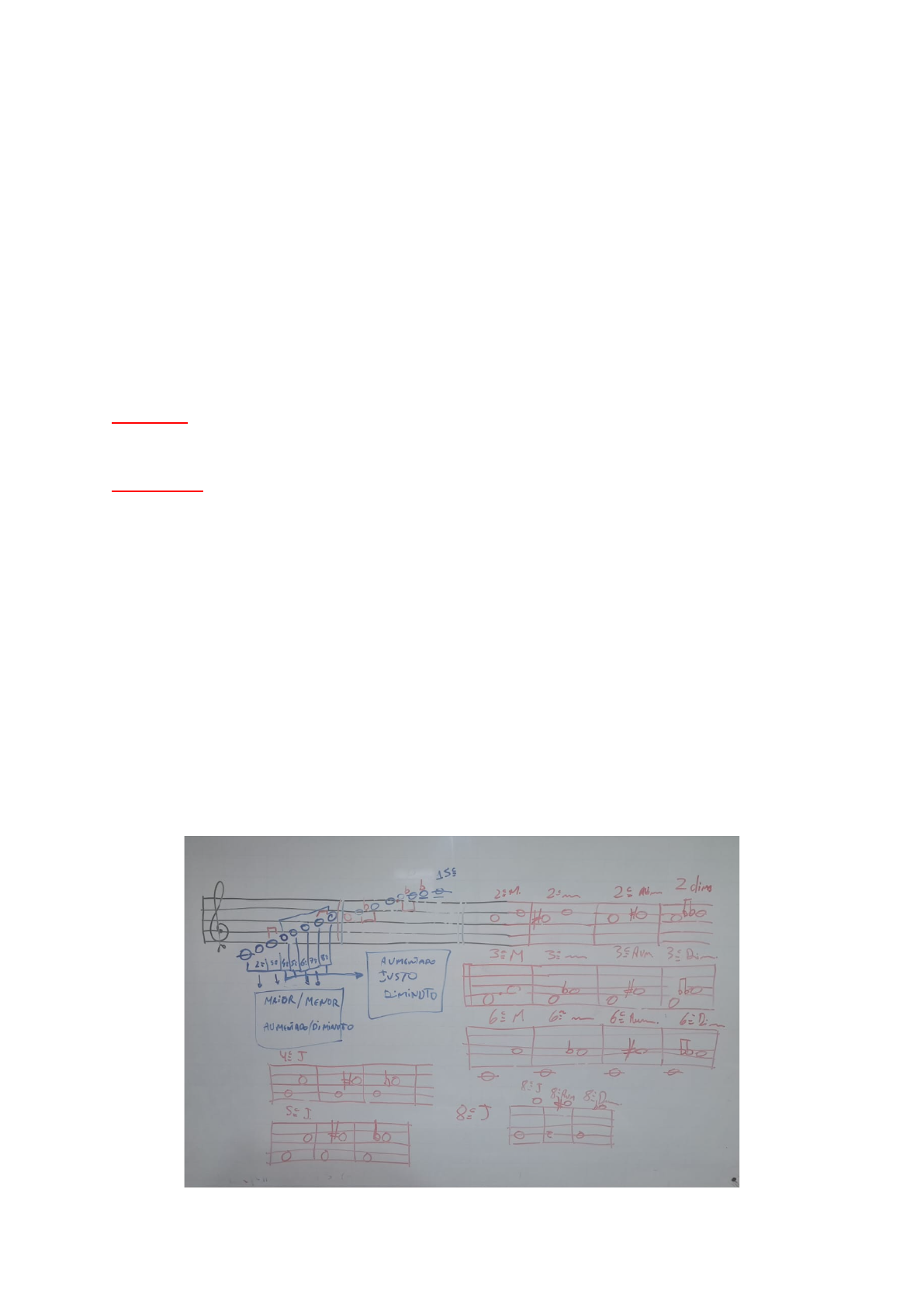 <p>REVISÃO TEORIA III</p><p>INTERVALOS</p><p>1 — Que é intervalo?</p><p>É a diferença de altura entre dois sons.</p><p>2 — O que diferencia um intervalo de 2ª de um intervalo de 6ª?</p><p>O número de sons que abrange o intervalo, enquanto o de 2ª vai do Dó ao Ré, o de 6ª vai</p><p>do Dó ao Lá.</p><p>3 — Quando é que um intervalo é simples?</p><p>Quando se acha contido dentro de uma 8ª.</p><p>4 — E quando é composto?</p><p>Quando ultrapassa a 8ª.</p><p>5 — Qual a diferença entre os intervalos melódicos e harmônicos?</p><p>Melódicos - as notas são ouvidas sucessivamente. Também se classificam como</p><p>ASCENDENTES (quando a primeira nota é mais grave que a segunda ou</p><p>DESCENDENTES (quando a primeira nota é mais aguda que a segunda.</p><p>Harmônicos - as notas são ouvidas simultaneamente.</p><p>6 — Conforme o número de tons e semitons como se classificam os intervalos?</p><p>Pode ser classificado como MAIOR / MENOR / AUMENTADO / DIMINUTO e JUSTO /</p><p>AUMENTADO / DIMINUTO</p><p>7 — Como podem ser classificados os intervalos de 2ª, 3ª, 6° e 7ª?</p><p>MAIOR / MENOR / AUMENTADO / DIMINUTO</p><p>8 — Como se classificam os de 4ª, 5ª e 8ª?</p><p>JUSTO / AUMENTADO / DIMINUTO</p><p>9 — Quantos tons tem o intervalo de 2ª maior? E o de 2ª aumentada?</p><p>2ª maior = 1 ton</p><p>2ª menor = 1 semiton</p><p>2ª aumentado = 1 ton e 1 semiton</p><p>2ª diminuto = (nulo nos instrumentos temperados</p><p>10 — Por que razão se diz que o intervalo de 2ª diminuta é nulo nos instrumentos</p><p>temperados?</p><p>Por que não há diferença de altura (intervalo) entre as notas que formam o mesmo som.</p><p>ESCALA MENOR</p><p>1 — Como é constituída a escala diatônica?</p><p>É constituída por uma sucessão de tons e semitons diatônicos.</p><p>2 — De quantas maneiras podem ser distribuídos os tons e semitons na escala diatônica?</p><p>Duas maneiras diferentes. São esses modos de dispor que se dá o nome de modo maior e</p><p>modo menor. Podem ser percebidos pela simples audição da escala.</p><p>3 — Que quer dizer modo de uma escala?</p><p>É a disposição dos tons e semitons na escala.</p><p>4 — Quantos são os modos e como se chamam?</p><p>Modo maior e modo menor.</p><p>5 — Onde se encontram os tons e semitons no modo maior?</p><p>tons >>> do I para II, do II para III; do IV para o V; do V para o VI; do VI para o VII</p><p>semitons >>> do III para o IV; do VII para VIII.</p><p>6 — O que são escalas relativas?</p><p>São duas escalas formadas pelas mesmas notas e com a mesma armadura, porém</p><p>pertencendo a modos diferentes, uma maior e outra menor.</p><p>7 — O encontram os tons e semitons no modo menor?</p><p>tons >>> do I para II; do III para IV; do VII para VIII;</p><p>semitons >>> do II para III; do V para o VI; do VII para o VIII.</p><p>8 — Quais são as formas da escala menor?</p><p>PRIMITIVA > é a escala formada a partir do modelo “lá menor” constituída somente por</p><p>notas naturais; tem dois semitons entre os graus II-III e V-VI, o grau VII é subtônica.</p><p>HARMÔNICA > difere da forma primitiva somente no grau VII, que é elevado meio tom;</p><p>MELÓDICA > difere da forma primitiva nos graus VI e VII que são elevados meio tom na</p><p>parte ascendente da escala. Na parte descendente, os graus VI e VII têm a mesma</p><p>formação da escala menor forma primitiva.</p><p>CONSTRUÇÃO DE ARMADURAS</p><p>1. Decorar a sequência dos sustenidos:</p><p>FÁ > DÓ > SOL > RÉ > LÁ > Mí > SÍ</p><p>2. Construir a Armadura:</p><p>Esquece as duas primeiras (FÁ > DÓ) começa colocando SOL > RÉ > LÁ > MÍ > SÍ agora</p><p>lembra das duas primeira e coloca #Maior (FÁ#M > DÓ#M)</p><p>ASSIM sem ERRO >>> SOL > RÉ > LÁ > MÍ > SÍ > FÁ#M > DÓ#M</p><p>1. Decorar a sequência dos bemois:</p><p>SÍ > MÍ > LÁ > RÉ > SOL > DÓ > FÁ</p><p>2. Construir a Armadura:</p><p>Lembrar de começar com FÁ, depois repete o bonde SÍb > MÍb > LÁb > RÉb ></p><p>SOLb > DÓb sempre colocando o b.</p><p>Boa prova!!!</p>