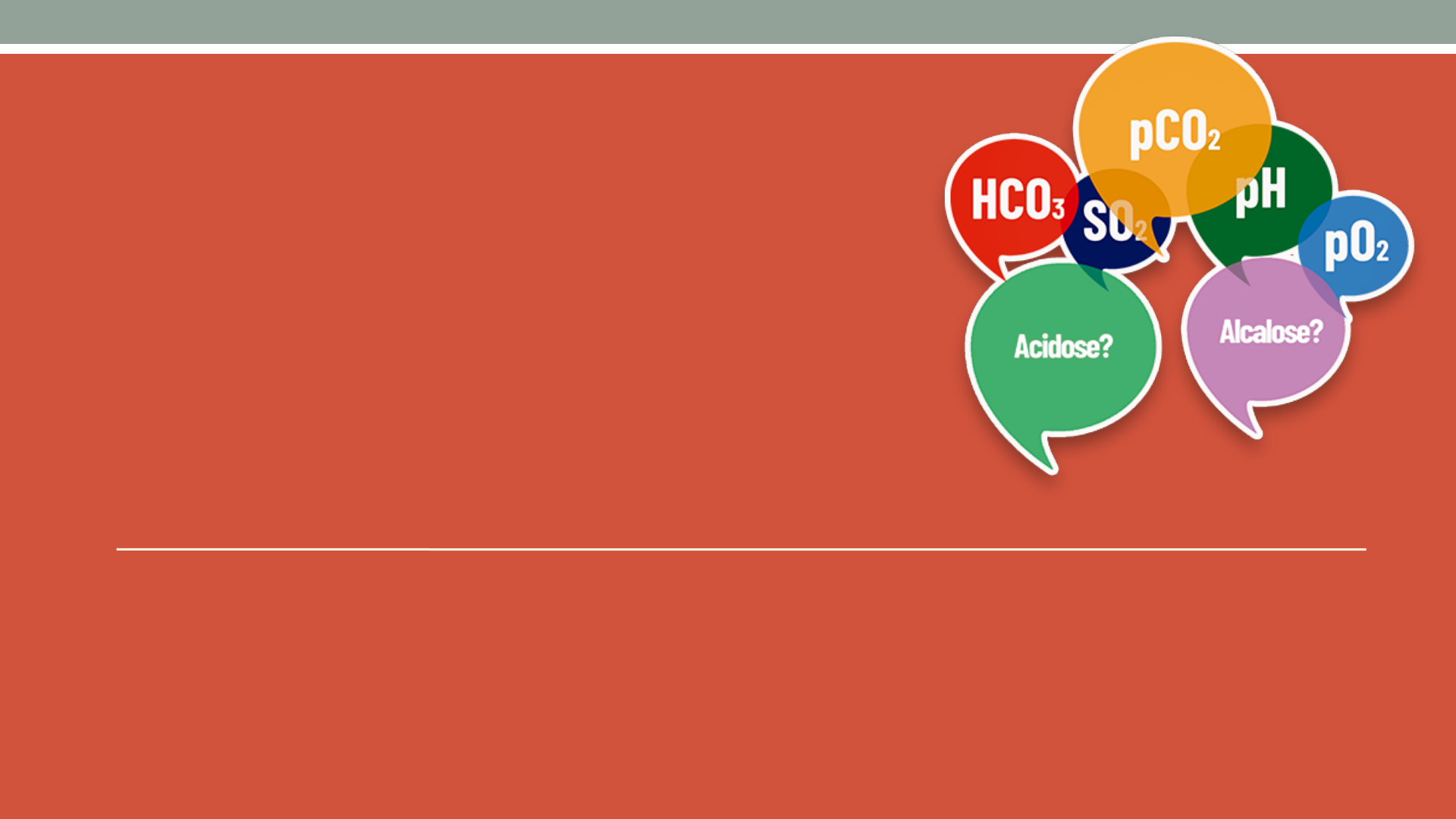 <p>EQUILÍBRIO ÁCIDO - BASE</p><p>Terminologia</p><p>• Ácidos - substâncias que tendem a doar íons hidrogênio</p><p>• Base - substâncias que tendem a remover íons hidrogênio</p><p>• Tampões - Uma substância que previne alterações extremas na concentração do íon hidrogênio</p><p>livre dentro de uma solução.</p><p>• Os tampões impedem alterações bruscas na [H+] (pH), mas a regulação da acidez depende, em</p><p>última análise, das funções RENAL E PULMONAR.</p><p>• Acidose: O processo que causa a acidemia</p><p>• Alcalose: O processo que causa a alcalemia</p><p>• Acidemia: Condição ácida do sangue em que o pH está 7,45</p><p>Gasometria</p><p>Verificar anormalidades nas trocas gasosas em pacientes com dispneia de início súbito</p><p>Confusão?</p><p>Excluir hipoxemia, hipercapnia ou distúrbios do</p><p>equilíbrio acidobásico</p><p>Para documentar insuficiência respiratória em pacientes com ↓ da função pulmonar e</p><p>avaliar sua gravidade.</p><p>Para monitorizar a mudanças na oxigenação e na ventilação em pacientes em VM,</p><p>controlar a retirada da assistência ventilatória.</p><p>Como um procedimento de avaliação pré-operatória em pacientes de alto risco.</p><p>Regulação dos ácidos sanguíneos</p><p>• De um lado os pulmões eliminam o CO2, que potencialmente equivale ao H2CO3;</p><p>de outro, os rins eliminam os ácidos não-voláteis e cumprem a função de</p><p>conservar e regenerar o HCO3</p><p>GASOMETRIA ARTERIAL</p><p>o hidrogênio (H+), quando associado com o bicarbonato (HCO3), forma ácido</p><p>carbônico (H2CO3) que, por sua vez, se dissocia em gás carbônico (CO2) e água (H2O).</p><p>alterações no “Lado Metabólico” irão repercutir no “Lado</p><p>Respiratório” e vice-versa</p><p>LADO</p><p>METABÓLICO</p><p>LADO</p><p>RESPIRATÓRIO</p><p>Equilíbrio</p><p>• pH ou [H+] é determinado pela relação BICARBONATO e PaCO2 e não pela [ ] absoluta de</p><p>qualquer um deles.</p><p>• As anormalidades do equilíbrio ácido-básico podem se iniciar por alterações na [HCO3]</p><p>ou da [PCO2]</p><p>• que iniciam pelo ↑ ou pela ↓ da PCO2</p><p>• que iniciam pelo ↑ ou pela ↓ do HCO3</p><p>GASOMETRIA ARTERIAL</p><p>O pH sanguíneo, avalia a concentração de íons no sangue.</p><p>É extremamente importante para o nosso organismo que os valores de</p><p>hidrogênio sejam mantidos em valores controlados. Caso, por algum</p><p>mecanismo, esse valor aumente, o corpo vai então tentar compensar ao</p><p>máximo essa alteração, tamponando esse hidrogênio.</p><p>DETERMINAÇÃO DA COMPENSAÇÃO</p><p>• Se os sistemas tampão no organismo são incapazes de manter o pH</p><p>normal, então o sistema renal ou respiratório tenta compensar. Se o</p><p>problema for de origem respiratória, os rins trabalharão para corrigi-</p><p>lo.</p><p>• Se o problema for de origem renal, os pulmões tentarão corrigi-lo</p><p>• O sistema respiratório responde aos desequilíbrios do pH gerados pelo</p><p>metabolismo da seguinte maneira:</p><p>• ► Acidose metabólica: aumento na profundidade e frequência respiratórias</p><p>• ► Alcalose metabólica: diminuição na profundidade e frequência respiratórias</p><p>• O sistema renal responde aos desequilíbrios do pH de origem respiratória da</p><p>seguinte maneira:</p><p>• ► Acidose respiratória: aumento na secreção de hidrogênio e reabsorção de</p><p>bicarbonato</p><p>• ► Alcalose respiratória: diminuição na secreção de hidrogênio e reabsorção</p><p>de bicarbonato</p><p>DETERMINAÇÃO DA COMPENSAÇÃO</p><p>Distúrbio Respiratório</p><p>• Quando as respostas compensadoras não atingirem a previsão, teremos distúrbios mistos ou agudos.</p><p>Distúrbio Metabólico</p><p>• Quando as respostas compensadoras não atingirem a previsão, teremos distúrbios mistos ou agudos.</p><p>Parâmetros Gasometria Valores normais</p><p>pH 7,35 – 7,45</p><p>PaO2 80 – 100 mmHg</p><p>PaCO2 35 – 45 mmHg</p><p>HCO3 22 – 28 mEq/L</p><p>SaO2 95 – 98 %</p><p>BE (excesso de base) 0 ± 4 mEq/L</p><p>Os resultados do bicarbonato e BE não são dosados, mas sim calculados.</p><p>ALTERAÇÕES NA GASOMETRIA</p><p>Análise passo a passo:</p><p>• 1. Avaliar a oxigenação examinando a PaO2 e a SaO2.</p><p>• 2. Avaliar o pH. Está acidótico, alcalótico ou normal?</p><p>• 3. Avaliar a PaCO2. Está alta, baixa ou normal?</p><p>• 4. Avaliar o HCO3. Está alto, baixo ou normal?</p><p>• 5. Determinar se a compensação está acontecendo. Está</p><p>completa, parcial ou descompensada?</p><p>Ex. 1:</p><p>•pH = 7,50</p><p>•PaCO2 = 47 mmHg</p><p>•HCO3 = 38 mEq/L</p><p>•PaO2= 90mmHg</p><p>•SaO2= 95%</p><p>Ex. 2:</p><p>•pH = 7,32</p><p>•PaCO2 = 50 mmHg</p><p>•HCO3 = 33 mEq/L</p><p>•PaO2= 90mmHg</p><p>•SaO2= 93%</p><p>Ex. 3:</p><p>•pH = 7,49</p><p>•PaCO2 = 28 mmHg</p><p>•HCO3 = 20 mEq/L</p><p>•PaO2= 85mmHg</p><p>•SaO2= 95%</p><p>Ex. 4:</p><p>•pH = 7,31</p><p>•PaCO2 = 32 mmHg</p><p>•HCO3 = 16 mEq/L</p><p>•PaO2 = 92mmHg</p><p>•SaO2= 94%</p><p>Possíveis Causas e Sinais e Sintomas dos Distúrbios Acidobásicos</p><p>Possíveis Causas e Sinais e Sintomas dos Distúrbios Acidobásicos</p><p>Exercícios</p><p>1 2 3 4 5 6</p><p>pH 7,26 7,52 7,60 7,44 7,38 7,56</p><p>PaCO2</p><p>(mmHg)</p><p>56 28 55 24 76 44</p><p>HCO3</p><p>(mEq/L)</p><p>24 22 51 16 42 38</p><p>BE</p><p>(mEq/L)</p><p>-4 +1 +26 -6 +14 +14</p><p>Respostas</p><p>• 1. Acidose Respiratória</p><p>• 2. Alcalose Respiratória</p><p>• 3. Alcalose Metabólica</p><p>• 4. Alcalose Respiratória Compensada</p><p>• 5. Acidose Respiratória Compensada</p><p>• 6. Alcalose Metabólica</p><p>Slide 1: Equilíbrio Ácido - Base</p><p>Slide 2: Terminologia</p><p>Slide 3: Gasometria</p><p>Slide 4: Regulação dos ácidos sanguíneos</p><p>Slide 5: GASOMETRIA ARTERIAL</p><p>Slide 6: Equilíbrio</p><p>Slide 7: GASOMETRIA ARTERIAL</p><p>Slide 8: D