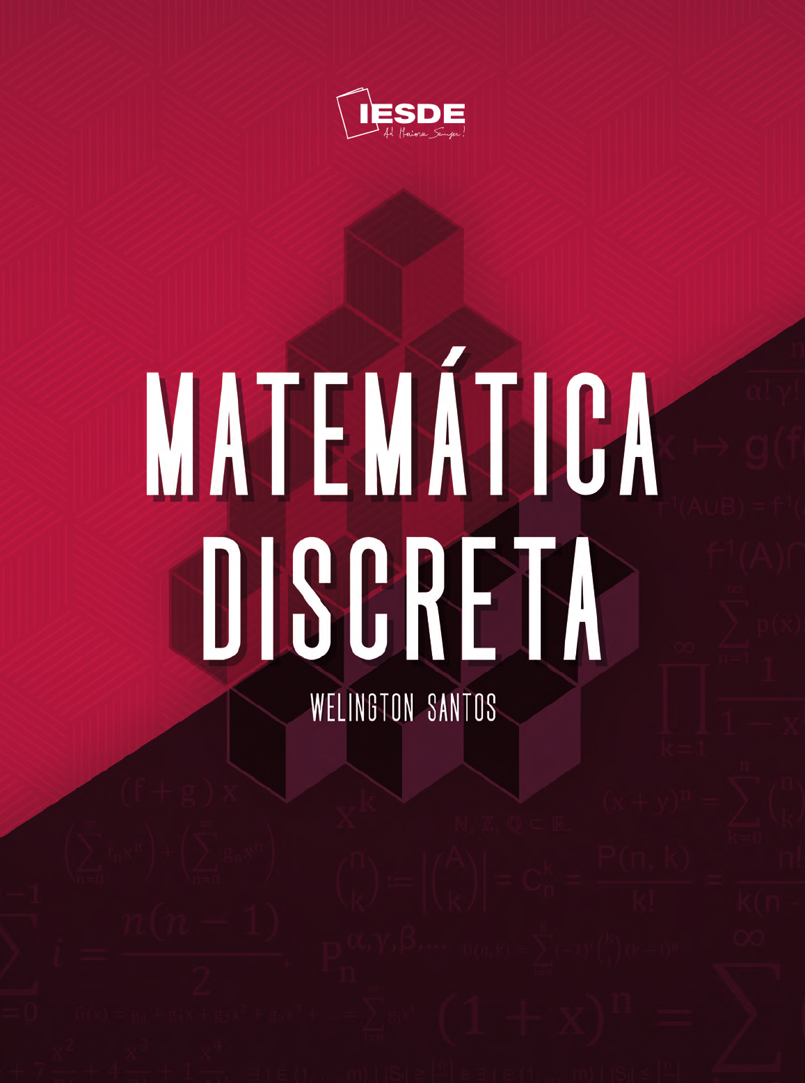 <p>WELINGTON SANTOS</p><p>MATEMÁTICA DISCRETA</p><p>Código Logístico</p><p>59915</p><p>ISBN 978-65-5821-012-2</p><p>9 7 8 6 5 5 8 2 1 0 1 2 2</p><p>Matemática Discreta</p><p>Welington Santos</p><p>IESDE BRASIL</p><p>2021</p><p>© 2021 – IESDE BRASIL S/A.</p><p>É proibida a reprodução, mesmo parcial, por qualquer processo, sem autorização por escrito do autor e</p><p>do detentor dos direitos autorais.</p><p>Projeto de capa: IESDE BRASIL S/A. Imagem da capa: devotchkah/a_slowik/envatoelements</p><p>Todos os direitos reservados.</p><p>IESDE BRASIL S/A.</p><p>Al. Dr. Carlos de Carvalho, 1.482. CEP: 80730-200</p><p>Batel – Curitiba – PR</p><p>0800 708 88 88 – www.iesde.com.br</p><p>CIP-BRASIL. CATALOGAÇÃO NA PUBLICAÇÃO</p><p>SINDICATO NACIONAL DOS EDITORES DE LIVROS, RJ</p><p>S239m</p><p>Santos, Welington</p><p>Matemática discreta / Welington Santos. - 1. ed. - Curitiba [PR] : Iesde,</p><p>2021.</p><p>136 p. : il.</p><p>Inclui bibliografia</p><p>ISBN 978-65-5821-012-2</p><p>1. Matemática. 2. Lógica simbólica e matemática. 3. Teoria dos conjun-</p><p>tos. 4. Análise combinatória. 5. Funções (Matemática). I. Título.</p><p>21-69713 CDD: 510</p><p>CDU: 51</p><p>Welington Santos Doutor e Mestre em Matemática pela Universidade</p><p>Federal do Paraná (UFPR). Graduado em Licenciatura</p><p>em Matemática pela Universidade Estadual de Ponta</p><p>Grossa (UEPG). Participou de programa de doutoramento</p><p>sanduíche na Universidade de Maryland, EUA. Tem</p><p>experiência na área de Matemática com ênfase em</p><p>Teoria algébrica dos códigos corretores de erros, Teoria</p><p>de invariantes, Self-dual codes, Decodificação fracionária</p><p>e Teoria de matróides. Tem experiência em ensino</p><p>superior, ministrando aulas no formato presencial e a</p><p>distância.</p><p>SUMÁRIO</p><p>1 Fundamentos de lógica matemática e métodos de demonstração 9</p><p>1.1 Fundamentos de lógica matemática 9</p><p>1.2 Demonstração direta e demonstração por contraposição 20</p><p>1.3 Demonstração por contradição 24</p><p>1.4 Demonstração por absurdo 25</p><p>1.5 Demonstração por indução finita 26</p><p>2 Teoria de conjuntos 30</p><p>2.1 Noção intuitiva de conjuntos 30</p><p>2.2 Descrição e igualdade de conjuntos 31</p><p>2.3 Subconjuntos 34</p><p>2.4 Operações com conjuntos 36</p><p>3 Conjuntos numéricos 47</p><p>3.1 Conjunto dos números naturais 47</p><p>3.2 Conjunto dos números inteiros 51</p><p>3.3 Conjunto dos números racionais 54</p><p>3.4 Números reais e cardinalidade 56</p><p>3.5 Aritmética modular 58</p><p>4 Relações 61</p><p>4.1 Produto cartesiano e par ordenado 61</p><p>4.2 Conceito de relação 64</p><p>4.3 Relação inversa 68</p><p>4.4 Propriedades das relações 69</p><p>4.5 Operações e fecho de relações 72</p><p>4.6 Relação de ordem e de equivalência 74</p><p>5 Funções discretas 80</p><p>5.1 Conceito e classificação 80</p><p>5.2 Função composta e função inversa 85</p><p>5.3 Funções recursivas 89</p><p>6 Análise combinatória 92</p><p>6.1 Princípios de contagem 92</p><p>6.2 Arranjos 97</p><p>6.3 Permutações 99</p><p>6.4 Combinações 102</p><p>6.5 Binômio de Newton 106</p><p>6 Matemática Discreta</p><p>7 Funções geradoras e partição de um inteiro 112</p><p>7.1 Funções geradoras 112</p><p>7.2 Operações com funções geradoras 114</p><p>7.3 Funções geradoras exponenciais 120</p><p>7.4 Sequência de Fibonacci 123</p><p>7.5 Partição de um inteiro 124</p><p>7.6 Gráfico de uma partição 126</p><p>Gabarito 129</p><p>APRESENTAÇÃO</p><p>Esta obra oferece uma abordagem introdutória à matemática discreta,</p><p>área da matemática dedicada ao estudo de objetos que são formados</p><p>por elementos desconexos entre si, chamados de elementos discretos.</p><p>Apresentamos, com detalhes, conceitos fundamentais de teoria de</p><p>conjuntos, conjuntos numéricos e aritmética modular, diferentes problemas</p><p>de combinatória e funções úteis para a resolução de problemas de contagem.</p><p>Para tanto, no primeiro capítulo, discorremos sobre os fundamentos</p><p>básicos da lógica matemática, apresentando operações entre proposições</p><p>lógicas e suas implicações nas técnicas de demonstração para resultados</p><p>matemáticos.</p><p>A matemática é fundamentada por axiomas, lemas, corolários e</p><p>teoremas, que são validados por meio das demonstrações. Nesse sentido,</p><p>ao longo de toda a obra, apresentamos e aplicamos as principais técnicas de</p><p>demonstração (direta, contraposição, contradição, absurdo e indução) para</p><p>provar fatos bem conhecidos da matemática.</p><p>No segundo capítulo, abordamos a teoria fundamental de conjuntos, que</p><p>embasa toda a matemática discreta, apresentando as técnicas básicas de</p><p>contagem do número de elementos dos conjuntos e as principais operações</p><p>entre eles, como a intersecção, a união e a diferença.</p><p>O terceiro capítulo propõe um estudo aprofundado dos principais</p><p>conjuntos numéricos, explorando as diferentes propriedades e operações</p><p>que cada um desses conjuntos possui. Além disso, classificamos os</p><p>conjuntos numéricos em termos de sua cardinalidade, descrevendo o</p><p>conceito de conjunto enumerável e não enumerável. Diante da importância</p><p>da aritmética modular em problemas que envolvem contagem, discorremos</p><p>detalhadamente sobre essa matéria, que é observada na leitura de um CD e</p><p>na validação do número do Cadastro de Pessoa Física (CPF).</p><p>No quarto capítulo, com objetivo de introduzir o conceito de relações</p><p>entre conjuntos, nos debruçamos sobre a operação de produto cartesiano</p><p>entre conjuntos. Além disso, apresentamos as principais propriedades das</p><p>relações entre conjuntos e dois tipos especiais de relação: relação de ordem</p><p>e de equivalência, que são utilizadas na alocação de frota de empre