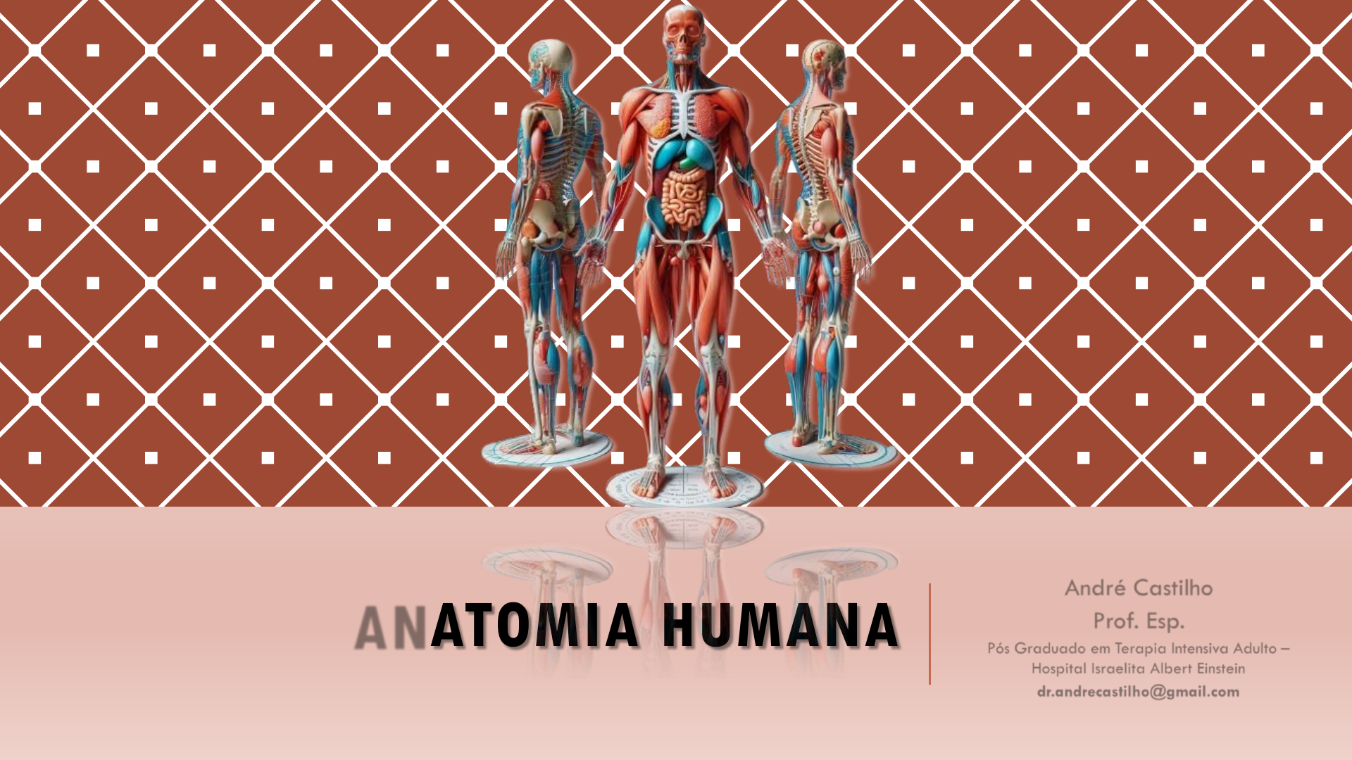 <p>ANATOMIA HUMANA</p><p>André Castilho</p><p>Prof. Esp.</p><p>Pós Graduado em Terapia Intensiva Adulto –</p><p>Hospital Israelita Albert Einstein</p><p>dr.andrecastilho@gmail.com</p><p>OSTEOLOGIA</p><p>CONCEITO OSTEOLOGIA</p><p>Ramo da ANATOMIA, que estuda os OSSOS do corpo</p><p>humano, este estudo envolve a análise das ESTRUTURAS,</p><p>FORMA, FUNÇÃO e DESENVOLVIMENTO dos ossos,</p><p>bem como suas RELAÇÕES com outros TECIDOS e</p><p>ÓRGÃOS.</p><p>Através deste estudo, é possível COMPREENDER como os</p><p>ossos se FORMAM, CRESCEM, se REMODELAM e se</p><p>REPARAM ao longo da vida, tem por intuito também</p><p>INVESTIGAR as diferentes CARACTERÍSTICAS dos ossos,</p><p>como sua DENSIDADE, RESISTÊNCIA e ELASTICIDADE.</p><p>Fornece conhecimentos essências para auxiliar no</p><p>DIAGNÓSTICO e TRATAMENTO de doenças ósseas,</p><p>como: OSTEOPOROSE e FRATURAS.</p><p>NEUROCRÂNIO</p><p>LOCALIZAÇÃO</p><p>FRONTAL</p><p>Na área</p><p>frontal da</p><p>cabeça,</p><p>acima dos</p><p>ossos da face,</p><p>apresenta</p><p>duas</p><p>cavidades</p><p>aéreas, que</p><p>constituem os</p><p>seios frontais,</p><p>possuem</p><p>ligação</p><p>através da</p><p>cavidade</p><p>nasal, situado</p><p>na curvatura</p><p>da testa.</p><p>PARIETAIS</p><p>Esquerdo e</p><p>Direito</p><p>constituem a</p><p>calota</p><p>craniana, ou</p><p>abóboda</p><p>craniana,</p><p>formam as</p><p>áreas</p><p>superior e</p><p>lateral da</p><p>abóboda e</p><p>possuem a</p><p>função de</p><p>proteção do</p><p>lóbulo</p><p>parietal do</p><p>encéfalo.</p><p>OCCIPITAL</p><p>Localizado na</p><p>parte inferior</p><p>frontal e</p><p>apresenta</p><p>abertura que</p><p>serve como</p><p>acesso para o</p><p>neuro-eixo,</p><p>conecta-se</p><p>com a</p><p>primeira</p><p>vértebra</p><p>cervical</p><p>através de</p><p>uma</p><p>articulação.</p><p>TEMPORAIS</p><p>Conectado ao</p><p>osso parietal,</p><p>occipital,</p><p>malares,</p><p>mandíbula e</p><p>esfenoide,</p><p>por meio de</p><p>articulações,</p><p>posicionado</p><p>um de cada</p><p>lado do</p><p>crânio e são</p><p>segmentados</p><p>em 3 regiões:</p><p>Escamosa,</p><p>petrosa</p><p>(Ouvido</p><p>Médio) e</p><p>Timpânica.</p><p>ESFENOIDE</p><p>Corpo que</p><p>possui duas</p><p>fendas, que</p><p>constituem os</p><p>seios</p><p>esfenoidais,</p><p>um em cada</p><p>lado, região</p><p>chamada sela</p><p>turca, abriga</p><p>a hipófise,</p><p>delimita os</p><p>ossos da face.</p><p>ETMOIDE</p><p>Localizado na</p><p>região</p><p>superior da</p><p>cavidade</p><p>nasal,</p><p>estendendo-se</p><p>pelas laterais,</p><p>apresentam</p><p>ramificações</p><p>provenientes</p><p>dos nervos</p><p>olfatórios.</p><p>VISCEROCRÂNIO OU OSSOS DA FACE</p><p>LOCALIZAÇÃO</p><p>MAXILAS</p><p>São duas, localizadas na</p><p>região inferior das</p><p>cavidades das orbitas</p><p>oculares, possuem fendas</p><p>que se comunicam com as</p><p>cavidades nasais.</p><p>HIOIDE</p><p>Localizado na</p><p>parte de trás do</p><p>pescoço, inferior</p><p>à mandíbula e</p><p>superior a</p><p>laringe, sem</p><p>conexão com</p><p>outros ossos,</p><p>sustenta os</p><p>músculos da base</p><p>da língua.</p><p>VÔMER</p><p>Região</p><p>posterior do</p><p>septo nasal,</p><p>divide a</p><p>cavidade</p><p>nasal em duas</p><p>partes,</p><p>localizado na</p><p>linha sagital</p><p>mediana.</p><p>PALATINOS</p><p>São dois, localizados na</p><p>região anterior às maxilas,</p><p>formam a região anterior</p><p>ao céu da boca.</p><p>LACRIMAIS</p><p>Dois ossos</p><p>localizados um</p><p>cada lado do</p><p>crânio, região</p><p>onde demarcam-</p><p>se as fossas</p><p>lacrimais, o menor</p><p>e mais frágil dos</p><p>ossos.</p><p>NASAIS</p><p>Localizados</p><p>no dorso do</p><p>nariz,</p><p>formam a</p><p>conexão do</p><p>nariz.</p><p>ZIGOMÁTICOS</p><p>Localizados na</p><p>região lateral da</p><p>face, dois, são ossos</p><p>que compõe as</p><p>bochecas,</p><p>estendendo-se até a</p><p>região inferior das</p><p>órbitas.</p><p>MANDÍBULA</p><p>Estrutura que se</p><p>articula com o crânio,</p><p>na região temporal,</p><p>apresenta 8</p><p>cavidades alveolares,</p><p>que serve para alojar</p><p>dentes, formando a</p><p>arcada dentária</p><p>inferior.</p><p>CAIXA TORÁCIA</p><p>Função de ser uma caixa protetora dos</p><p>órgãos do tórax, dividida em:</p><p>✓ ESTERNO: Localizado ao centro para</p><p>proteger o coração, dividido em 3 partes:</p><p>SUPERIOR (Manúbrio), CORPO (Região</p><p>Central) e INFERIOR (Apêndice Xifoide);</p><p>✓ CLAVÍCULA: Superior a primeira copstela,</p><p>tem Função de concectar os ossos dos MMSS</p><p>ao Esqueleto Axial;</p><p>✓ COSTELAS VERDADEIRAS: 7 Pares</p><p>(Articuladas diretamente ao esterno);</p><p>✓ COSTELAS FALSAS: 3 Pares (Articuladas</p><p>indiretamente ao esterno), e;</p><p>✓ COSTELAS FLUTUANTES: 2 Pares (Não se</p><p>prendem a osso nenhum).</p><p>COLUNA VERTEBRAL</p><p>Construída de maneira que dê, ao mesmo</p><p>tempo, RIGIDEZ e FIRMEZA, com o intuito de</p><p>SUPORTAR o esqueleto humano, com</p><p>EXCEÇÃO de suas extremidades, ao mesmo</p><p>tempo é flexível pois nos permite dobrar, dar</p><p>a volta e retorcer-se, protege nossa medula</p><p>espinal e suas ramificações, dividida em:</p><p>✓ VERTEBRAS CERVICAIS (7);</p><p>✓ VÉRTEBRAS TÓRACIAS (12);</p><p>✓ VÉRTEBRAS LOMBARES (5);</p><p>✓ VÉRTEBRAS SACRAIS (5 FUNDIDAS), E;</p><p>✓ VÉRTEBRAS COCCÍGEAS (4 FUNDIDAS).</p><p>Dois ossos pequenos, o SACRO e o CÓCCIX,</p><p>na parte final da coluna, são fundidos,</p><p>formando um só osso, o SACROCOCCÍGEO.</p><p>FALA MESTRE!</p><p>MORFOLOGIA COLUNA VERTEBRAL</p><p>MEMBRO SUPERIOR</p><p>Ossos do Membro Superior:</p><p>✓ESCÁPULA: osso plano, formato triangular,</p><p>situado na porção póstero-superior do tórax;</p><p>✓CLAVÍCULA: possui formato de S, localizado</p><p>horizontalmente acima da primeira costela,</p><p>junto da escapula forma cintura escapular;</p><p>✓ÚMERO;</p><p>✓RÁDIO;</p><p>✓