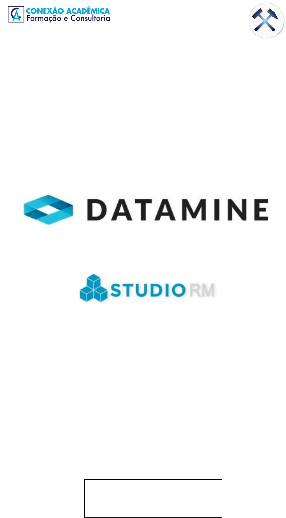 <p>Curso de DATAMINE</p><p>Área de Mineração</p><p>MANUAL DO CURSO DE DATAMINE STUDIO, MÓDULO RM</p><p>ÍNDICE</p><p>SOFTWARE APLICADO NA MINERAÇÃO. .......................................................................................................... 3</p><p>PROJETO COMPUTACIONAL.............................................................................................................................3</p><p>BANCOS DE DADOS .............................................................................................................................................. 3</p><p>USANDO O SOFTWARE DATAMINE STUDIO 5 RM ............................................................................................... 7</p><p>INICIE O SOFTWARE. ................................................................................................................................. 7</p><p>COMANDOS DE ARQUIVOS DE PROJETO ........................................................................................................................... 8</p><p>COMANDOS DE PLANILHA E DADOS CARREGADOS. ....................................................................................................................... 9</p><p>COMANDOS MAIS UTILIZADOS NO ESTUDO DE RM. ........................................................................................ 9</p><p>EXEMPLO DE CRIAÇÃO DE UM MODELO DE BLOCO. ...................................................................... 12</p><p>IMPORTAR ARQUIVOS PARA O DATAMINE STUDIO 5. ................................................................................... 12</p><p>CRIAÇÃO DA TOPOGRAFIA USANDO O ARQUIVO DE CONTORNO. ....................................................... 13</p><p>CRIAÇÃO DE SONS E SUA VISUALIZAÇÃO. ................................................................................................. 14</p><p>ESTATÍSTICAS DAS PESQUISAS. .............................................................................................................. 15</p><p>COMPOSITAÇÃO DE PERFURAÇÕES E SUA VISUALIZAÇÃO. .......................................................................... 16</p><p>CRIAÇÃO DE SEÇÕES E STRINGS PARA MODELAGEM .............................................................. 17</p><p>VISUALIZAÇÃO DE WIREFRAMES E INTERPRETAÇÃO DO SITE. .......................................... 24</p><p>MUDAR A COR DOS SÓLIDOS. ................................................................................................................... 26</p><p>CÁLCULO DE TONELAGEM. .............................................................................................................................. 27</p><p>CRIAÇÃO DE PROTÓTIPO. ........................................................................................................................... 27</p><p>CRIAÇÃO DE PROTÓTIPO. ........................................................................................................................... 30</p><p>MODELOS DE BLOCOS VAZIOS. ............................................................................................................. 32</p><p>ESTIMATIVA DE MODELOS DE BLOCOS. ............................................................................................ 35</p><p>LENDAS DE CORES. .................................................................................................................................. 37</p><p>CÁLCULO DA TONELAGEM SEGUNDO A LEI MINERAL. ........................................................................................... 40</p><p>Área de Mineração</p><p>MANUAL DO CURSO DE DATAMINE STUDIO, MÓDULO RM</p><p>SOFTWARE APLICADO NA MINERAÇÃO.</p><p>DESIGN COMPUTACIONAL</p><p>As ferramentas de design computacional são cada vez mais importantes no desenvolvimento</p><p>de projetos de mineração. Em particular, o software de design permite visualizar diferentes</p><p>alternativas de construção ou arquiteturas propostas em 2 e 3D, o que reduz os tempos de</p><p>cálculo e engenharia.</p><p>Neste curso será utilizada a ferramenta Datamine (versões Studio 5). Este software</p><p>permite construir a arquitetura necessária à exploração de uma mina, seja ela explorada</p><p>a céu aberto ou subterrânea.</p><p>Além disso, o Datamine é utilizado na área de avaliação de recursos (implantação de</p><p>perfuração, geração de modelos de blocos, etc.), área na qual compete com outros</p><p>softwares, como Gems ou Isatis.</p><p>É importante destacar que o datamine não permite a otimização das atividades de mineração,</p><p>como a obtenção da cava ideal ou as atividades de preparação da lavra. Para isso existem outras</p><p>ferramentas computacionais, como Whittle, Vulcan, Mine2-4D ou I-Gantt (estas duas últimas no</p><p>desenvolvimento e preparação de minas, gerando um gráfico de Gantt de atividades, exemplo:</p><p>medidores a serem desenvolvidos por mês).</p><p>BANCOS DE DADOS</p><p>Numa campanha de exploração direta como perfuração para recuperação de núcleos que</p><p>posteriormente serão enviados para análise e como resultado, bancos de dados como:</p><p>Ensaios: esta base de dados nos fornece os dados de teores obtidos nas perfurações.</p><p>Colar: nos dá a informação espacial do colar do furo de sondagem.</p><p>Pesquisas: contém os desvios das pesquisas.</p><p>Geologia: contém parâmetros geológicos como tipo de rocha encontrada.</p><p>Contorno: contém os pontos topográficos da área onde foi realizada a campanha de</p><p>perfuração.</p><p>Esses são os bancos de dados mínimos que o Datamine Studio 5 precisa. Antes de enviar</p><p>esses arquivos para o Datmine Studio 5, é necessário analisá-los e, como recomendação,</p><p>trazê-los para um formato adequado que este software aceita na coleta de dados. ser</p><p>realizado de um arquivo como exemplo, os outros são feitos de forma semelhante.</p><p>Como resultado da aná