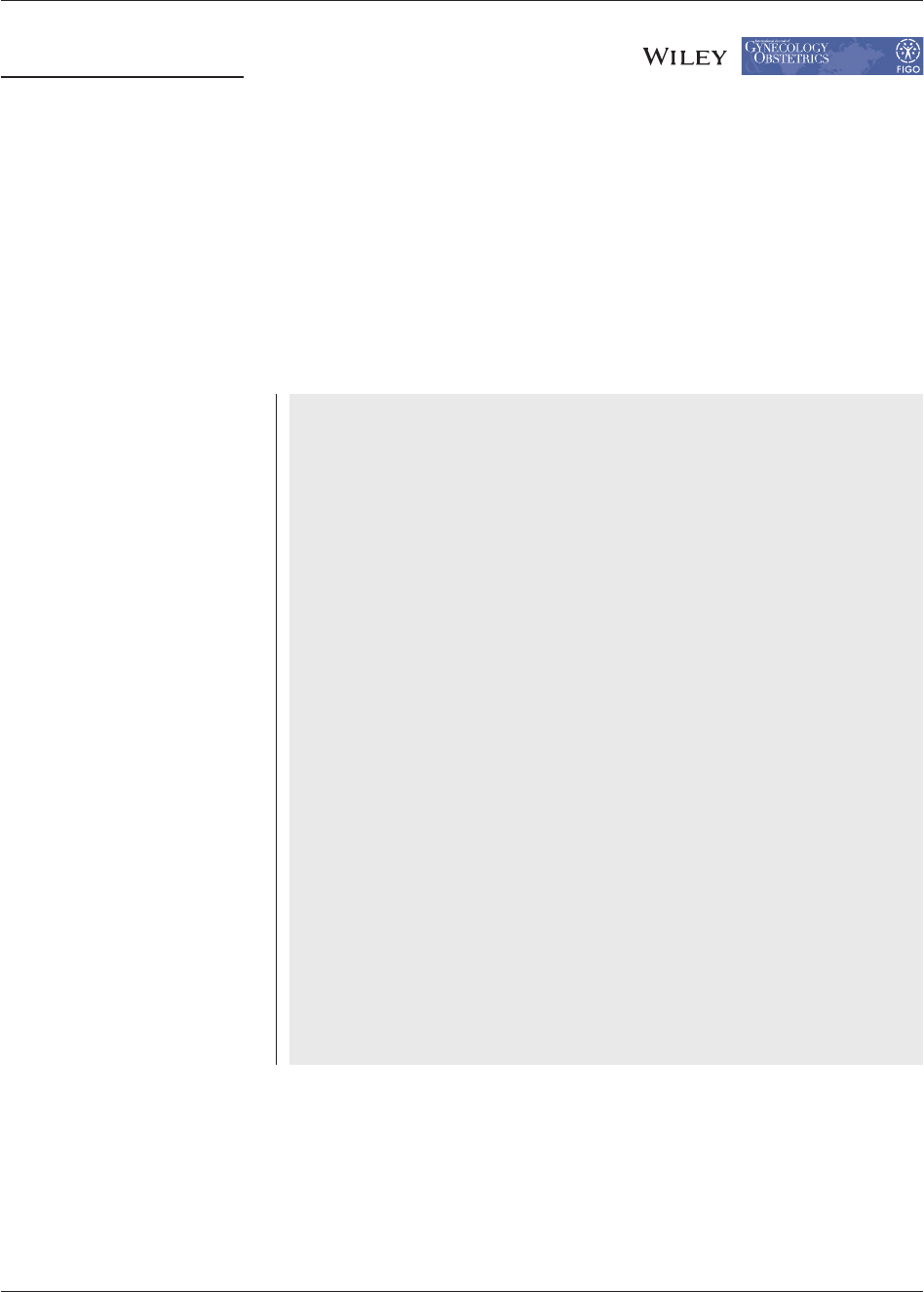 <p>Int J Gynecol Obstet 2018; 143: 393–408 wileyonlinelibrary.com/journal/ijgo | 393 2018 International Federation of</p><p>Gynecology and Obstetrics</p><p>Received: 18 May 2018 | Revised: 23 July 2018 | Accepted: 6 September 2018 | First published online: 10 October 2018</p><p>DOI: 10.1002/ijgo.12666</p><p>F I G O S P E C I A L A R T I C L E</p><p>G y n e c o l o g y</p><p>The two FIGO systems for normal and abnormal uterine</p><p>bleeding symptoms and classification of causes of abnormal</p><p>uterine bleeding in the reproductive years: 2018 revisions</p><p>Malcolm G. Munro1,2,* | Hilary O.D. Critchley3 | Ian S. Fraser4 | for the FIGO Menstrual</p><p>Disorders Committee</p><p>1Departments of Obstetrics and Gynecology,</p><p>David Geffen School of Medicine at UCLA,</p><p>University of California, Los Angeles, CA, USA</p><p>2Kaiser Permanente, Los Angeles Medical</p><p>Center, Los Angeles, CA, USA</p><p>3MRC Centre for Reproductive Health, The</p><p>University of Edinburgh, The Queen’s Medical</p><p>Research Institute, Edinburgh, UK</p><p>4School of Women’s and Children’s Health,</p><p>Royal Hospital for Women, University of New</p><p>South Wales, Randwick, NSW, Australia</p><p>*Correspondence</p><p>Malcolm G. Munro, Kaiser Permanente,</p><p>Los Angeles Medical Center, Los Angeles,</p><p>CA, USA.</p><p>Email: mmunro@ucla.edu</p><p>Participating Members of the FIGO Menstrual</p><p>Disorders Committee, 2015–2018 are listed</p><p>at the end of the paper.</p><p>Abstract</p><p>Background: The International Federation of Gynecology and Obstetrics (FIGO) sys-</p><p>tems for nomenclature of symptoms of normal and abnormal uterine bleeding (AUB)</p><p>in the reproductive years (FIGO AUB System 1) and for classification of causes of AUB</p><p>(FIGO AUB System 2; PALM- COEIN) were first published together in 2011. The pur-</p><p>pose was to harmonize the definitions of normal and abnormal bleeding symptoms</p><p>and to classify and subclassify underlying potential causes of AUB in the reproductive</p><p>years to facilitate research, education, and clinical care. The systems were designed to</p><p>be flexible and to be periodically reviewed and modified as appropriate.</p><p>Objectives: To review, clarify, and, where appropriate, revise the previously</p><p>published systems.</p><p>Methodology and outcome: To a large extent, the process has been an iterative one</p><p>involving the FIGO Menstrual Disorders Committee, as well as a number of invited</p><p>contributions from epidemiologists, gynecologists, and other experts in the field from</p><p>around the world between 2012 and 2017. Face- to- face meetings have been held in</p><p>Rome, Vancouver, and Singapore, and have been augmented by a number of telecon-</p><p>ferences and other communications designed to evaluate various aspects of the sys-</p><p>tems. Where substantial change was considered, anonymous voting, in some instances</p><p>using a modified RAND Delphi technique, was utilized.</p><p>K E Y W O R D S</p><p>Abnormal uterine bleeding; Adenomyosis; Anovulatory bleeding; Arteriovenous malformation;</p><p>Coagulopathy; Endometrial hyperplasia; Endometrial polyp; FIGO; Heavy menstrual bleeding;</p><p>Heavy uterine bleeding; Intermenstrual bleeding; Irregular menstrual bleeding; Irregular uterine</p><p>bleeding; Isthmocele; Leiomyoma; Menorrhagia; Metrorrhagia; PALM-COEIN</p><p>1 | INTRODUCTION</p><p>The worldwide impact of abnormal uterine bleeding (AUB) in the repro-</p><p>ductive years is substantial, with a prevalence of approximately 3%–30%</p><p>among reproductive aged women. The reasons for the wide spectrum</p><p>of estimates are unclear but vary with age, being higher in adolescents</p><p>and in the fifth decade of life, and varying somewhat with country of</p><p>origin.1–9 Approximately one third of women are affected at some time</p><p>in their life.3,6 Many of the published studies are restricted to estimates</p><p>of the prevalence of the symptoms of heavy menstrual bleeding (HMB);</p><p>when other symptoms, particularly those of irregular and intermenstrual</p><p>bleeding are included, the prevalence rises to 35% or higher.9</p><p>Available evidence suggests that as many as half of affected women</p><p>do not seek medical care, even if they have access to a healthcare</p><p>www.wileyonlinelibrary.com/journal/ijgo</p><p>mailto:mmunro@ucla.edu</p><p>394 | Munro ET AL.</p><p>provider,4,5,8 a circumstance that may explain the variation in reported</p><p>prevalence. The manifestations vary from modest to severe disruption</p><p>of work productivity and quality of life,10,11 and increasing maternal</p><p>morbidity and mortality for pregnant women with pre- existing AUB-</p><p>related anemia.12,13</p><p>In 2011, recognizing the international need created by the impact</p><p>of AUB, the International Federation of Gynecology and Obstetrics</p><p>(FIGO), published a pair of systems and a set of clinical recommenda-</p><p>tions with the aim of informing and aiding clinicians and investigators in</p><p>the design and interpretation of investigations into AUB in the repro-</p><p>ductive years, as well as the provision of evidence- based clinical care.14</p><p>The present manuscript was designed to provide a detailed update</p><p>on the FIGO recommendations concerning terminologies, definitions,</p><p>and underlying causes of AUB in the reproductive years. Revised ter-</p><p>minologies and definitions of normal menstrual parameters, and the</p><p>symptoms of AUB were initially published in 2007,15,16 while the sem-</p><p>inal 2011 publication14 presented both systems—Terminology and</p><p>Definitions (FIGO- AUB System 1) and Classification of Causes of AUB in</p><p>the Reproductive Years, the PALM- COEIN system (FIGO- AUB System</p><p>2). From the beginning, it was determined that these recommendations</p><p>should be flexible and subject to ongoing regular review to incorpo-</p><p>rate results of new research and analysis. T