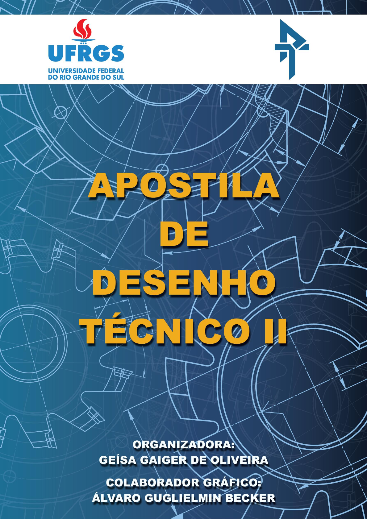 <p>Apostila de Desenho Técnico II</p><p>Organizadora:</p><p>Geísa Gaiger de Oliveira</p><p>UFRGS – Universidade Federal do Rio Grande do Sul</p><p>Autores:</p><p>Geísa Gaiger de Oliveira</p><p>UFRGS – Universidade Federal do Rio Grande do Sul</p><p>Alexandre Sobral de Rezende</p><p>UFRGS – Universidade Federal do Rio Grande do Sul</p><p>Clarissa Sartori Ziebell</p><p>UFRGS – Universidade Federal do Rio Grande do Sul</p><p>Cristina Alba Wildt Torrezzan</p><p>UFRGS – Universidade Federal do Rio Grande do Sul</p><p>Daniel Sergio Presta García</p><p>UFRGS – Universidade Federal do Rio Grande do Sul</p><p>Paulete Fridman Schwetz</p><p>UFRGS – Universidade Federal do Rio Grande do Sul</p><p>Revisão, Diagramação e Design Gráfico:</p><p>Álvaro Guglielmin Becker</p><p>Esta página foi deixada em branco propositalmente</p><p>-iv-</p><p>SUMÁRIO</p><p>CAPÍTULO 1 FOLHA DE DESENHO TÉCNICO E LINHAS 1</p><p>CAPÍTULO 2 SISTEMA DE PROJEÇÃO 16</p><p>CAPÍTULO 3</p><p>CONCORDÂNCIAS / TERMINAIS E INTERSECÇÕES</p><p>GEOMÉTRICAS</p><p>34</p><p>CAPÍTULO 4 VISTAS AUXILIARES PRIMÁRIAS E SECUNDÁRIAS 43</p><p>CAPÍTULO 5 VISTAS SECCIONADAS (CORTES E SEÇÕES) 57</p><p>CAPÍTULO 6 DIMENSIONAMENTO – COTAGEM 82</p><p>CAPÍTULO 7 ESCALAS 93</p><p>CAPÍTULO 8</p><p>INTRODUÇÃO AO DESENHO SIMBÓLICO: DESENHO DE</p><p>DETALHE E DE CONJUNTO – PERSPECTIVA EXPLODIDA</p><p>104</p><p>CAPÍTULO 9 DESENHO SIMBÓLICO: REBITE 109</p><p>CAPÍTULO 10</p><p>DESENHO SIMBÓLICO: ELEMENTOS DE LIGAÇÃO –</p><p>PARAFUSOS, PORCAS E ARRUELAS</p><p>117</p><p>CAPÍTULO 11 DESENHO SIMBÓLICO: CANALIZAÇÕES 132</p><p>CAPÍTULO 12 DESENHO SIMBÓLICO: INSTALAÇÕES ELÉTRICAS PREDIAIS 140</p><p>-v-</p><p>LISTA DE FIGURAS</p><p>CAPÍTULO 1: FOLHA DE DESENHO TÉCNICO E LINHAS</p><p>Figura 1 – Formatos derivados da série A .............................................................................. 3</p><p>Figura 2 – Configuração na folha ............................................................................................. 4</p><p>Figura 3 – Posição de leitura da folha ..................................................................................... 4</p><p>Figura 4 – Dobragem da folha A0 ............................................................................................ 5</p><p>Figura 5 – Dobragem da folha A1 ............................................................................................ 5</p><p>Figura 6 – Dobragem da folha A2 ............................................................................................ 6</p><p>Figura 7 – Dobragem da folha A3 ............................................................................................ 6</p><p>Figura 8 – Sistema de referência por malha no sistema A3 .................................................. 7</p><p>Figura 9 – Desenho esquemático de uma marca de corte ................................................... 8</p><p>Figura 10 – Exemplo básico de legenda .................................................................................. 9</p><p>Figura 11 – Exemplo de legenda.............................................................................................. 9</p><p>Figura 12 – Exemplo de lista de itens .................................................................................... 10</p><p>Figura 13 – Simbologia para método de projeção ............................................................... 10</p><p>Figura 14 – Exemplo de tabela de revisões .......................................................................... 10</p><p>CAPÍTULO 2: SISTEMA DE PROJEÇÃO</p><p>Figura 1 – Exemplo de Sistema de Projeção ......................................................................... 17</p><p>Figura 2 – Retas Projetantes Divergentes – Cone Visual ..................................................... 18</p><p>Figura 3 – Elementos da Projeção Cônica ............................................................................. 18</p><p>Figura 4 – Perspectiva com um ponto de fuga ..................................................................... 19</p><p>Figura 5 – Perspectiva com dois pontos de fuga ................................................................. 19</p><p>Figura 6 – Perspectiva com três pontos de fuga .................................................................. 19</p><p>Figura 7 – Ângulo visual nas projeções cônica e paralela ................................................... 20</p><p>Figura 8 – Representação nas projeções Cônica e Paralela ................................................ 20</p><p>Figura 9 – Retas projetantes oblíquas em relação ao plano de projeção .......................... 21</p><p>Figura 10 – Perspectiva Cavaleira .......................................................................................... 21</p><p>Figura 11 – Perspectiva Militar ............................................................................................... 21</p><p>Figura 12 – Projeção Paralela Ortogonal .............................................................................. 22</p><p>Figura 13 – Perspectiva Isométrica ........................................................................................ 22</p><p>Figura 14 – Perspectiva Dimétrica ......................................................................................... 23</p><p>file:///D:/UFRGS/Desenho%20Monitoria/Apostila/%23%23%23Apostila%20Estilo%20Valendo.docx%23_Toc92982096</p><p>file:///D:/UFRGS/Desenho%20Monitoria/Apostila/%23%23%23Apostila%20Estilo%20Valendo.docx%23_Toc92982097</p><p>-vi-</p><p>Figura 15 – Perspectiva Trimétrica ......................................................................................... 23</p><p>Figura 16 – Representação de objeto no 1° e 3° diedros .................................................... 24</p><p>Figura 17 – Símbolo da projeção orto