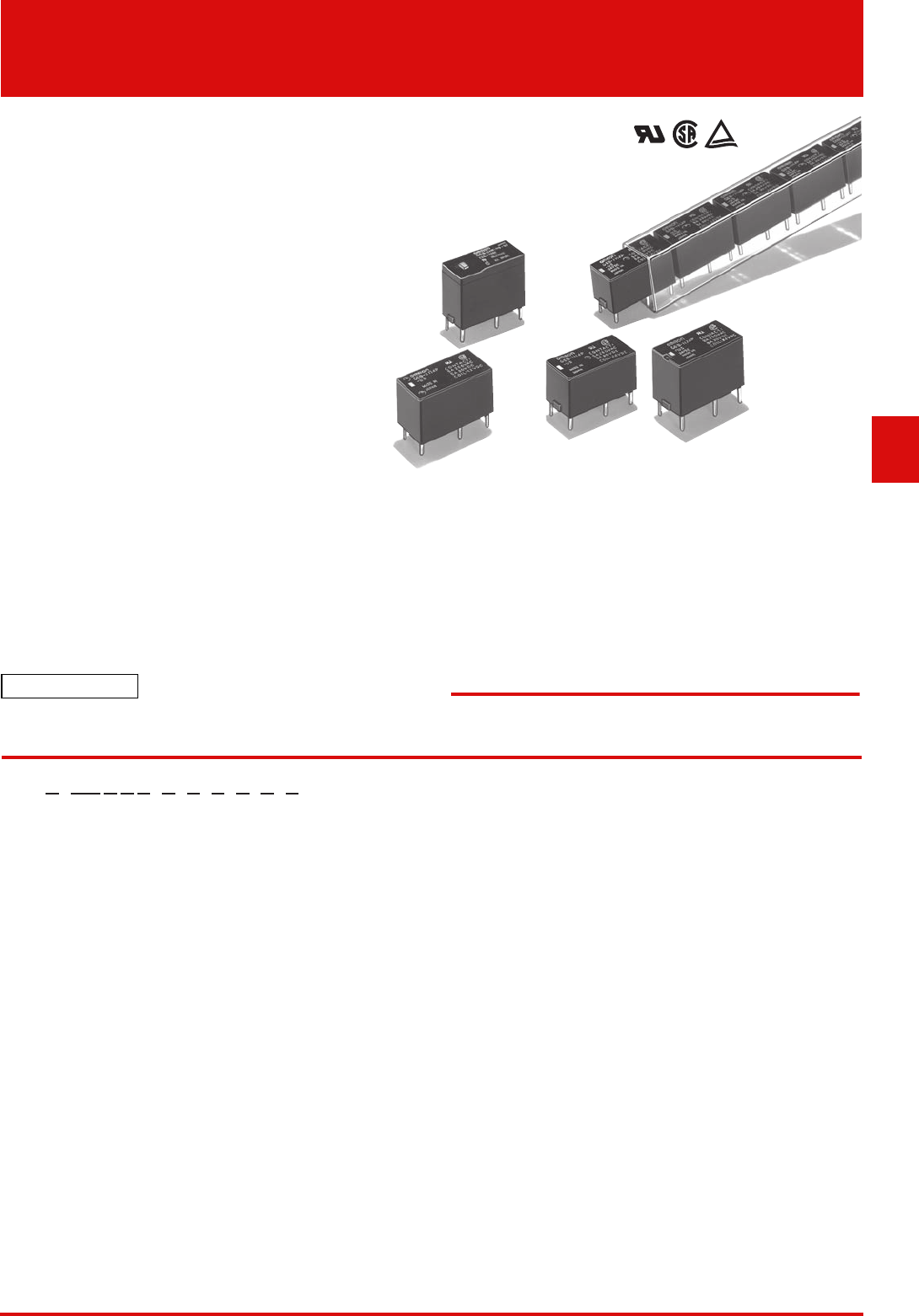 <p>1</p><p>G</p><p>6</p><p>B</p><p>G6B</p><p>PCB Power Relay</p><p>High Capacity and High</p><p>Dielectric Strength Miniature</p><p>Relay with Fully Sealed</p><p>Construction in 5 A (8 A)</p><p>SPST-NO(1a),</p><p>SPST-NO+SPST-NC(1a1b),</p><p>DPST-NO(2a),</p><p>DPST-NC(2b) Types</p><p>• P6B model for connecting sockets are available.</p><p>• High insulation with dielectric strength of 3,000VAC</p><p>between coil and contacts (impulse withstand voltage of</p><p>6 kV).</p><p>• Standard model conforms to UL/CSA standards.</p><p>• AgSnIn contacts suitable for loads that generate surge voltage (inductive load, capacity load, etc.) are available. (-FD type)</p><p>• Ultrasonic cleanable models are available. (-U type)</p><p>• Operation indicator & built-in surge absorption diode models are available. (-ND type)</p><p>• 2-Pole type available.</p><p>• High-reliability models are available.</p><p>G6B-1184P-US model (The relay used in Terminal Relay G6B-48BND)</p><p>■Model Number Legend</p><p>RoHS Compliant ■Application Examples</p><p>• Ideal for output applications of control equipments</p><p>1. Relay Function</p><p>None: Single-side stable</p><p>U : Single-winding latching</p><p>(G6B@-1114 models only)</p><p>K : Double-winding latching</p><p>(G6B@-1114 models only)</p><p>2. Contact Form</p><p>21: SPST-NO + SPST-NC</p><p>22: DPST-NO</p><p>20: DPST-NC</p><p>11: SPST-NO</p><p>3. Classification</p><p>1: Standard</p><p>7: High-capacity</p><p>8: Single crossbar</p><p>4. Enclosure rating</p><p>4: Fully sealed</p><p>7: Flux protection</p><p>5. Terminal Shape</p><p>P: Straight PCB terminals</p><p>Socket mounting terminals</p><p>C: Self-clinching PCB</p><p>6. Contact material</p><p>None: Standard (Ag-alloy (Cd free))</p><p>FD : AgSnIn contact</p><p>(Suitable for DC inductive load with</p><p>high inrush current)</p><p>7. Coil Polarity</p><p>None: 5, 6 Terminal (+), 1, 2 Terminal (-)</p><p>1 : 5, 6 Terminal (-), 1, 2 Terminal (+)</p><p>8. Operation Indicator Diode</p><p>Availability</p><p>None: Standard</p><p>ND : Operation indicator & coil surge</p><p>absorption diode</p><p>(for -1177 type only)</p><p>9. Approved Standards</p><p>US: UL/CSA</p><p>10. Washability</p><p>None: Standard</p><p>U : For ultrasonically cleanable</p><p>11. Mounting</p><p>None: Mounted directly to PCB</p><p>P6B : Mounted to Socket</p><p>1 2 3 4 5 6 7 8 9 10</p><p>-G6B@ -@@@@@ -@ -@ -@ -@ -@ -@</p><p>11</p><p>2</p><p>G6B PCB Power Relay</p><p>G</p><p>6</p><p>B</p><p>■Ordering Information</p><p>●Standard Models (UL, CSA certified)</p><p>Note: AgSnIn contact models are highly welding-resistant, and roughening of contacts due to inrush current and inductive load is lessened.</p><p>●Models for Reverse Coil Polarity</p><p>Note: AgSnIn contact models are highly welding-resistant, and roughening of contacts due to inrush current and inductive load is lessened.</p><p>Number</p><p>of poles</p><p>Contact material Standard (Ag-alloy (Cd free)) AgSnIn contact Minimum</p><p>packing unitRelay Function Contact form Terminals Model Rated coil voltage Model Rated coil voltage</p><p>1-pole</p><p>Single-side</p><p>stable</p><p>SPST-NO (1a)</p><p>(Standard)</p><p>Straight PCB G6B-1114P-US 5, 6, 12, 24 VDC G6B-1114P-FD-US 5, 6, 12, 24 VDC</p><p>100</p><p>pcs/traySelf-clinching</p><p>PCB G6B-1114C-US 5, 6, 12, 24 VDC G6B-1114C-FD-US 12, 24 VDC</p><p>SPST-NO (1a)</p><p>(High-capacity)</p><p>Straight PCB G6B-1174P-US 5, 6, 12, 24 VDC G6B-1174P-FD-US 5, 6, 12, 24 VDC</p><p>20</p><p>pcs/tubeSelf-clinching</p><p>PCB G6B-1174C-US 5, 12, 24 VDC G6B-1174C-FD-US 5, 12, 24 VDC</p><p>SPST-NO (1a)</p><p>(High-reliability )</p><p>Straight PCB G6B-1184P-US 5, 12, 24 VDC --- ---</p><p>100</p><p>pcs/tray</p><p>Self-clinching</p><p>PCB --- --- --- ---</p><p>Single-winding</p><p>latching</p><p>SPST-NO (1a)</p><p>(Standard)</p><p>Straight PCB G6BU-1114P-US 5, 6, 12, 24 VDC G6BU-1114P-FD-US 5, 12, 24 VDC</p><p>Self-clinching</p><p>PCB G6BU-1114C-US 12 VDC --- ---</p><p>Double-winding</p><p>latching</p><p>SPST-NO (1a)</p><p>(Standard)</p><p>Straight PCB G6BK-1114P-US 5, 6, 12, 24 VDC G6BK-1114P-FD-US 5, 6, 12, 24 VDC</p><p>Self-clinching</p><p>PCB G6BK-1114C-US 5, 6, 12, 24 VDC G6BK-1114C-FD-US 24 VDC</p><p>Single-side</p><p>stable</p><p>SPST-NO (1a)</p><p>(Built-in high-</p><p>capacity operation</p><p>indicator & diode)</p><p>Straight PCB G6B-1177P-ND-US 5, 12, 24 VDC G6B-1177P-FD-ND-US 5, 12, 24 VDC</p><p>Self-clinching</p><p>PCB G6B-1177C-ND-US 5, 12, 24 VDC G6B-1177C-FD-ND-US 12, 24 VDC</p><p>2-pole Single-side</p><p>stable</p><p>SPST-NO (1a)+</p><p>SPST-NC (1b)</p><p>(Standard)</p><p>Straight PCB G6B-2114P-US 5, 6, 12, 24 VDC G6B-2114P-FD-US 5, 6, 12, 24 VDC</p><p>Self-clinching</p><p>PCB G6B-2114C-US 5, 12, 24 VDC G6B-2114C-FD-US 5, 12 VDC</p><p>DPST-NO (2a)</p><p>(Standard)</p><p>Straight PCB G6B-2214P-US 5, 6, 12, 24 VDC G6B-2214P-FD-US 5, 6, 12, 24 VDC</p><p>Self-clinching</p><p>PCB G6B-2214C-US 5, 12, 24 VDC G6B-2214C-FD-US 5, 12, 24 VDC</p><p>DPST-NC (2b)</p><p>(Standard)</p><p>Straight PCB G6B-2014P-US 5, 6, 12, 24 VDC G6B-2014P-FD-US 5, 6, 12, 24 VDC</p><p>Self-clinching</p><p>PCB G6B-2014C-US 5, 6, 12, 24 VDC G6B-2014C-FD-US 12, 24 VDC</p><p>Number</p><p>of poles</p><p>Contact material Standard (Ag-alloy (Cd free)) AgSnIn contact Minimum</p><p>packing unitRelay Function Contact form Terminals Model Rated coil voltage Model Rated coil voltage</p><p>1-pole</p><p>Single-side</p><p>stable</p><p>SPST-NO (1a)</p><p>(Standard)</p><p>Straight PCB G6B-1114P-1-US 5, 6, 12, 24 VDC G6B-1114P-FD-1-US 24 VDC</p><p>100</p><p>pcs/traySelf-clinching</p><p>PCB --- --- --- ---</p><p>SPST-NO (1a)</p><p>(High-capacity)</p><p>Straight PCB G6B-1174P-1-US 5, 12, 24 VDC --- ---</p><p>20</p><p>pcs/tubeSelf-clinching</p><p>PCB --- --- --- ---</p><p>Single-winding</p><p>latching</p><p>SPST-NO (1a)</p><p>(Standard)</p><p>Straight PCB G6BU-1114P-1-US 5, 12 VDC --- ---</p><p>100</p><p>pcs/tray</p><p>Self-clinching</p><p>PCB --- --- --- ---</p><p>Double-winding</p><p>l