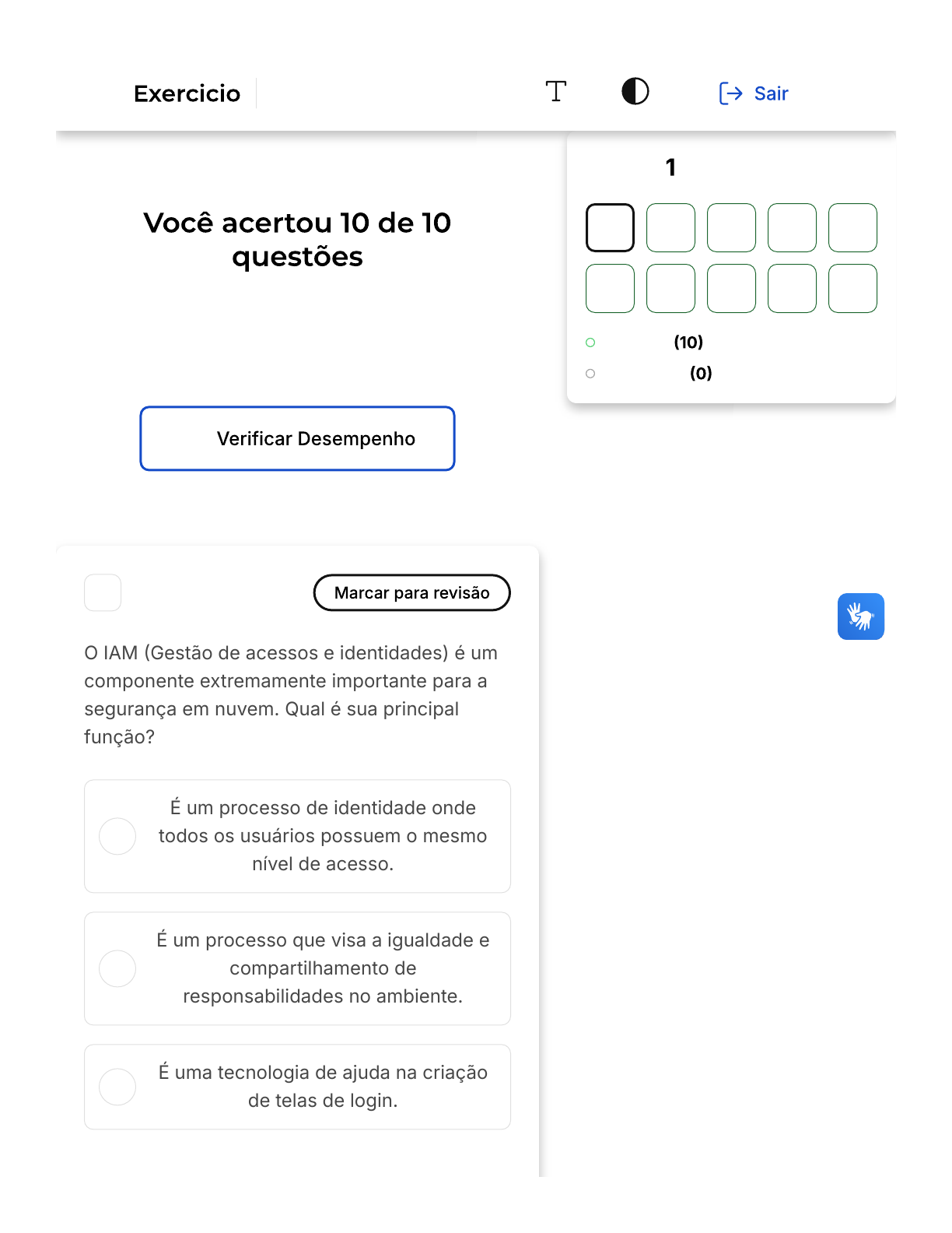 <p>Verifique o seu desempenho e continue</p><p>treinando! Você pode refazer o exercício</p><p>quantas vezes quiser.</p><p>A</p><p>B</p><p>C</p><p>1</p><p>O IAM �Gestão de acessos e identidades) é um</p><p>componente extremamente importante para a</p><p>segurança em nuvem. Qual é sua principal</p><p>função?</p><p>É um processo de identidade onde</p><p>todos os usuários possuem o mesmo</p><p>nível de acesso.</p><p>É um processo que visa a igualdade e</p><p>compartilhamento de</p><p>responsabilidades no ambiente.</p><p>É uma tecnologia de ajuda na criação</p><p>de telas de login.</p><p>Questão de 10</p><p>Corretas</p><p>Em branco</p><p>1 2 3 4 5</p><p>6 7 8 9 10</p><p>Ambiente De Computação</p><p>Em Nuvem – Google Cloud</p><p>Firefox https://estacio.saladeavaliacoes.com.br/exercicio/6706a05bc...</p><p>1 of 18 10/9/24, 12:30</p><p>D</p><p>E</p><p>É o gerenciamento de usuários e</p><p>senhas.</p><p>É um processo que visa controlar o</p><p>acesso às informações e ações com</p><p>base no nível de acesso do usuário.</p><p>Parabéns, você selecionou a</p><p>alternativa correta. Confira o</p><p>gabarito comentado!</p><p>O IAM �Identity and Access Management,</p><p>em inglês) é um processo que tem como</p><p>principal função controlar o acesso às</p><p>informações, recursos e ações do</p><p>ambiente. Isso é feito com base no nível de</p><p>acesso do usuário, garantindo que cada um</p><p>tenha acesso apenas ao que é necessário</p><p>para suas funções. O Google Cloud, por</p><p>exemplo, oferece sua solução de IAM</p><p>integrada à plataforma, permitindo gerir</p><p>todos os usuários e definir seu nível de</p><p>acesso de maneira eficiente e segura.</p><p>Portanto, a alternativa E é a correta, pois</p><p>descreve corretamente a principal função</p><p>do IAM.</p><p>2</p><p>O VPC é uma boa opção para empresas que</p><p>Firefox https://estacio.saladeavaliacoes.com.br/exercicio/6706a05bc...</p><p>2 of 18 10/9/24, 12:30</p><p>A</p><p>B</p><p>C</p><p>precisam manter a segurança e privacidade de</p><p>seus dados, além de garantir que apenas</p><p>usuários autorizados tenham acesso às suas</p><p>aplicações e recursos na nuvem. É possível</p><p>configurar VPCs no Azure, AWS, Google Cloud</p><p>entre outros provedores de nuvem.</p><p>Sobre a VPC, classifique como verdadeiro ou</p><p>falso as afirmativas abaixo:</p><p>( ) Para toda infraestrutura alocada em</p><p>Google Cloud, não é necessário ter uma rede</p><p>configurada.</p><p>( ) Uma VPC é um modo de rede seguro,</p><p>individual e privado, hospedado em Google</p><p>Cloud, e através dela os usuários podem rodar</p><p>códigos, armazenar dados e hospedar sites.</p><p>( ) A VPC do Google Cloud é global, isso</p><p>significa que ao criá-la, podemos ser atendidos</p><p>em qualquer região disponível.</p><p>( ) Dentro das redes privadas virtuais, é</p><p>configurada as sub-redes, conhecidas como</p><p>subnets, as quais podem estar alocadas em</p><p>qualquer região que seja necessário, e com</p><p>isso, todas as políticas e regras podem ser</p><p>feitas regionalmente.</p><p>Assinale a alternativa que apresenta a</p><p>sequência correta de cima para baixo.</p><p>F; V; F; V.</p><p>V; F; V; F.</p><p>F; F; V; F.</p><p>Firefox https://estacio.saladeavaliacoes.com.br/exercicio/6706a05bc...</p><p>3 of 18 10/9/24, 12:30</p><p>D</p><p>E</p><p>V; V; F; V.</p><p>F; V; V; V.</p><p>Parabéns, você selecionou a</p><p>alternativa correta. Confira o</p><p>gabarito comentado!</p><p>A primeira afirmação é falsa, pois para toda</p><p>infraestrutura alocada em Google Cloud, é</p><p>necessário ter uma rede configurada. As</p><p>demais afirmações são verdadeiras. Uma</p><p>VPC �Virtual Private Cloud) é um modo de</p><p>rede seguro, individual e privado,</p><p>hospedado em Google Cloud. Através dela,</p><p>os usuários podem rodar códigos,</p><p>armazenar dados e hospedar sites. A VPC</p><p>do Google Cloud é global, o que significa</p><p>que, ao criá-la, podemos ser atendidos em</p><p>qualquer região disponível. Além disso,</p><p>dentro das redes privadas virtuais, são</p><p>configuradas as sub-redes, conhecidas</p><p>como subnets, que podem estar alocadas</p><p>em qualquer região que seja necessário.</p><p>Com isso, todas as políticas e regras</p><p>podem ser feitas regionalmente.</p><p>3</p><p>Com a chegada da computação em nuvem,</p><p>Firefox https://estacio.saladeavaliacoes.com.br/exercicio/6706a05bc...</p><p>4 of 18 10/9/24, 12:30</p><p>A</p><p>B</p><p>surgiram soluções como serviço, como a</p><p>infraestrutura como serviço �Infrastructure as a</p><p>Service em inglês, chamada de IaaS) e a</p><p>plataforma como serviço �Platform as a Service</p><p>em inglês, chamada de PaaS�.</p><p>Nesse sentido, classifique como verdadeiro ou</p><p>falso as afirmativas abaixo:</p><p>( ) Enquanto na IaaS ainda existe uma</p><p>responsabilidade do ponto de vista de sistema</p><p>operacional e dados, por exemplo, na PaaS isso</p><p>é desnecessário, visto que tudo isso é provido</p><p>sob demanda.</p><p>( ) A IaaS é o modelo que oferece infraestrutura</p><p>sob demanda, como recursos computacionais,</p><p>armazenamento, rede e virtualização. Esse</p><p>modelo ajuda a eliminar grande parte da</p><p>complexidade e custos associados à criação e</p><p>manutenção de infraestrutura física de um data</p><p>center.</p><p>( ) Utilizando IaaS do Google Cloud, o cliente</p><p>não tem a responsabilidade de gerenciar a</p><p>camada de sistema operacional, dados e</p><p>aplicação.</p><p>( ) A PaaS (plataforma como serviço) é um</p><p>modelo que engloba a IaaS, porém com uma</p><p>camada de abstração maior, tirando toda</p><p>responsabilidade do ponto de vista de</p><p>operações e infraestrutura, ou seja, o usuário</p><p>não precisa se preocupar com nada além da</p><p>sua aplicação.</p><p>Assinale a alternativa que apresenta a</p><p>sequência correta de cima para bai