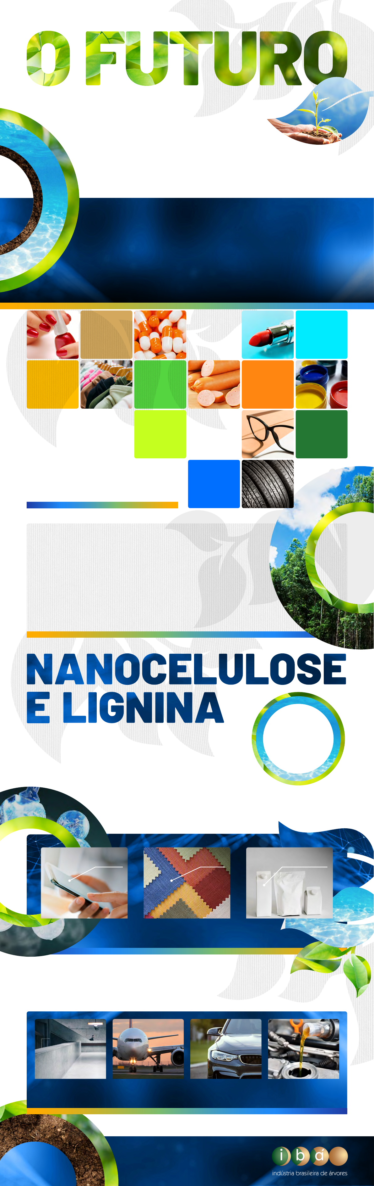 <p>Tecnologia, ciência, inovação e profissionais capacitados estão</p><p>trabalhando, em conjunto, para trazer até você a oportunidade de</p><p>aliar qualidade com sustentabilidade. Das árvores cultivadas estão</p><p>sendo desenvolvidas soluções que absorvem, estocam CO2 e evitam a</p><p>emissão, ajudando na mitigação dos impactos ambientais e climáticos.</p><p>NANOCELULOSE</p><p>Com dimensão nanométrica, é considerada um “supermaterial”, por ser mais</p><p>resistente que o aço, além de leve e impermeável. É versátil e tem atraído</p><p>a atenção de diversas indústrias. Utiliza recursos naturais de maneira</p><p>sustentável e é biodegradável.</p><p>São duas das diversas soluções que virão da madeira e a partir do</p><p>investimento em P&D do setor florestal, que trabalha para melhorar</p><p>a sua qualidade de vida. A indústria está próxima à academia e</p><p>sempre em busca por inovação para melhoria de seus processos.</p><p>LIGNINA</p><p>Trata-se de uma molécula presente em 25% da árvore, obtida a partir da produção de celulose e papel. Até</p><p>então era um resíduo somente utilizado na combustão para geração de energia limpa. Hoje, é apontada</p><p>como potencial substituta do petróleo e para aplicações em diversas indústrias:</p><p>O FUTURO É UMA FLORESTA</p><p>DE BIOPORTUNIDADES</p><p>ESTÁ NAS ÁRVORES CULTIVADAS</p><p>Cultivando o hoje para colher um amanhã melhor</p><p>Para empresas de base florestal é fundamental cuidar do meio</p><p>ambiente e adotar práticas sustentáveis em todo o ciclo de produção.</p><p>As árvores são plantadas, colhidas e replantadas para dar vida a matérias-primas</p><p>verdadeiramente sustentáveis e que originam ecoprodutos presentes no seu dia a dia.</p><p>Além disso, o setor mantém diálogo aberto com todos, gerando valor compartilhado</p><p>para comunidades vizinhas e para a sociedade.</p><p>BENEFÍCIOS DO SETOR PARA A SOCIEDADE</p><p>UNIVERSIDADE</p><p>E INICIATIVAS</p><p>1,3 milhão de</p><p>empregos gerados</p><p>pelo setor</p><p>9 milhões de</p><p>hectares de árvores</p><p>cultivadas</p><p>90% da energia</p><p>usada provêm de</p><p>fontes renováveis</p><p>+ 5.000 produtos</p><p>sustentáveis</p><p>NA TELA DO</p><p>CELULAR</p><p>NOS FIOS</p><p>TÊXTEIS</p><p>NAS EMBALAGENS</p><p>DE ALIMENTOS</p><p>Pessoas:</p><p>Meio Ambiente:</p><p>Button 9:</p><p>Produtos:</p><p>Celulose Soluvel:</p><p>Lig 1:</p><p>Lig 2:</p><p>Lig 3:</p><p>Lig 4:</p><p>Celulose 1:</p><p>Celulose 2:</p><p>Celulose 3:</p><p>Universidade:</p><p>Lig 1 Box:</p><p>Lig 2 Box:</p><p>Lig 3 Box:</p><p>Lig 4 Box:</p><p>Celulose 1 Box:</p><p>Celulose 2 Box:</p><p>Celulose 3 Box:</p><p>Universidade Box:</p><p>Celulose Soluvel Box:</p><p>Pessoas Box:</p><p>Meio Ambiente Box:</p><p>Bioindustria Box:</p><p>Produtos Box:</p>