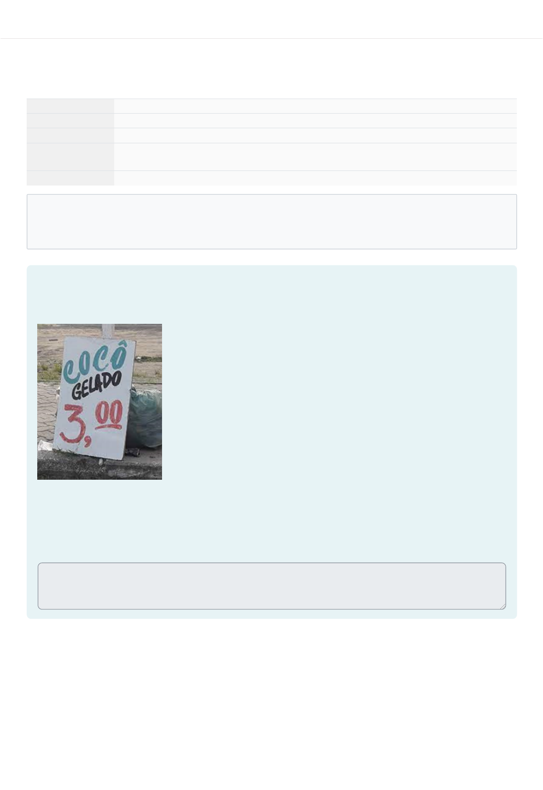 <p>Iniciado em terça-feira, 8 out. 2024, 03:05</p><p>Estado Finalizada</p><p>Concluída em sexta-feira, 11 out. 2024, 03:55</p><p>Tempo</p><p>empregado</p><p>3 dias</p><p>Avaliar Ainda não avaliado</p><p>Questão 1</p><p>Completo</p><p>Vale 2,00 ponto(s).</p><p>Leia e observe a placa a seguir.</p><p>Disponível em: https://encrypted-tbn0.gstatic.com/images?q=tbn:ANd9GcREBLlmpvazddDHsPoNFzCqH3JXqoIaspLckZiql2E3y26DzvdE1D2tz2x6X6DYRf4aN_k&usqp=CAU. Acesso</p><p>em: 15 ago. 2024.</p><p>Considerando as regras de acentuação da língua portuguesa, EXPLIQUE o impacto causado pelo erro</p><p>encontrado na placa.</p><p>O erro ortográfico na comunicação visual, causa àqueles que conhecem a ortografia um certo</p><p>desconforto pois o cocô significa fezes (excremento) e não a fruta coco. Portanto embora no contexto</p><p>poderá ser amplamente entendido, é um erro gravíssimo de posicionamento de produto.</p><p>11/10/2024, 03:55 Questionário Semana 4: Revisão da tentativa | AVA - IFMG Ribeirão das Neves</p><p>https://ead.ifmg.edu.br/ribeiraodasneves/mod/quiz/review.php?attempt=110924&cmid=39460 1/6</p><p>Questão 2</p><p>Completo</p><p>Vale 3,00 ponto(s).</p><p>Leia o texto.</p><p>Deveria ser óbvio, diante do banho de sangue que presenciamos esses dias em Israel e na Palestina, que a</p><p>comunidade internacional chegasse ao consenso quanto à necessidade de um cessar-fogo. Não é o que se</p><p>vê.</p><p>Redigida pelo Brasil, a resolução do Conselho de Segurança da ONU — que poderia evitar a continuação de</p><p>bombardeios e levar água, alimentos e eletricidade à população civil inocente na Faixa de Gaza — foi</p><p>vetada pelos EUA. Na visão de Washington, o texto não teria expressado suficientemente o direito de Israel à</p><p>autodefesa.</p><p>Disponível em: https://www1.folha.uol.com.br/opiniao/2023/10/o-brasil-sempre-pela-paz.shtml. Acesso em: 04 out. 2024.</p><p>Leia os períodos abaixo (I e II) e (III e IV).</p><p>I - Deveria ser óbvio que a comunidade internacional chegasse ao consenso quanto à</p><p>necessidade de um cessar-fogo.</p><p>II - Não é o que se vê.</p><p>III - A resolução do Conselho de Segurança da ONU foi vetada pelos EUA.</p><p>IV - O texto não teria expressado suficientemente o direito de Israel à autodefesa.</p><p>Agora é a sua vez. Reescreva os períodos indicados (I e II); e (III e IV) UNINDO-OS com a ajuda de um</p><p>articulador textual. ATENÇÃO! Você deve manter o sentido dado pelo texto original. Assim, escolha bem os</p><p>articuladores que você irá usar.</p><p>Períodos I e II:</p><p>Deveria ser óbvio que a comunidade internacional chegasse ao consenso quanto à necessidade de um</p><p>cessar-fogo; entretanto, não é o que se vê.</p><p>Períodos III e IV unidos:</p><p>A resolução do Conselho de Segurança da ONU foi vetada pelos EUA, visto que, na visão de Washington,</p><p>o texto não teria expressado suficientemente o direito de Israel à autodefesa.</p><p>11/10/2024, 03:55 Questionário Semana 4: Revisão da tentativa | AVA - IFMG Ribeirão das Neves</p><p>https://ead.ifmg.edu.br/ribeiraodasneves/mod/quiz/review.php?attempt=110924&cmid=39460 2/6</p><p>Questão 3</p><p>Completo</p><p>Vale 4,00 ponto(s).</p><p>Questão 4</p><p>Completo</p><p>Vale 2,00 ponto(s).</p><p>Leia o comentário de um leitor do jornal Folha de São Paulo.</p><p>Texto necessário. A esquerda é incongruente. A violência policial nos morros cariocas é abominável, mas o</p><p>terrorismo do Hamas é "ato de resistência" [...]</p><p>Felipe Vasconcelos (Juiz de Fora, MG)</p><p>https://www1.folha.uol.com.br/paineldoleitor/2023/10/o-exercito-esta-correto-em-investigar-diz-leitora-sobre-sumico-de-metralhadoras.shtml</p><p>a) Semanticamente, qual é a importância da palavra destacada para o sentido do texto?</p><p>b) Quais outros vocábulos poderiam substituí-la SEM acarretar mudança no sentido?</p><p>a) Semanticamente, a importância da palavra "mas" para o sentido do texto é:</p><p>O "mas" funciona como uma "conjunção adversativa", a qual de forma técnica estabelece oposição</p><p>no sentido da oração, assim com um contraste e/ou no sentido de oposição entre as duas ideias</p><p>Leia o texto publicado no caderno Cotidiano, do jornal Folha de São Paulo.</p><p>Exército</p><p>"Enquanto não acham as armas, eles vão pagando, diz pai de soldado do Exército aquartelado"</p><p>Diante de tal falha, a unidade precisa recuperar não somente as armas, mas também a honra.</p><p>Renato Dias Baptista (Bauru, SP)</p><p>https://www1.folha.uol.com.br/paineldoleitor/2023/10/o-exercito-esta-correto-em-investigar-diz-leitora-sobre-sumico-de-metralhadoras.shtml</p><p>Considere as palavras destacadas no texto. Agora, reescreva o período substituindo-as por outras que</p><p>transmitam a mesma ideia. Faça todas as adaptações necessárias.</p><p>Enquanto não localizam as armas, eles seguirão pagando, afirma pai de um soldado do Exército em</p><p>quartel.</p><p>11/10/2024, 03:55 Questionário Semana 4: Revisão da tentativa | AVA - IFMG Ribeirão das Neves</p><p>https://ead.ifmg.edu.br/ribeiraodasneves/mod/quiz/review.php?attempt=110924&cmid=39460 3/6</p><p>https://www1.folha.uol.com.br/cotidiano/2023/10/enquanto-nao-acham-as-armas-eles-vao-pagando-diz-pai-de-soldado-do-exercito-aquartelado.shtml</p><p>Questão 5</p><p>Completo</p><p>Vale 2,00 ponto(s).</p><p>Questão 6</p><p>Completo</p><p>Vale 2,00 ponto(s).</p><p>Leia as frases que seguem.</p><p>I - Débora desenhou a caneta.</p><p>II - Débora desenhou à caneta.</p><p>EXPLIQUE a diferença de sentido entre as orações.</p><p>A diferença principal está no uso da preposição "a" na frase I e da contração "à" (preposição "a" +</p><p>artigo "a") na frase II.</p><p>é</p><p>Leia as frases a seguir.</p><p>I - O presidente depôs a Comissão.</p><p>II - O presidente depôs à Comissão.</p><p>Semanticamente, qual é a diferença entre as frases?</p><p>I - Significa que o president