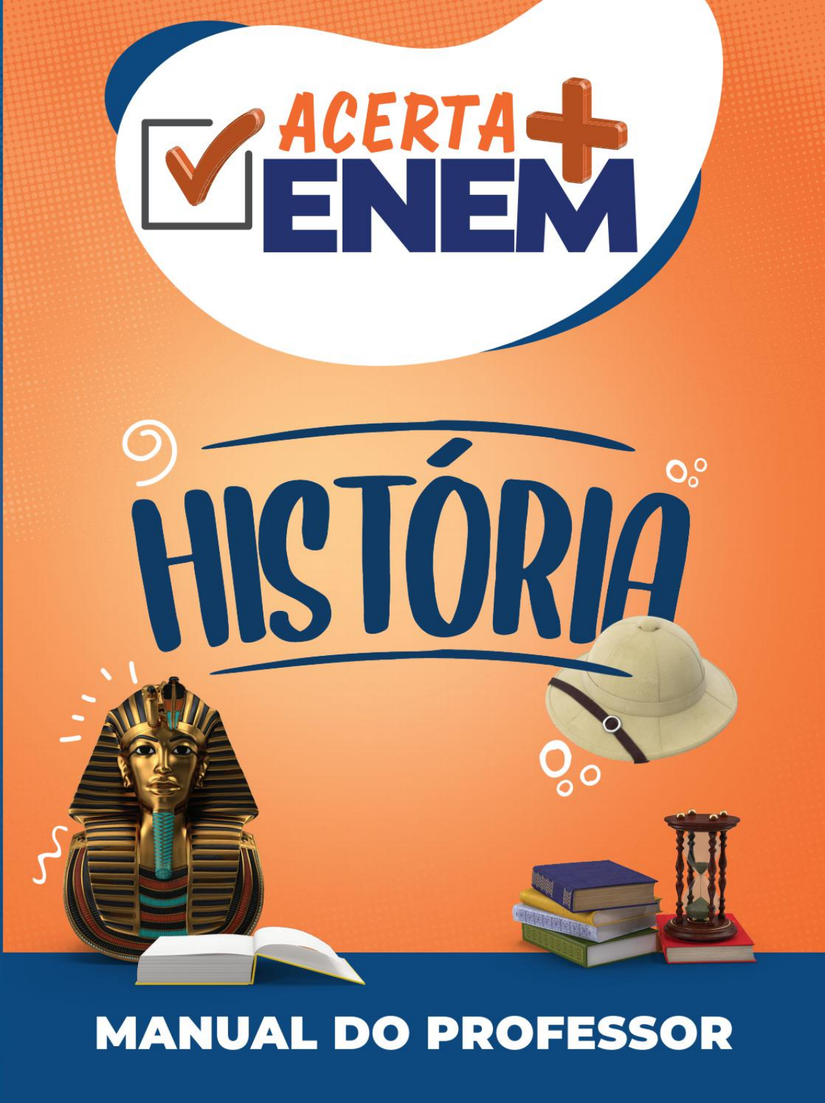 <p>ACERTA HISTORIA MANUAL DO PROFESSOR</p><p>ACERTA ENEM MANUAL DO PROFESSOR HISTÓRIA Rafael Virgínio edição São Paulo / 2020 EDITORA</p><p>Copyright © 2020 Título original da obra: MWC EDITORA Acerta mais ENEM: História Av. Paulista, 37 4° andar Manual do Professor Cond. Parque Cultural Paulista edição / São Paulo, 2020 Paraíso CEP 01311-000 São Paulo SP Brasil Edição CNPJ: 13.101.659/0001-86 Rodrigo Gonçalves Fone: (11) 2246.2848 comercial@mwceditora.com.br Assistência Editorial Ferreira Luísa Félix Preparação e revisão Dayane Oliveira Jéssica Tayrine Produção gráfica Gilberto Melo Diagramação Alexandre Cavalcanti Fernando Galdino Fernando Gabriel Gilberto Melo Wilker Mad Ilustração Lelo Alves Iconografia Anderson Figueiredo Projeto Gráfico Alexandre Cavalcanti Caio Lopes Gilberto Melo Banco de imagens Shutterstock Dados Internacionais de Catalogação na Publicação (CIP) V81a Virgínio, Rafael da Silva 1.ed. Acerta mais ENEM: história: manual do professor / Rafael da Silva [editor] Rodrigo - 1.ed. São Paulo: MWC Editora, 2020. 248 20,5 27,5 cm. ISBN 978-65-990463-7-7 1. 2. ENEM questões. 3. 4. Manual do professor. I. Gonçalves, Rodrigo. II. Na tentativa de cumprir todas as regulamentações determinadas CDD 909 pela legislação, realizamos todos os esforços para localizar os detentores dos direitos das imagens e textos contidos Índices para catálogo sistemático: nesta obra. No entanto, caso tenha havido alguma omissão 1. História: manual do professor involuntária, a MWC Editora se compromete em corrigi-la na 2. ENEM: questões primeira oportunidade. 3. Vestibular Todos os direitos reservados. Nenhuma parte deste livro pode Bibliotecária responsável: Aline Graziele Benitez CRB-1/3129 ser reproduzida sem a permissão por escrito da editora.</p><p>Apresentação Prezado professor, Ao reconhecer a relevância de um material didático que sistematiza os conhecimentosrelacionados às competências e habilidades ao Exame Nacional do Ensino Médio Enem, a coleção Acerta Mais Enem foi elaborada para ser um suporte voltado a atender às necessidades de professores e estudantes do Ensino Médio. Os livros que compõem a coleção foram produzidos para apoiar o processo de preparação para as provas de cada área de conhecimento do Enem. Para isso, algumas estratégias foram adotadas. Em primeiro plano, os volumes, divididos por área de conhecimento, são subdivididos por componentes curriculares. Dessa forma, atende-se a um maior número de habilidades que podem ser desenvolvidas a partir das mediações pedagógicas realizadas pelos professores. Em relação aos recursos digitais, as videoaulas têm acesso facilitado via tecnologia QR Code, em que o estudante verifica a resolução das questões apresentadas nos livros. Já em relação ao manual do professor, é disponibilizado um quadro descritivo dos conteúdos, competências e habilidades para auxiliar no planejamento das aulas. É importante que o livro de redação é um volume único e foca no desenvolvimento da escrita do texto dissertativo-argumentativo explorando o processo de produção passo a passo. Em síntese, a etapa final da Educação Básica Ensino Médio deve concretizar um processo educativo pautado na formação integral, essencial à continuidade da vida escolar dos estudantes. Como consequência, a formação de uma sociedade mais justa, democrática e inclusiva será alcançada.</p><p>ENEM ENEM O Exame Nacional do Ensino Médio (Enem) foi instituído em 1998 como forma de o desenvol- vimento de competências por parte dos egressos do ensino médio e, consequentemente, orientar a criação de políticas públicas que pudessem resultar em melhores desempenhos. Foi a partir de 2009 que o Novo Enem passou a avalian jovens e adultos brasileiros como mecanismo único, alternativo ou complementar aos processos de seleção para o acesso ao ensino superior no Brasil. Por ser uma avaliação complexa, sustentada em eixos cognitivos o domínio de linguagens, a com- preensão de fenômenos, o enfrentamento de situações-problema, a construção de argumentação e a ela- boração de propostas os alunos/participantes precisam estar preparados para atender aos requisitos de cada prova. Os eixos cognitivos são assim caracterizados: I. Dominar linguagens (DL): dominar a norma culta da Língua Portuguesa e fazer uso das linguagens matemática, artística e científica e das línguas espanhola e inglesa. II. Compreender fenômenos (CF): construir e aplicar conceitos das várias áreas do conhecimento para a compreensão de fenômenos naturais, de processos histórico-geográficos, da produção tec- nológica e das manifestações artísticas. III. Enfrentar situações-problema (SP): selecionar, organizar, relacionar, interpretar dados e informa- ções representados de diferentes formas, para tomar decisões e situações-problema. IV. Construir argumentação (CA): informações, representadas em diferentes formas, e conhecimentos disponíveis em situações concretas, para construir argumentação consistente. V. Elaborar propostas (EP): recorrer aos conhecimentos desenvolvidos na escola para elaboração de propostas de intervenção solidária na realidade, respeitando os valores humanos e conside- rando a diversidade sociocultural. Os eixos são os mesmos para as quatro áreas de conhecimento do ensino médio, que, de acordo com a Matriz de Referência do são: Linguagens, Códigos e suas Tecnologias e Redação: referente aos componentes curriculares Língua Portuguesa, Língua Estrangeira Moderna (Inglês ou Espanhol), Literatura, Arte, Educação Física. Matemática e suas Tecnologias: referente ao componente curricular Matemática. Ciências da Natureza e suas Tecnologias: referente aos componentes curriculares Química, Física e Biologia. Ciências Humanas e suas Tecnologias: referente aos componentes curriculares Geografia, História, Filosofia e Sociologia. 1 Conjunt