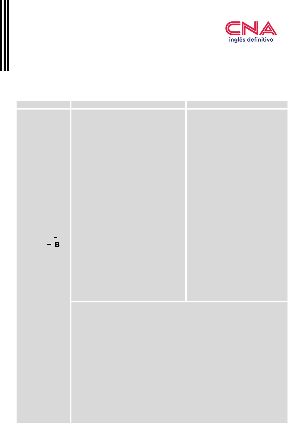 <p>ADVANCED 1 – NEW CNA GOLD 1</p><p>MIDTERM AND FINAL WRITTEN TESTS – TYPE B</p><p>ANSWER KEY</p><p>NEW CNA GOLD 1</p><p>MIDTERM WRITTEN TEST – Type B</p><p>ANSWER KEY</p><p>READING AND USE OF ENGLISH LISTENING</p><p>NEW CNA GOLD 1</p><p>MIDTERM</p><p>WRITTEN TEST</p><p>TYPE A</p><p>ACTIVITY 1</p><p>1. B far</p><p>2. A easily</p><p>3. C find</p><p>4. C nutritiously</p><p>5. C why</p><p>6. D are trying</p><p>ACTIVITY 2</p><p>7. not quite as good</p><p>8. pretty much the same (thing)</p><p>9. as a consequence of</p><p>10. rather than going</p><p>11. are not aware of</p><p>12. astonished at the way</p><p>13. because of my love</p><p>14. to die down</p><p>ACTIVITY 3</p><p>15. a</p><p>16. b</p><p>17. b</p><p>18. b</p><p>19. a</p><p>20. c</p><p>1. A</p><p>2. E</p><p>3. F</p><p>4. G</p><p>5. B</p><p>WRITING</p><p>CORRECTING AND GRADING THE WRITING SECTION</p><p>Content: 2,5 points</p><p>Form: 2,5 points</p><p>Content</p><p> Is the text cohesive and coherent within this level of proficiency and task</p><p>proposed?</p><p> Is the student able to adapt language to the communicative task according to this</p><p>level?</p><p>Form</p><p> Is the vocabulary understood and used as the standard English taught to this</p><p>level?</p><p> Is the grammar understood and applied as the standard English taught to this</p><p>level?</p><p> Are words written according to standard English?</p><p>ADVANCED 1 – NEW CNA GOLD 1</p><p>MIDTERM AND FINAL WRITTEN TESTS – TYPE B</p><p>ANSWER KEY</p><p>NEW CNA GOLD 1</p><p>FINAL WRITTEN TEST – Type B</p><p>ANSWER KEY</p><p>READING AND USE OF ENGLISH LISTENING</p><p>NEW CNA GOLD 1</p><p>FINAL</p><p>WRITTEN TEST</p><p>TYPE A</p><p>ACTIVITY 1</p><p>1. movement</p><p>2. shopping</p><p>3. involved</p><p>4. encouraging</p><p>5. donations</p><p>6. excited</p><p>ACTIVITY 2</p><p>7. I am used to facing</p><p>8. I got used to</p><p>9. if I were</p><p>10. rip off</p><p>11. to go on</p><p>12. was so annoying</p><p>13. was puzzled by</p><p>14. went window shopping</p><p>ACTIVITY 3</p><p>15. C</p><p>16. G</p><p>17. E</p><p>18. A</p><p>19. D</p><p>20. F</p><p>1. c</p><p>2. b</p><p>3. b</p><p>4. c</p><p>5. a</p><p>WRITING</p><p>CORRECTING AND GRADING THE WRITING SECTION</p><p>Content: 2,5 points</p><p>Form: 2,5 points</p><p>Content</p><p> Is the text cohesive and coherent within this level of proficiency and task</p><p>proposed?</p><p> Is the student able to adapt language to the communicative task according to this</p><p>level?</p><p>Form</p><p> Is the vocabulary understood and used as the standard English taught to this</p><p>level?</p><p> Is the grammar understood and applied as the standard English taught to this</p><p>level?</p><p> Are words written according to standard English?</p>