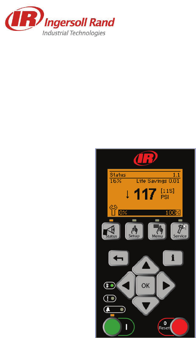 <p>Issue 5 Rev. E Oct 2010</p><p>Nirvana 15 - 30kW (20-40Hp)</p><p>Troubleshooting Manual</p><p>Nirvana 15-30kW (20-40Hp)</p><p>Troubleshooting Manual</p><p>Nirvana 15 - 30kW (20-40Hp) Troubleshooting Manual Page 2</p><p>Issue 05 Rev E Davidson, Oct 2010. ©Ingersoll Rand Proprietary Information</p><p>Danger</p><p>Please utilize extreme caution when performing work within the compressor cabinet.</p><p>When opening the cabinet: be certain the drive protective cover is in place, wear appropriate PPE</p><p>(Personal Protective Equipment), follow lock out-tag out procedures, and ensure all safety procedures</p><p>are followed.</p><p>Copyright Notice</p><p> 2007 Ingersoll Rand Company</p><p>Proprietary Notices and Disclaimer</p><p>PROPRIETARY NOTICES</p><p>Copyright 2007 INGERSOLL RAND COMPANY</p><p>CONFIDENTIAL AND TRADE SECRET INFORMATION. This manual contains confidential and trade secret</p><p>information owned by Ingersoll-Rand Company (hereinafter referred to as "Proprietary Matter"). In consideration</p><p>of the disclosure of the Proprietary Matter herein to the authorized recipient hereof, the recipient shall treat the</p><p>Proprietary Matter as secret and confidential; shall not disclose or give such Proprietary Matter to third parties</p><p>without the express written authorization of INGERSOLL RAND; shall not use the Proprietary Matter except to</p><p>the extent necessary to use or service the equipment disclosed herein; and shall disclose such Proprietary</p><p>Matter only to those of its employees whose use or knowledge of the Proprietary Matter is necessary. This</p><p>manual shall be returned upon request by Ingersoll Rand Company. The unauthorized use of this manual may</p><p>be punishable by law.</p><p>DISCLAIMERS</p><p>PROVIDED "AS IS". THIS MANUAL AND THE CONTENTS THEREOF ARE PROVIDED "AS IS" AND</p><p>WITHOUT ANY IMPLIED WARRANTIES.</p><p>Nirvana 15-30kW (20-40Hp)</p><p>Troubleshooting Manual</p><p>Nirvana 15 - 30kW (20-40Hp) Troubleshooting Manual Page 3</p><p>Issue 05 Rev E Davidson, Oct 2010. ©Ingersoll Rand Proprietary Information</p><p>Danger</p><p>Please utilize extreme caution when performing work within the compressor cabinet.</p><p>When opening the cabinet: be certain the drive protective cover is in place, wear appropriate PPE</p><p>(Personal Protective Equipment), follow lock out-tag out procedures, and ensure all safety procedures</p><p>are followed.</p><p>Environmental concerns.. ............................... 4</p><p>Pre-Installation Checks ................................... 5</p><p>Power Quality Requirements .......................... 5</p><p>Remote Alarm Location .................................. 6</p><p>Fan Logics and Mechanical notes……………..7</p><p>VFD inputs and outputs………………………...8</p><p>Motor wiring information and testing………….9</p><p>Fault Messages ............................................. 10</p><p>Using the LCP ............................................... 16</p><p>Description of LCP Screens .......................... 17</p><p>Trouble Shooting The LCD ........................... 19</p><p>General Trouble Shooting ............................. 21</p><p>Drive Terminal Pin Connections ................... 21</p><p>Static Testing Description…………………….22</p><p>Static Test On HV 20-25 HP (15-18.5kW)</p><p>Drives……………………………………….23-24</p><p>Static Test On 20-25 HP</p><p>(15-18.5kW) (Low Voltage Units)</p><p>and the 30/40 HP (22-30kW) (High and low</p><p>Voltage) Drives….………………………….25-26</p><p>Replacement of Drive Control Board ............ 27</p><p>Drive Replacement Dip Switch Settings ..... ..30</p><p>Turning the RFI Filter Off ............... …..……...31</p><p>Drive / Motor Investigation Site Log………….32</p><p>Software Version History ............................. .33</p><p>Troubleshooting Guide Revision History ...... 34</p><p>Introduction</p><p>This manual has been designed to provide you with</p><p>fundamental knowledge about troubleshooting the</p><p>Nirvana 15-30kW (20-40Hp) . Please note any</p><p>changes to this manual will be noted at the back of</p><p>this manual under Revision History.</p><p>Table of contents</p><p>Nirvana 15-30kW (20-40Hp)</p><p>Troubleshooting Manual</p><p>Nirvana 15 - 30kW (20-40Hp) Troubleshooting Manual Page 4</p><p>Issue 05 Rev E Davidson, Oct 2010. ©Ingersoll Rand Proprietary Information</p><p>Danger</p><p>Please utilize extreme caution when performing work within the compressor cabinet.</p><p>When opening the cabinet: be certain the drive protective cover is in place, wear appropriate PPE</p><p>(Personal Protective Equipment), follow lock out-tag out procedures, and ensure all safety procedures</p><p>are followed.</p><p>Environmental Concerns for the Drive</p><p> Clean and Dry – 5% - 95% Humidity, non-</p><p>condensing</p><p> 24-Hour temperature limit = 45°C (113°F)</p><p> Max temp limit = 50°C (122°F)</p><p> Altitude Limits – 1000m – reduced above</p><p>1000m (3200 Ft)</p><p> Storage Limits = -25° to +65°C (-13° to 149°F)</p><p> Keep the drive clean</p><p> Use dust covers to keep construction dust from</p><p>getting into it</p><p> Remove the dust covers before applying</p><p>power</p><p>CAUTION!!!</p><p>Dangerous Voltage Levels Present!</p><p>Output leads can have voltage to ground</p><p>even when motor is not running!</p><p>Allow Sufficient time for DC Capacitors to</p><p>discharge after power is disconnected or</p><p>performing any testing on drive!</p><p>Warning</p><p>Water will prevent the LCP from</p><p>operating correctly!</p><p>VFD Drive: Max - Min Operating Temperatures</p><p>Note: Maximum Compressor operating temperature is 115F / 46C</p><p>Minimum compressor operating temperature is 36F / 2C</p><p>Nirvana 15-30kW (20-40Hp)</p><p>Troubleshooting Manual</p><p>Nirvana 15 - 30kW (20-40Hp) Troubleshooting Manual Page 5</p><p>Issue 05 Rev E Davidson, Oct 2010. ©Ingersoll Rand Pro