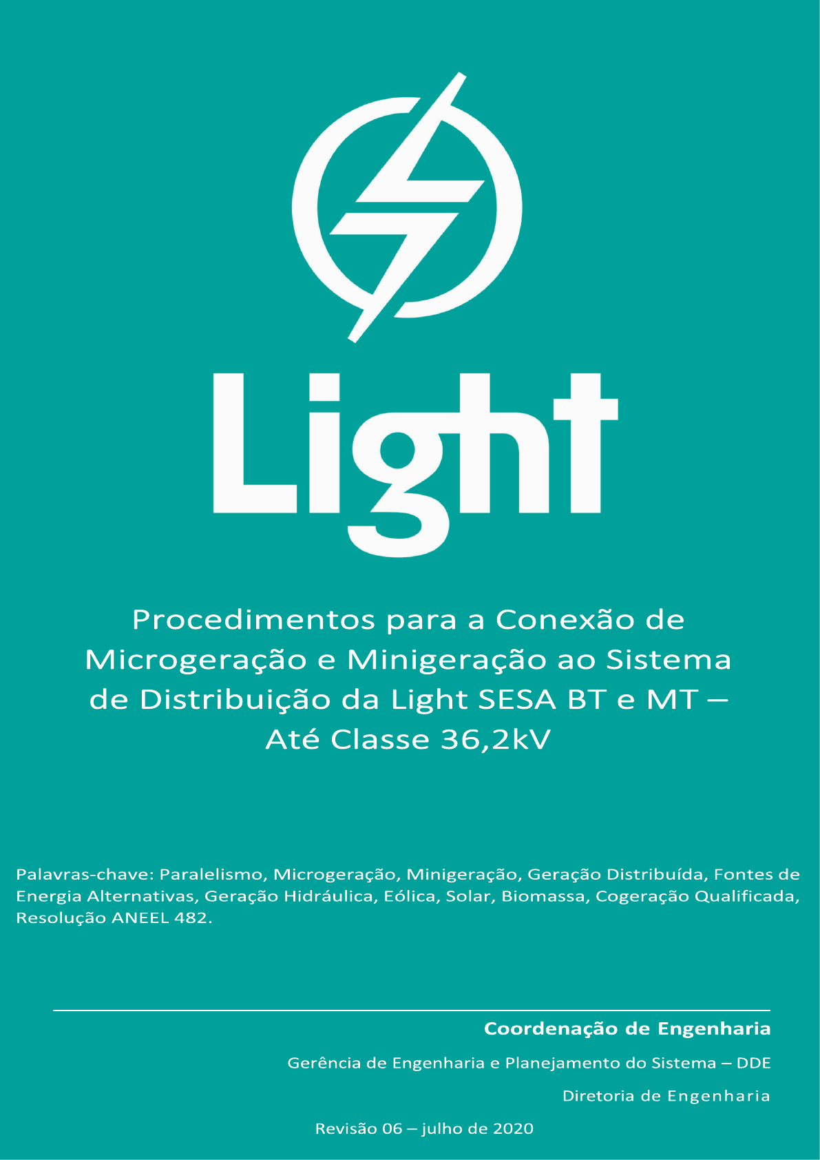 <p>Procedimentos para a Conexão de Microgeração e Minigeração ao Sistema de</p><p>Distribuição da Light SESA – Até Classe 36,2kV</p><p>1</p><p>Procedimentos para a Conexão de Microgeração e Minigeração ao Sistema de</p><p>Distribuição da Light SESA – Até Classe 36,2kV</p><p>2</p><p>1. INTRODUÇÃO ............................................................................................................................................. 5</p><p>1.1. OBJETIVOS ........................................................................................................................................... 5</p><p>1.2. TERMINOLOGIA ................................................................................................................................... 5</p><p>1.3. DISPOSIÇÕES GERAIS ........................................................................................................................... 9</p><p>1.4. DISPOSITIVOS LEGAIS E NORMAS VIGENTES .................................................................................... 10</p><p>2. PROCEDIMENTOS DE ACESSO .................................................................................................................. 11</p><p>2.1. ETAPA DE CONSULTA DE ACESSO ..................................................................................................... 11</p><p>2.2. ETAPA DE INFORMAÇÃO DE ACESSO ................................................................................................ 11</p><p>2.3. ETAPAS DE SOLICITAÇÃO DE ACESSO ................................................................................................ 12</p><p>2.4. SOLICITAÇÃO DE ACESSO .................................................................................................................. 14</p><p>2.4.1. ESTUDO DE CONEXÃO................................................................................................................ 15</p><p>2.5. PARECER DE ACESSO ......................................................................................................................... 15</p><p>2.6. RELACIONAMENTO OPERACIONAL OU ACORDO OPERATIVO .......................................................... 15</p><p>2.7. OBRAS ................................................................................................................................................ 15</p><p>2.7.1. OBRAS DE RESPONSABILIDADE DO ACESSANTE ........................................................................ 16</p><p>2.7.2. OBRAS DE MELHORIA OU REFORÇO NO SISTEMA DE DISTRIBUIÇÃO EXCLUSIVAMENTE PARA</p><p>CONEXÃO MICROGERAÇÃO OU MINIGERAÇÃO ...................................................................................... 16</p><p>2.8. SOLICITAÇÃO DE VISTORIA/COMISSIONAMENTO ............................................................................ 16</p><p>3. CRITÉRIOS E PADRÕES TÉCNICOS ............................................................................................................ 17</p><p>3.1. TENSÃO DE FORNECIMENTO ............................................................................................................ 17</p><p>3.2. CONEXÃO EM BAIXA TENSÃO ........................................................................................................... 17</p><p>3.2.1. CARACTERÍSTICAS DO SISTEMA DE DISTRIBUIÇÃO LIGHT SESA ................................................ 17</p><p>3.2.2. CATEGORIA DE CONEXÃO DA CENTRAL GERADORA ................................................................. 18</p><p>3.2.3. ESQUEMA DE CONEXÃO DE GERADORES POR MEIO DE INVERSORES...................................... 18</p><p>3.2.4. ESQUEMA DE CONEXÃO DE GERADORES QUE NÃO UTILIZAM INVERSORES ........................... 19</p><p>3.2.5. CONEXÃO NO SISTEMA SUBTERRÂNEO RETICULADO ............................................................... 20</p><p>3.2.6. MEDIÇÃO DE FATURAMENTO .................................................................................................... 20</p><p>3.2.7. DISPOSITIVO DE SECCIONAMENTO VISÍVEL (DSV) ..................................................................... 20</p><p>3.2.7.1. CHAVE SECCIONADORA SOB CARGA .......................................................................................... 21</p><p>3.2.7.2. INVÓLUCRO (CAIXA) .................................................................................................................... 22</p><p>3.2.8. SECCIONAMENTO REMOTO ....................................................................................................... 22</p><p>3.2.9. PADRÃO DE ENTRADA ................................................................................................................ 24</p><p>3.3. CONEXÃO EM MÉDIA TENSÃO .......................................................................................................... 24</p><p>3.3.1. CARACTERÍSTICAS DO SISTEMA DE DISTRIBUIÇÃO LIGHT SESA ................................................ 24</p><p>Procedimentos para a Conexão de Microgeração e Minigeração ao Sistema de</p><p>Distribuição da Light SESA – Até Classe 36,2kV</p><p>3</p><p>3.3.2. TRANSFORMADOR DE ACOPLAMENTO ..................................................................................... 24</p><p>3.3.3. DISJUNTOR DE ACOPLAMENTO ................................................................................................. 25</p><p>3.3.4. PROTEÇÕES ................................................................................................................................ 25</p><p>3.3.5. ESQUEMA DE CONEXÃO ............................................................................................................ 26</p><p>3.3.6. ESQUEMA DE SURPEVISÃO DE RETORNO.................................................................................. 27</p><p>3.3.7. MEDIÇÃO DE FATURAMENTO ............................................................