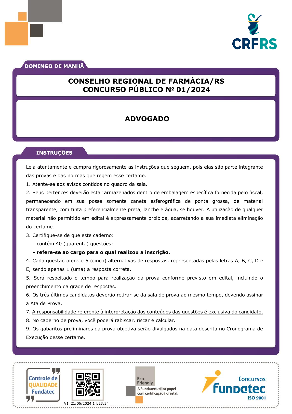<p>pcimarkpci MDAwMDowMDAwOjAwMDA6MDAwMDowMDAwOmZmZmY6YzkxMDpjMzEx:VGh1LCAxNyBPY3QgMjAyNCAxMjozNzozNSAtMDMwMA==</p><p>www.pciconcursos.com.br</p><p>QR</p><p>code</p><p>V1_21/06/2024 14:23:34</p><p>Leia atentamente e cumpra rigorosamente as instruções que seguem, pois elas são parte integrante</p><p>das provas e das normas que regem esse certame.</p><p>1. Atente-se aos avisos contidos no quadro da sala.</p><p>2. Seus pertences deverão estar armazenados dentro de embalagem específica fornecida pelo fiscal,</p><p>permanecendo em sua posse somente caneta esferográfica de ponta grossa, de material</p><p>transparente, com tinta preferencialmente preta, lanche e água, se houver. A utilização de qualquer</p><p>material não permitido em edital é expressamente proibida, acarretando a sua imediata eliminação</p><p>do certame.</p><p>3. Certifique-se de que este caderno:</p><p>- contém 40 (quarenta) questões;</p><p>- refere-se ao cargo para o qual realizou a inscrição.</p><p>4. Cada questão oferece 5 (cinco) alternativas de respostas, representadas pelas letras A, B, C, D e</p><p>E, sendo apenas 1 (uma) a resposta correta.</p><p>5. Será respeitado o tempo para realização da prova conforme previsto em edital, incluindo o</p><p>preenchimento da grade de respostas.</p><p>6. Os três últimos candidatos deverão retirar-se da sala de prova ao mesmo tempo, devendo assinar</p><p>a Ata de Prova.</p><p>7. A responsabilidade referente à interpretação dos conteúdos das questões é exclusiva do candidato.</p><p>8. No caderno de prova, você poderá rabiscar, riscar e calcular.</p><p>9. Os gabaritos preliminares da prova objetiva serão divulgados na data descrita no Cronograma de</p><p>Execução desse certame.</p><p>ADVOGADO</p><p>CONSELHO REGIONAL DE FARMÁCIA/RS</p><p>CONCURSO PÚBLICO Nº 01/2024</p><p>pcimarkpci MDAwMDowMDAwOjAwMDA6MDAwMDowMDAwOmZmZmY6YzkxMDpjMzEx:VGh1LCAxNyBPY3QgMjAyNCAxMjozNzozNSAtMDMwMA==</p><p>www.pciconcursos.com.br</p><p>RASCUNHO</p><p>Utilize esse espaço para anotar suas respostas</p><p>*A anotação neste rascunho NÃO substitui o preenchimento da grade de respostas.</p><p>01 02 03 04 05 06 07 08 09 10</p><p>11 12 13 14 15 16 17 18 19 20</p><p>21 22 23 24 25 26 27 28 29 30</p><p>31 32 33 34 35 36 37 38 39 40</p><p>41 42 43 44 45 46 47 48 49 50</p><p>51 52 53 54 55 56 57 58 59 60</p><p>61 62 63 64 65 66 67 68 69 70</p><p>71 72 73 74 75 76 77 78 79 80</p><p>81 82 83 84 85 86 87 88 89 90</p><p>91 92 93 94 95 96 97 98 99 100</p><p>pcimarkpci MDAwMDowMDAwOjAwMDA6MDAwMDowMDAwOmZmZmY6YzkxMDpjMzEx:VGh1LCAxNyBPY3QgMjAyNCAxMjozNzozNSAtMDMwMA==</p><p>www.pciconcursos.com.br</p><p>868_BASE_NS_DM</p><p>Execução: Fundatec</p><p>NÍVEL SUPERIOR</p><p>10/7/202414:43:40</p><p>LÍNGUA PORTUGUESA</p><p>Apesar de restrições, Philip Morris patrocina evento cultural na parada LGBTQIA+ de SP</p><p>Por Bruno Fonseca e Rafael Custódio</p><p>01</p><p>02</p><p>03</p><p>04</p><p>05</p><p>06</p><p>07</p><p>08</p><p>09</p><p>10</p><p>11</p><p>12</p><p>13</p><p>14</p><p>15</p><p>16</p><p>17</p><p>18</p><p>19</p><p>20</p><p>21</p><p>22</p><p>23</p><p>24</p><p>25</p><p>26</p><p>27</p><p>28</p><p>29</p><p>30</p><p>31</p><p>32</p><p>33</p><p>34</p><p>Num auditório espaçoso, um vídeo institucional da Philip Morris – gigante da indústria do</p><p>tabaco mundial – abre uma roda de conversa sobre empregabilidade para pessoas LGBTQIA+. A</p><p>peça trata do descarte de bitucas e de diversidade. Além disso, entre os palestrantes está uma</p><p>representante da Philip Morris, que fala sobre seleção e ampliação da diversidade no mercado</p><p>de trabalho.</p><p>O evento, no caso é uma palestra da Feira da Diversidade, que é parte da programação</p><p>oficial da Parada do Orgulho LGBTQIA+ de São Paulo. A Philip Morris é patrocinadora da feira. A</p><p>ação, contudo, acontece no limite da legalidade, segundo especialistas. Isso porque uma lei</p><p>federal proíbe, ___ décadas, o patrocínio de atividade cultural ou esportiva por “uso de cigarros,</p><p>cigarrilhas, charutos, cachimbos ou qualquer outro produto fumígeno, derivado ou não do tabaco,</p><p>em recinto coletivo fechado, privado ou público”.</p><p>“É proibida ___ promoção dos produtos, mas aí as empresas encontraram a brecha na lei,</p><p>que é realizar a publicidade institucional. Se a ação acontecer em nome da Philip Morris, isso não</p><p>seria ilegal”, explica a diretora da Aliança de Controle do Tabagismo (ACT), Mônica Andreis. “O</p><p>problema é que são empresas cujo produto é o tabaco, sendo este o carro-chefe delas cigarros</p><p>e produtos fumígenos. Não são como uma grande empresa que tem uma gama de produtos e</p><p>poderia fazer uma ação institucional mais genérica”, avalia Andreis.</p><p>Além de patrocinar a feira, a Philip Morris Brasil é apoiadora da própria Parada, como</p><p>consta em comunicado divulgado para a imprensa. Este é o sétimo ano que a empresa apoia o</p><p>evento. A logo da Philip Morris aparece no site da Parada do Orgulho como um dos parceiros. No</p><p>evento, todavia, a marca da Philip Morris só aparece nos painéis próximos ao auditório onde são</p><p>realizadas as rodas de conversa; nos demais espaços, aparecem apenas os outros patrocinadores</p><p>e apoiadores. Na visão de Andreis, empresas como a Philip Morris utilizam esse tipo de ação</p><p>institucional para melhorar sua imagem, que é prejudicada pelos males ___ saúde causados pelo</p><p>fumo. A associação a eventos que promovem a diversidade, no mês do Orgulho, é uma prática</p><p>comum no mundo do marketing, que foi apelidada de “rainbow washing” (prática em que</p><p>empresas, marcas ou organizações demonstram apoio superficial ou simbólico à comunidade</p><p>LGBTQIA+ para lucrar, sem implementar políticas reais de apoio ou mudança), em alusão ao uso</p><p>do arco-íris, símbolo da comunidade LGBTQIA+.</p><p>No Brasil, a propaganda de cigarros em ve