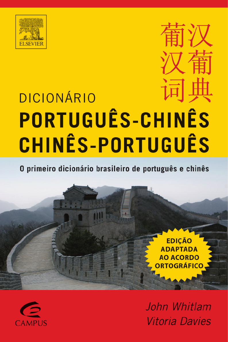<p>Preencha a ficha de cadastro no final deste livro</p><p>e receba gratuitamente informações</p><p>sobre os lançamentos e as promoções da Elsevier.</p><p>Consulte também nosso catálogo</p><p>completo, últimos lançamentos</p><p>e serviços exclusivos no site</p><p>www.elsevier.com.br</p><p>1315-00-caderno zero.indd ii1315-00-caderno zero.indd ii 31/8/2009 14:12:5931/8/2009 14:12:59</p><p>© 2008, Elsevier Editora Ltda.</p><p>Todos os direitos reservados e protegidos pela Lei 9.610 de 19/02/1998. Nenhuma</p><p>parte deste livro, sem autorização prévia por escrito da Editora, poderá ser</p><p>reproduzida ou transmitida sejam quais forem os meios empregados: eletrônicos,</p><p>mecânicos, fotográficos, gravação ou quaisquer outros.</p><p>Colaboradora:</p><p>Sao Heng – Professora da Associação Cultural Chinesa do Rio de Janeiro</p><p>Editoração Eletrônica: Estúdio Castellani</p><p>Revisão Gráfica: Edna Cavalcanti e Carolina Menegassi Leocadio</p><p>Elsevier Editora Ltda.</p><p>Conhecimento sem Fronteiras</p><p>Rua Sete de Setembro, 111 – 16º andar</p><p>20050-006 – Centro – Rio de Janeiro – RJ – Brasil</p><p>Rua Quintana, 753 – 8º andar</p><p>04569-011 – Brooklin – São Paulo – SP</p><p>Serviço de Atendimento ao Cliente</p><p>0800-0265340</p><p>sac@elsevier.com.br</p><p>ISBN 978-85-352-4315-4</p><p>Nota: Muito zelo e técnica foram empregados na edição desta obra. No entanto, podem ocorrer erros</p><p>de digitação, impressão ou dúvida conceitual. Em qualquer das hipóteses, solicitamos a comunicação</p><p>ao nosso Serviço de Atendimento ao Cliente, para que possamos esclarecer ou encaminhar a</p><p>questão.</p><p>Nem a editora nem o autor assumem qualquer responsabilidade por eventuais danos ou perdas a</p><p>pessoas ou bens, originados do uso desta publicação.</p><p>CIP-BRASIL. CATALOGAÇÃO-NA-FONTE</p><p>SINDICATO NACIONAL DOS EDITORES DE LIVROS, RJ</p><p>W592d</p><p>Whitlam, John</p><p>Dicionário português-chinês, chinês-português [recurso eletrônico] : o primeiro dicionário brasileiro de português</p><p>e chinês / John Whitlam, Vitoria Davies. - Rio de Janeiro : Elsevier, 2012.</p><p>recurso digital</p><p>Formato: PDF</p><p>Requisitos do sistema: Adobe Acrobat Reader</p><p>Modo de acesso: World Wide Web</p><p>ISBN 978-85-352-4315-4 (recurso eletrônico)</p><p>1. Lingua chinesa - Dicionarios - Portugues. 2. Língua portuguesa - Dicionários - Chinesa. 3. Livros</p><p>eletrônicos. I. Davies, Vitória. II. Título.</p><p>12-0881.</p><p>CDD: 495.1</p><p>CDU:811.581(038)</p><p>13.02.12 17.02.12 033215</p><p>Os Autores</p><p>JOHN WHITLAM, formado em Letras pela Universidade de Cambridge,</p><p>mestre em Estudos Orientais pela Universidade de Sheffi eld, lexicógrafo sênior</p><p>e coordenador de dicionários bilíngues para várias editoras, entre elas Collins,</p><p>Longman e Oxford, atuou como tradutor da União Europeia ao longo de dez</p><p>anos.</p><p>VITORIA DAVIES, formada em Letras pela PUC-Rio, é especialista em</p><p>Linguística pela Universidade de Londres, onde lecionou no Departamento de</p><p>Português. Atuou como lexicógrafa sênior e coordenadora de vários dicionários,</p><p>entre eles Dicionário Houaiss da Língua Portuguesa, Minidicionário Caldas</p><p>Aulete, Collins Prático e Dicionário Escolar Longman.</p><p>1315-00-caderno zero.indd v1315-00-caderno zero.indd v 31/8/2009 14:12:5931/8/2009 14:12:59</p><p>Sumário</p><p>Introdução xi</p><p>Como usar este dicionário xiii</p><p>Guia de pronúncia do pinyin xv</p><p>Abreviaturas usadas neste dicionário xix</p><p>Dicionário Português – Chinês 1</p><p>Classificadores 95</p><p>Índice de Radicais e Índice de Ideogramas 99</p><p>Dicionário Chinês – Português 117</p><p>1315-00-caderno zero.indd vii1315-00-caderno zero.indd vii 31/8/2009 14:12:5931/8/2009 14:12:59</p><p>Introdução</p><p>Com a crescente importância das relações bilaterais Brasil-China e o</p><p>progressivo interesse pela aprendizagem da língua chinesa no Brasil, a falta</p><p>de um dicionário bilíngue de português e chinês tornava-se cada vez mais</p><p>evidente. Assim, propusemo-nos a suprir essa necessidade com o presente</p><p>dicionário, o primeiro concebido especialmente para brasileiros.</p><p>Na parte português-chinês deste dicionário, as palavras e expressões</p><p>portuguesas foram criteriosamente selecionadas para atender às necessidades</p><p>de principiantes na língua chinesa, assim como daqueles que viajam à</p><p>China, especialmente a negócios. Complementando os verbetes, foram</p><p>acrescentados quadros com explicações detalhadas, no caso das palavras</p><p>cuja tradução para o chinês apresenta maior complexidade, assim como</p><p>quadros temáticos com os dias da semana, as datas, as horas, os meses etc.,</p><p>incluindo exemplos de uso.</p><p>Na parte chinês-português, constam, além das entradas alfabéticas, quadros</p><p>que visam explicar o uso das palavras gramaticais mais frequentes em chinês.</p><p>O leitor também encontrará neste dicionário um índice de ideogramas, que</p><p>facilitará a sua consulta.</p><p>O conteúdo chinês do dicionário aparece tanto na escrita chinesa</p><p>(ideogramas) como na transcrição pinyin (sistema de transcrição aprovado</p><p>pelo governo chinês e hoje usado na maioria dos livros didáticos de chinês</p><p>para estrangeiros).</p><p>Esperamos ter alcançado nosso objetivo de produzir uma obra útil,</p><p>informativa e fácil de ser consultada. Embora ela se destine principalmente</p><p>a brasileiros, acreditamos que poderá ser igualmente útil para outros</p><p>lusófonos, bem como para chineses interessados na língua portuguesa.</p><p>Finalmente, gostaríamos de expressar os nossos agradecimentos à senhora</p><p>Sao Heng pela escrupulosa leitura crítica da obra.</p><p>Os autores,</p><p>Rio de Janeiro, 2007</p><p>1315-00-caderno zero.indd ix1315-00-caderno zero.indd ix 31/