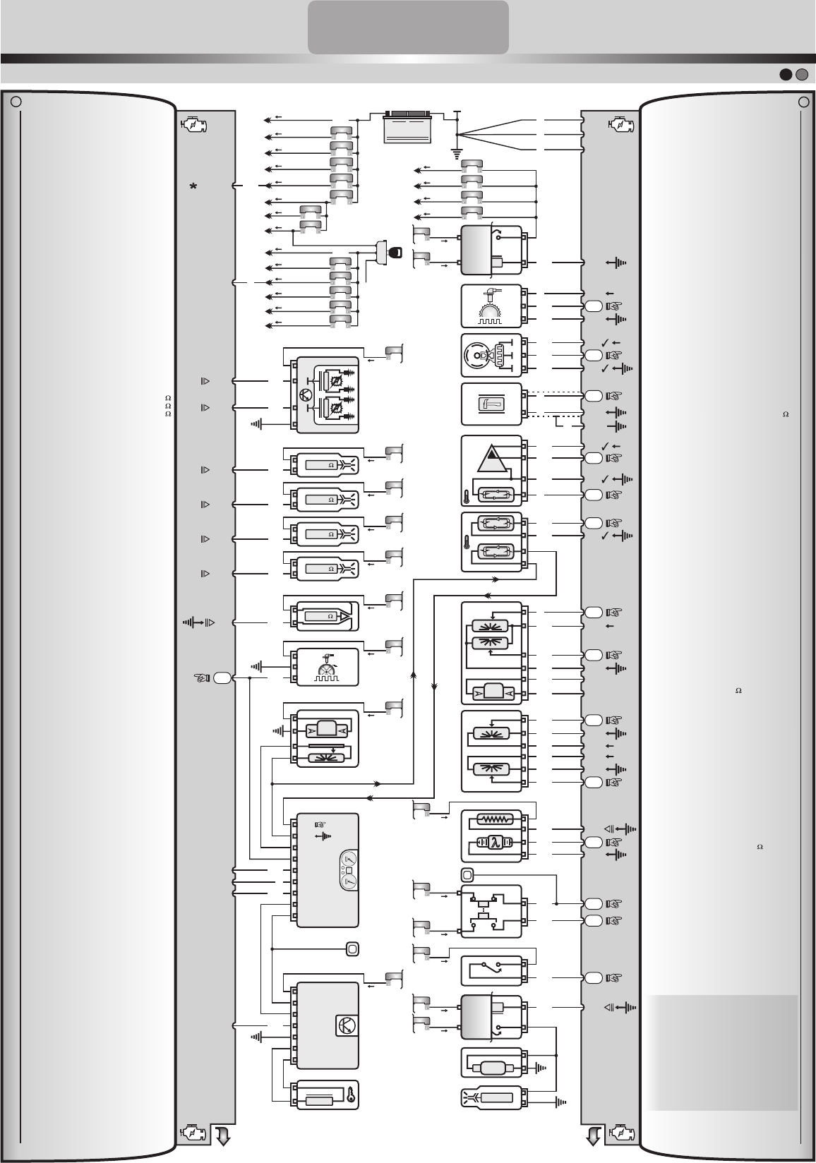 <p>DD DD</p><p>D</p><p>IC</p><p>A</p><p>T</p><p>E</p><p>C</p><p>-</p><p>D</p><p>E</p><p>S</p><p>E</p><p>N</p><p>V</p><p>O</p><p>L</p><p>V</p><p>I</p><p>M</p><p>E</p><p>N</p><p>T</p><p>O</p><p>/</p><p>T</p><p>R</p><p>E</p><p>I</p><p>N</p><p>A</p><p>M</p><p>E</p><p>N</p><p>T</p><p>O</p><p>/</p><p>T</p><p>E</p><p>C</p><p>N</p><p>O</p><p>L</p><p>O</p><p>G</p><p>I</p><p>A</p><p>A</p><p>U</p><p>T</p><p>O</p><p>M</p><p>O</p><p>T</p><p>I</p><p>V</p><p>A</p><p>D</p><p>e</p><p>s</p><p>e</p><p>n</p><p>v</p><p>o</p><p>lv</p><p>id</p><p>o</p><p>e</p><p>P</p><p>r</p><p>o</p><p>d</p><p>u</p><p>z</p><p>id</p><p>o</p><p>p</p><p>e</p><p>la</p><p>D</p><p>I</p><p>C</p><p>A</p><p>T</p><p>E</p><p>C</p><p>(</p><p>d</p><p>iv</p><p>is</p><p>ã</p><p>o</p><p>E</p><p>s</p><p>t</p><p>r</p><p>e</p><p>la</p><p>C</p><p>e</p><p>n</p><p>t</p><p>r</p><p>o</p><p>A</p><p>u</p><p>t</p><p>o</p><p>m</p><p>o</p><p>t</p><p>iv</p><p>o</p><p>L</p><p>t</p><p>d</p><p>a</p><p>)</p><p>-</p><p>P</p><p>r</p><p>o</p><p>ib</p><p>id</p><p>a</p><p>a</p><p>r</p><p>e</p><p>p</p><p>r</p><p>o</p><p>d</p><p>u</p><p>ç</p><p>ã</p><p>o</p><p>-</p><p>c</p><p>a</p><p>s</p><p>o</p><p>h</p><p>a</p><p>ja</p><p>e</p><p>v</p><p>e</p><p>n</p><p>t</p><p>u</p><p>a</p><p>is</p><p>e</p><p>r</p><p>r</p><p>o</p><p>s</p><p>e</p><p>n</p><p>t</p><p>r</p><p>a</p><p>r</p><p>e</p><p>m</p><p>c</p><p>o</p><p>n</p><p>t</p><p>a</p><p>t</p><p>o</p><p>(</p><p>1</p><p>9</p><p>)</p><p>3</p><p>8</p><p>2</p><p>7</p><p>-3</p><p>3</p><p>3</p><p>0</p><p>o</p><p>u</p><p>w</p><p>w</p><p>w</p><p>.d</p><p>ic</p><p>a</p><p>t</p><p>e</p><p>c</p><p>.c</p><p>o</p><p>m</p><p>.b</p><p>r</p><p>INJEÇÃO ELETRÔNICA</p><p>DICATECDICATEC</p><p>1 2PÁGINA</p><p>MODELO DO VEÍCULO SISTEMA ELETRÔNICO</p><p>VW - FOX 1.0 FLEX (2003/07) MARELLI: IAW 4BV</p><p>F40 = 10A</p><p>F27 = 15A</p><p>F30 = 05A</p><p>F37 = 10A</p><p>F38 = 05A</p><p>F42 = 25A</p><p>F26 = 10A</p><p>MF2 = 110A</p><p>F15 = 25A</p><p>-</p><p>-</p><p>Bateria</p><p>+</p><p>+</p><p>12V</p><p>12V</p><p>12V</p><p>12V</p><p>12V</p><p>12V</p><p>12V</p><p>12V</p><p>12V</p><p>12V</p><p>12V</p><p>12V</p><p>dd</p><p>30</p><p>15</p><p>50</p><p>Ch ig</p><p>+30</p><p>+15</p><p>MF2</p><p>110A</p><p>MF3</p><p>MF8</p><p>MF10</p><p>Alimentação da E.C.U. 01 PT</p><p>F15</p><p>25A</p><p>F26</p><p>10A</p><p>F30</p><p>05A</p><p>F37</p><p>10A</p><p>F38</p><p>05A</p><p>F42</p><p>25A</p><p>12V</p><p>12V</p><p>F27</p><p>15A</p><p>F40</p><p>10A</p><p>+12V 29 VM/PTMemória da E.C.U.</p><p>Aterramento da E.C.U.27</p><p>02</p><p>28MR</p><p>MR</p><p>MR</p><p>3</p><p>4</p><p>1</p><p>2</p><p>Pinos 63 e 64: 23 a 25 K</p><p>Pinos 63 e massa: 11,5 a 12,5 K</p><p>Pinos 64 e massa: 11,5 a 12,5 K</p><p>Bobina (Dupla) e Módulo</p><p>de Ignição Incorporado</p><p>1 - 4</p><p>2 - 3</p><p>64</p><p>63</p><p>VD/MR</p><p>VD/BR</p><p>+15</p><p>F26</p><p>12V</p><p>10A</p><p>1</p><p>1</p><p>1</p><p>1</p><p>2</p><p>2</p><p>2</p><p>2</p><p>80</p><p>73</p><p>79</p><p>72</p><p>VI/AZ</p><p>VI/AM</p><p>VI/VD</p><p>VI/MR</p><p>RP</p><p>RP</p><p>RP</p><p>RP</p><p>F44</p><p>F44</p><p>F44</p><p>F44</p><p>12V</p><p>12V</p><p>12V</p><p>12VEletroinjetor 4</p><p>T. Injeção: ms</p><p>Eletroinjetor 3</p><p>T. Injeção: ms</p><p>Eletroinjetor 2</p><p>T. Injeção: ms</p><p>Eletroinjetor 1</p><p>T. Injeção: ms</p><p>13 a 17</p><p>13 a 17</p><p>13 a 17</p><p>13 a 17</p><p>10A</p><p>10A</p><p>10A</p><p>10A</p><p>1</p><p>2</p><p>RP</p><p>F34</p><p>12V</p><p>Eletroválvula do Canister 23 a 28</p><p>24 LI/VM</p><p>10A</p><p>+15</p><p>RP</p><p>F38</p><p>F33</p><p>12V</p><p>12V</p><p>Sensor de Velocidade</p><p>(VSS)</p><p>1</p><p>3</p><p>233 BR/AZ</p><p>2</p><p>4</p><p>1</p><p>3</p><p>B</p><p>Bomba de Combustível</p><p>Pressão: 3,5 a 4,2 bar</p><p>Vazão: 1,5 L/m</p><p>Sensor de Nível do (Tanque)</p><p>de Combustível</p><p>05A</p><p>15A</p><p>TACÔMETRO</p><p>SENSOR TEMP. DA ÁGUA AO PINO 08 DO PAINEL</p><p>AVARIAS</p><p>14</p><p>21</p><p>39</p><p>VD/PT</p><p>MR/PT</p><p>VD</p><p>Painel de Instrumentos</p><p>07</p><p>08</p><p>05</p><p>28</p><p>13</p><p>11</p><p>27</p><p>20</p><p>25</p><p>P</p><p>a</p><p>in</p><p>e</p><p>l</p><p>1</p><p>0</p><p>0</p><p>80</p><p>12</p><p>0</p><p>60</p><p>014</p><p>40</p><p>160</p><p>20</p><p>180</p><p>0</p><p>5</p><p>0</p><p>40</p><p>60</p><p>03</p><p>70</p><p>20</p><p>80</p><p>10</p><p>09</p><p>0</p><p>Conector de Diagnose 07</p><p>41 AZ/VD</p><p>+15</p><p>F38</p><p>12V</p><p>Imobilizador</p><p>A02</p><p>A08</p><p>A06</p><p>A07</p><p>A04</p><p>B01</p><p>B02</p><p>Im</p><p>o</p><p>b</p><p>il</p><p>iz</p><p>a</p><p>d</p><p>o</p><p>r</p><p>Antena da Chave</p><p>Eletrônica</p><p>05A</p><p>F33 = 15A</p><p>F34 = 10A</p><p>F44 = 10A</p><p>F45 = 10A</p><p>12V</p><p>12V</p><p>12V</p><p>12V</p><p>+30</p><p>+15</p><p>12V</p><p>12V</p><p>MF2</p><p>F38</p><p>Relé Principal</p><p>(R03)</p><p>42MR/AM</p><p>85</p><p>30</p><p>86</p><p>87</p><p>RP</p><p>110A</p><p>05A</p><p>F33</p><p>15A</p><p>F34</p><p>10A</p><p>F44</p><p>10A</p><p>F45</p><p>10A</p><p>+5V</p><p>Sinal.: 900 Hz = 900 RPM</p><p>Sensor de Rotação e PMS</p><p>(HALL)</p><p>59</p><p>57</p><p>2</p><p>1</p><p>3</p><p>54</p><p>AM</p><p>PT/BR</p><p>MR/AZ</p><p>+5V53</p><p>76</p><p>VM/VD</p><p>MR/VM</p><p>74 Sinal.: Marcha lenta</p><p>10 a 320 Hz</p><p>Sensor de Fase</p><p>(CMP)</p><p>1</p><p>2</p><p>3</p><p>BR/AM</p><p>1</p><p>2 69</p><p>58</p><p>75</p><p>Aperto: 2 Kgf.m</p><p>4,75 a 5,25 M</p><p>Sensor de Detonação</p><p>(KS)</p><p>CZ</p><p>AZ</p><p>PT</p><p>+5V53</p><p>57</p><p>55</p><p>62</p><p>VM/VD</p><p>MR/BR</p><p>MR/AZ</p><p>BR</p><p>3</p><p>4</p><p>1</p><p>2</p><p>Temperatura</p><p>ºC</p><p>MAP</p><p>Sensor de Pressão Absoluta</p><p>(MAP) Sinal: Marcha lenta</p><p>1,7 a 2,6 vdc</p><p>Sensor de Temperatura do Ar</p><p>(ACT) Sinal: 30ºC = 2,27 vdc</p><p>60ºC = 1,11 vdc</p><p>76</p><p>67</p><p>3</p><p>1</p><p>4</p><p>2</p><p>Temperatura</p><p>ºC Sinal: 60ºC = 1,11 vdc</p><p>100ºC = 0,41 vdc</p><p>Sensor de Temperatura da Água</p><p>(ECT)</p><p>MR/VM</p><p>AZ/VM</p><p>Sinal: Pino 1 e 6 - Fechada: 
