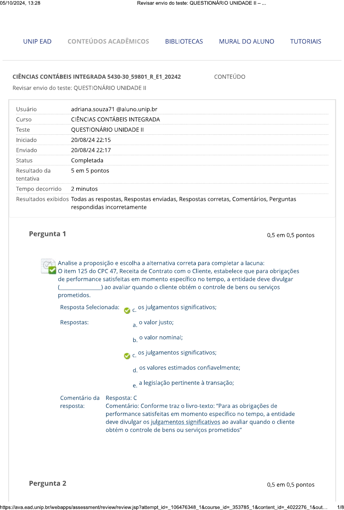 quiz 1 - contabilidd avançada