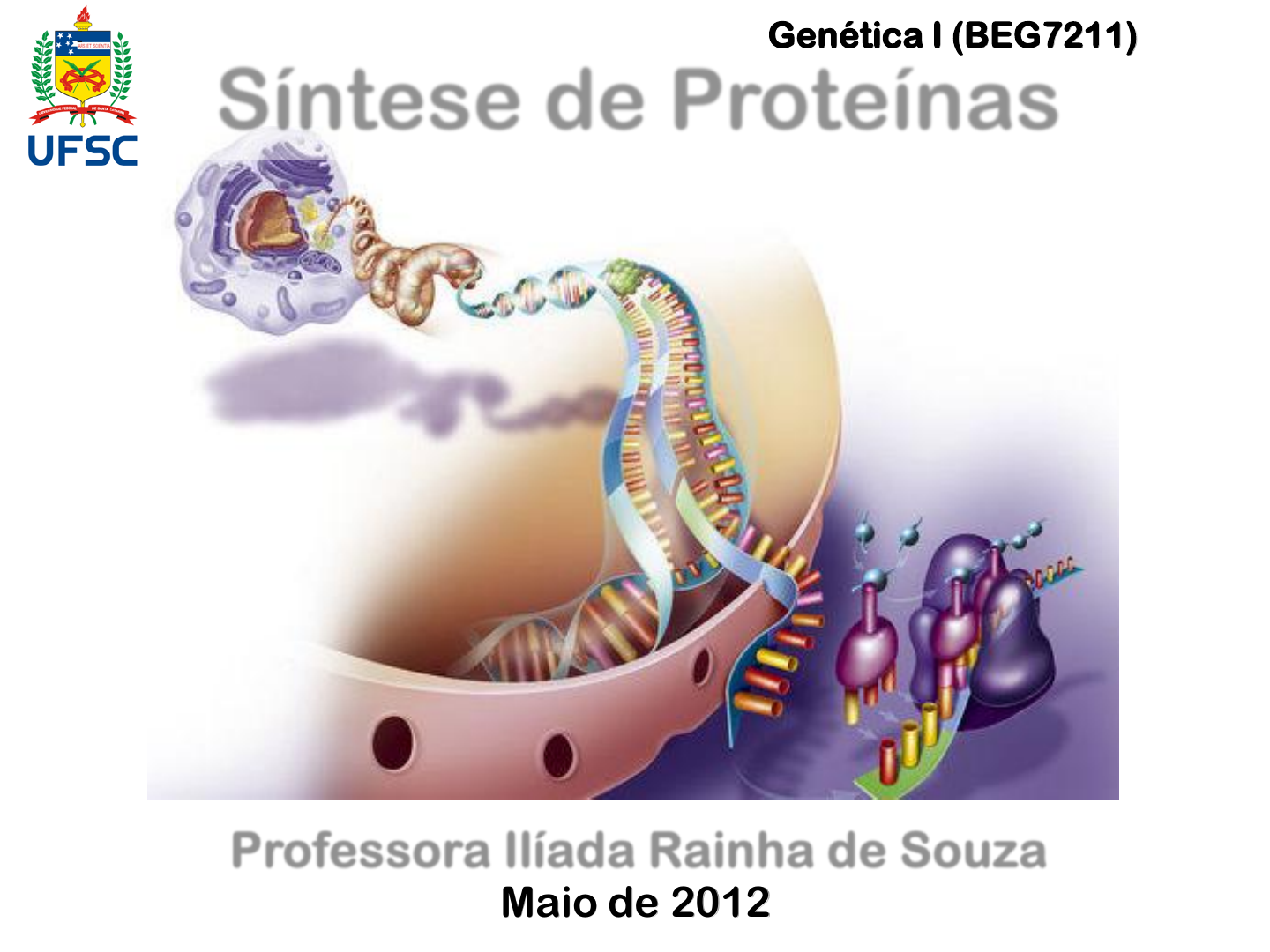 <p>Síntese de Proteínas</p><p>Professora Ilíada Rainha de Souza</p><p>Maio de 2012</p><p>Genética I (BEG7211)</p><p>Dogma central</p><p>Replicação</p><p>Transcrição</p><p>Tradução</p><p>A tradução é um dos processos mais conservados evolutivamente</p><p>e um dos eventos de maior custo energético para a célula. O</p><p>conteúdo protéico da célula é extremamente dinâmico, e as</p><p>proteínas são continuamente sintetizadas e degradadas.</p><p>Nesse processo a informação contida na seqüência de</p><p>nucleotídeos do mRNA é traduzida numa seqüência de</p><p>aminoácidos.</p><p>A maquinaria celular para esse processo inclui o conjunto de</p><p>tRNA, os ribossomos, e o mRNA; também são necessários</p><p>aminoácidos e diversas proteínas específicas.</p><p>A tradução tem os mesmos princípios gerais em eucariotos e</p><p>procariotos, no entanto, existem diferenças importantes. Nos</p><p>procariotos não existe separação geográfica entre transcrição e</p><p>tradução. Existem também diferenças estruturais nos ribossomos.</p><p>Nos eucariotos a separação geográfica entre o núcleo e o</p><p>citoplasma torna os dois processos independentes.</p><p>Watson et al., Biologia Molecular do Gene (2006).</p><p>RNA mensageiro (RNAm)</p><p>mRNA é específico para cada proteína, continuamente</p><p>produzido e degradado.</p><p> Pode ser traduzido por diversas vezes</p><p>A maquinaria celular para esse processo inclui o conjunto</p><p>de tRNA, os ribossomos, e o mRNA; também são</p><p>necessários aminoácidos e diversas proteínas</p><p>específicas.</p><p>Enquanto os tRNA e os ribossomos são reciclados pela</p><p>célula, podendo ser utilizados para a síntese de</p><p>diferentes proteínas, o mRNA é específico para cada</p><p>proteína, sendo continuamente produzido e degradado. O</p><p>mesmo mRNA pode ser traduzido diversas vezes antes</p><p>de ser degradado.</p><p>RNA mensageiro (RNAm)</p><p>W</p><p>atso</p><p>n</p><p>et a</p><p>l., B</p><p>io</p><p>lo</p><p>gia M</p><p>o</p><p>lecu</p><p>lar d</p><p>o</p><p>G</p><p>en</p><p>e (2</p><p>0</p><p>0</p><p>6</p><p>).</p><p>RNAm Procarioto</p><p>Policistrônico</p><p>RNAm Eucarioto</p><p>Monocistrônico</p><p>ORF: open reading frame</p><p>Em procariotos: várias ORF no mesmo RNAm, com</p><p>sobreposição de janelas. Ao finalizar uma tradução, já inicia</p><p>a próxima Tradução acoplada</p><p>Em eucariotos: recrutamento de Ribossomos pela CAP 5’.</p><p>Guaninas metiladas auxiliam na ligação ribossomo com</p><p>RNAm rastreamento.</p><p>A cauda poli-A 3’ aumenta o nível de tradução do</p><p>RNAm, promove reutilização mais eficiente dos</p><p>ribossomos.</p><p>RNA mensageiro (RNAm)</p><p>W</p><p>atso</p><p>n</p><p>et a</p><p>l., B</p><p>io</p><p>lo</p><p>gia M</p><p>o</p><p>lecu</p><p>lar d</p><p>o</p><p>G</p><p>en</p><p>e (2</p><p>0</p><p>0</p><p>6</p><p>).</p><p>RNAm Procarioto</p><p>Policistrônico</p><p>RNAm Eucarioto</p><p>Monocistrônico</p><p>A subunidade menor do ribossomo bacteriano</p><p>reconhece sequências upstream ao AUG</p><p>RNA mensageiro (RNAm)</p><p>W</p><p>atso</p><p>n</p><p>et a</p><p>l., B</p><p>io</p><p>lo</p><p>gia M</p><p>o</p><p>lecu</p><p>lar d</p><p>o</p><p>G</p><p>en</p><p>e (2</p><p>0</p><p>0</p><p>6</p><p>).</p><p>RNAm Procarioto</p><p>Policistrônico</p><p>RNAm Eucarioto</p><p>Monocistrônico</p><p>RNA transportador (RNAt)</p><p>Trevo</p><p>Adapta o aminoácido ao códon</p><p>correspondente no mRNA</p><p>5’-CCA-3’ </p><p>sítio de</p><p>ligação do</p><p>aminoácido</p><p>RNA transportador (RNAt)</p><p>Dobramento em L</p><p>Aminoacil RNAt-transferase</p><p>20 aminoacil-tRNA sintetases</p><p> 1 para cada aminoácido</p><p>Adaptadores do processo</p><p>RNAt liga-se ao</p><p>códon no RNAm</p><p>Aminoacil-tRNA</p><p>sintetase</p><p>Ligação do</p><p>aminoácido ao RNAt</p><p>RNAt liga-se ao</p><p>códon no RNAm</p><p>RESULTADO DA CONEXÃO: AMINOÁCIDO</p><p>É SELECIONADO PELO SEU CÓDON</p><p>Adaptadores do processo</p><p>RNAt liga-se ao</p><p>códon no RNAm</p><p>Aminoacil-tRNA</p><p>sintetase</p><p>Ligação do</p><p>aminoácido ao RNAt</p><p>RNAt liga-se ao</p><p>códon no RNAm</p><p>RESULTADO DA CONEXÃO: AMINOÁCIDO</p><p>É SELECIONADO PELO SEU CÓDON</p><p>Adaptadores do processo</p><p>RNAt liga-se ao</p><p>códon no RNAm</p><p>Aminoacil-tRNA</p><p>sintetase</p><p>Ligação do</p><p>aminoácido ao RNAt</p><p>RNAt liga-se ao</p><p>códon no RNAm</p><p>RESULTADO DA CONEXÃO: AMINOÁCIDO</p><p>É SELECIONADO PELO SEU CÓDON</p><p>Reações do processo</p><p>Reações do processo</p><p>PEPTÍDEO EM</p><p>CRESCIMENTO</p><p>Reações do processo</p><p>Aminoácidos são adicionados ao C-terminal da cadeia</p><p>polipeptídica</p><p>Reações do processo</p><p>Aminoácidos são adicionados ao C-terminal da cadeia</p><p>polipeptídica</p><p>Reações do processo</p><p> A mensagem do RNAm é codificada pelos ribossomos</p><p>• livres no citoplasma ou aderidos na membrana RE;</p><p>Ribossomos</p><p> A mensagem do RNAm é codificada pelos ribossomos</p><p>• livres no citoplasma ou aderidos na membrana RE;</p><p>• formados por aproximadamente 50 proteínas e</p><p>vários RNAs ribossomais (RNAr);</p><p>• 1 erro a cada 10.000 aminoácidos.</p><p>Ribossomos</p><p>As subunidades são montadas no núcleo</p><p>Se unem no citoplasma para realizar a tradução</p><p>Ribossomo</p><p>Procariótico</p><p>Ribossomo</p><p>Eucariótico</p><p>Ribossomo é ribozima</p><p>Ribozima = Enzima</p><p>de ácido nucléico</p><p>RNAr</p><p>proteínas</p><p>Sítio de ligação do RNA no ribossomo</p><p>Ribossomos</p><p>4 sítios de</p><p>ligação</p><p>E: Exit</p><p>P: peptidil-tRNA</p><p>A: aminoacil-tRNA</p><p>Sítio de ligação do mRNA</p><p>Subunidade</p><p>ribossomal</p><p>pequena</p><p>Subunidade</p><p>ribossomal</p><p>grande</p><p>Sítio A Sítio P Sítio E</p><p>2 aminoácidos/segundo em eucariotos</p><p>20 aminoácidos/segundo em procariotos</p><p> Ligação do RNAt;