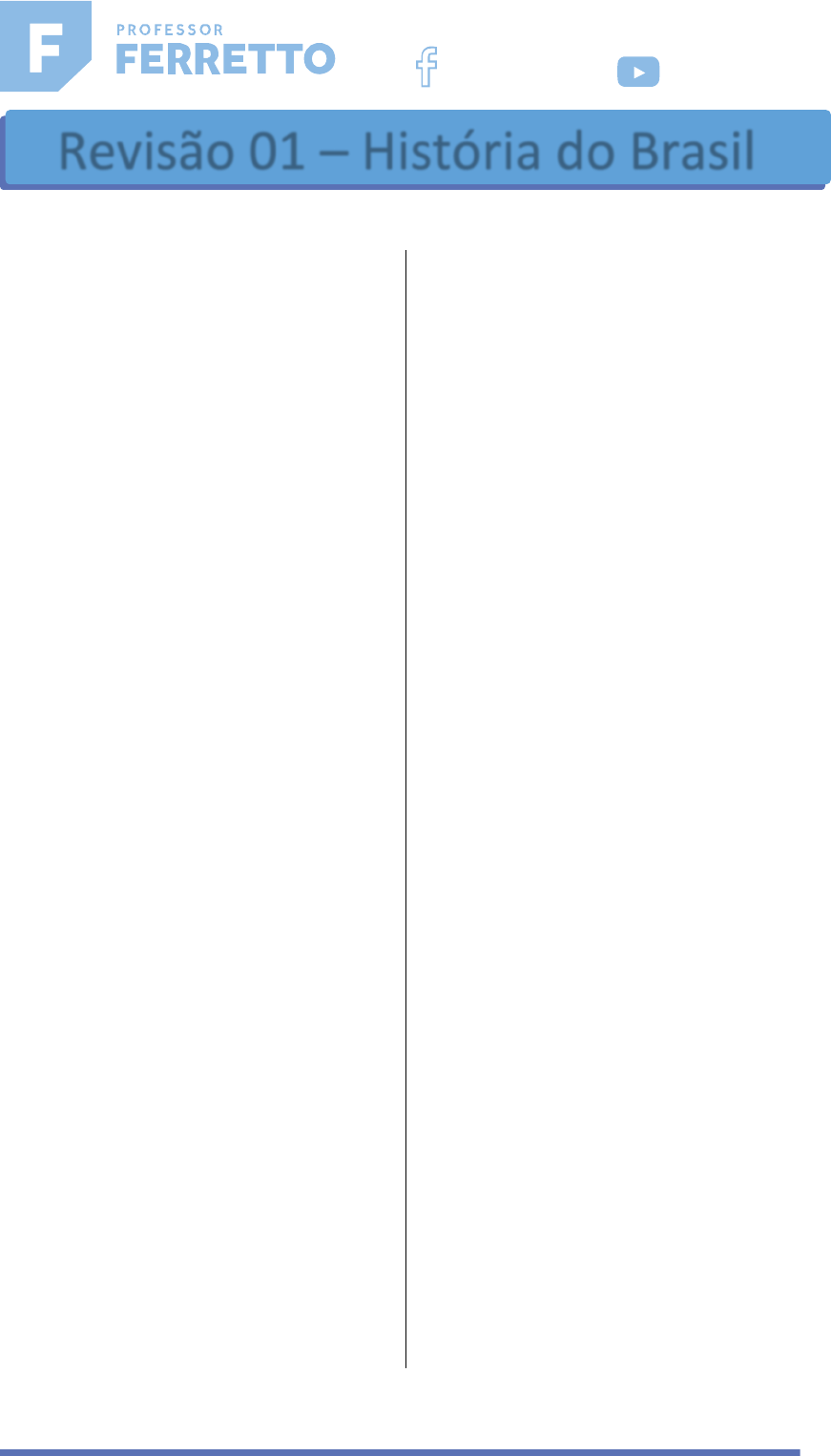 <p>1</p><p>01 - (Fuvest) “Vencida (...) a escabrosidade da Serra do</p><p>Mar, sobretudo na região de Piratininga, a paisagem</p><p>colonial já toma colorido diferente. Não existe aqui</p><p>coesão externa, o equilíbrio aparente (...) dos núcleos</p><p>formados no litoral nordestino (...), onde a riqueza</p><p>agrária pode exprimir-se na sólida habitação do senhor</p><p>de engenho. A sociedade constituída no planalto da</p><p>capitania de Martim Afonso mantém-se, por longo</p><p>tempo ainda, numa situação de instabilidade ou</p><p>imaturidade, que deixa margem ao intercurso dos</p><p>adventícios com a população nativa. Sua vocação</p><p>estaria no caminho, que convida ao movimento: não na</p><p>grande propriedade rural que forma indivíduos</p><p>sedentários.”</p><p>Sérgio Buarque Holanda. Caminhos e fronteiras. 3ª ed. — São</p><p>Paulo: Companhia das Letras, 1994; g. 9.</p><p>O texto propõe uma reflexão sobre</p><p>a) a oposição entre a forma de ocupação colonial</p><p>portuguesa no Nordeste açucareiro e no planalto de</p><p>São Paulo.</p><p>b) a resistência dos nativos aos núcleos de povoamento</p><p>fundados pelo donatário Martim Afonso na região de</p><p>Piratininga.</p><p>c) a formação das grandes fazendas cafeicultoras no</p><p>Centro-Sul da América Portuguesa com base na mão de</p><p>obra indígena.</p><p>d) a barreira intransponível imposta pela Serra do Mar</p><p>aos colonizadores que buscavam avançar em direção</p><p>ao interior do território.</p><p>e) a oposição entre a casa grande e a senzala nos</p><p>engenhos de açúcar do Nordeste na história do Brasil</p><p>colonial.</p><p>02 - (Esa) Em outubro de 2021, a cidade de Recife-PE</p><p>foi selecionada para abrigar a nova Escola de Formação</p><p>e Graduação de Sargentos de Carreira do Exército. Na</p><p>mesma região, ocorreu o movimento conhecido como</p><p>Insurreição Pernambucana (1645 – 1654) que teve as</p><p>Batalhas de Guararapes como ponto alto. O órgão que</p><p>financiou a invasão holandesa no Brasil foi o(a):</p><p>a) Associação comercial holandesa de Maurisstad.</p><p>b) Ducado holandês de Amsterdan.</p><p>c) Instituto de comércio e desenvolvimento Brasil-</p><p>Holanda.</p><p>d) Reino holandês de Nassau.</p><p>e) Companhia holandesa das Índias Ocidentais.</p><p>03 - (Uece) São características do sistema colonial</p><p>implantado no Brasil por Portugal</p><p>a) a exploração privada do território através da</p><p>manutenção do sistema de Capitanias Hereditárias até</p><p>a elevação do Brasil ao Reino Unido de Portugal e</p><p>Algarves em 1810.</p><p>b) atividade econômica baseada na exploração de</p><p>riquezas voltada para o mercado externo por meio de</p><p>utilização mão de obra escravizada.</p><p>c) organização da exploração da terra</p><p>majoritariamente em pequenas propriedades rurais</p><p>com produção de subsistência e mão de obra familiar.</p><p>d) a exploração das atividades econômicas sob o</p><p>encargo exclusivamente dos esforços da Coroa</p><p>Portuguesa ou da Companhia das Índias Ocidentais.</p><p>www.professorferretto.com.br</p><p>ProfessorFerretto ProfessorFerretto</p><p>Revisão 01 – História do Brasil</p><p>2</p><p>04 - (Fuvest) “Os vadios são o ódio de todas as nações</p><p>civilizadas, e contra eles se tem muitas vezes legislado;</p><p>porém as regras comuns relativas a este ponto não</p><p>podem ser aplicáveis ao território de Minas; porque</p><p>estes vadios, que em outra parte seriam prejudiciais,</p><p>são ali úteis”.</p><p>Desembargador J.J. Teixeira Coelho. “Instruções para o governo da</p><p>capitania de Minas Gerais (1780)”. Apud SOUZA, Laura de Mello e.</p><p>Os desclassificados do ouro. A pobreza mineira no século XVIII. Rio</p><p>de Janeiro: Graal, 1982.</p><p>A partir da leitura do excerto, que aborda aspectos da</p><p>sociedade mineira do século XVIII, é correto afirmar</p><p>que, nessa sociedade,</p><p>a) os vadios viviam na ociosidade, o que provocava</p><p>preocupações constantes nos administradores</p><p>coloniais.</p><p>b) a legislação colonial limitava a circulação dos vadios</p><p>pela colônia, impedindo-os de ingressar na região das</p><p>Minas.</p><p>c) os vadios participavam de atividades</p><p>complementares à mineração, o que justificava a</p><p>tolerância das autoridades locais.</p><p>d) os contratadores preferiam engajar vadios no</p><p>trabalho nas minas, gerando revoltas dos</p><p>trabalhadores especializados.</p><p>e) os vadios participavam ativamente do contrabando</p><p>de ouro, o que motivava sucessivas ações policiais</p><p>repressivas.</p><p>05 - (Fuvest) “Pelos portos brasileiros entraram cerca</p><p>de 38% do total de escravos que vieram para a América</p><p>Até meados do século XVIII, Costa da Mina e Angola</p><p>eram as principais fontes abastecedoras de Salvador,</p><p>Recife, Rio de Janeiro e São Luís (...). Se, desde o início</p><p>da colonização, Bahia e Pernambuco concentraram</p><p>grandes volumes de importação de africanos, a partir</p><p>do início das atividades mineradoras no Centro-Sul do</p><p>país, o Rio de Janeiro ampliou seu peso (...). Em todas</p><p>as estimativas numéricas do tráfico para o Brasil</p><p>emerge a relação comercial privilegiada do Rio de</p><p>Janeiro com os portos de Angola entre a segunda</p><p>metade do século XVIII e a primeira metade do XIX.”</p><p>Jaime Rodrigues. De costa a Costa. São Paulo: Companhia das</p><p>Letras, 2005, p. 29.</p><p>Sobre as razões das mudanças apontadas pelo texto, é</p><p>correto afirmar:</p><p>a) Os movimentos abolicionistas frearam o Tráfico de</p><p>escravizados para o Norte e Nordeste da América</p><p>portuguesa em meados do século XVIII.</p><p>b) O índice de escravizados trazidos a portos brasileiros</p><p>revela o menor peso da escravidão no Brasil</p><p>relativamente ao conjunto da América.</p><p>c) A crescente rele