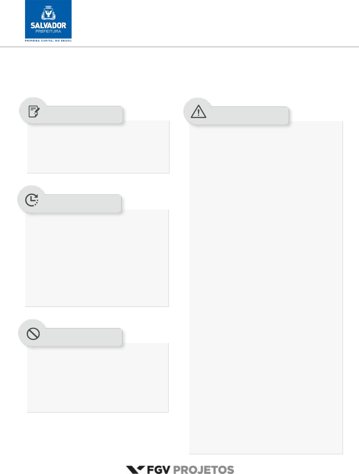 <p>Prefeitura de Salvador</p><p>Concurso Público 2017 TARDE</p><p>Nível Médio completo</p><p>Técnico de Nível Médio I - Atendimento</p><p>Tipo 1 – BRANCA</p><p>Além deste caderno de prova, contendo sessenta</p><p>questões objetivas, você receberá do fiscal de sala:</p><p>• uma folha destinada às respostas das questões</p><p>objetivas.</p><p>•</p><p>• As questões objetivas têm cinco alternativas de</p><p>resposta (A, B, C, D, E) e somente uma delas está</p><p>correta;</p><p>• Verifique se seu caderno está completo, sem</p><p>repetição de questões ou falhas. Caso contrário,</p><p>notifique imediatamente o fiscal da sala, para que</p><p>sejam tomadas as devidas providências;</p><p>• Confira seus dados pessoais, especialmente nome,</p><p>número de inscrição e documento de identidade e</p><p>leia atentamente as instruções para preencher a</p><p>folha de respostas;</p><p>• Use somente caneta esferográfica, em material</p><p>transparente, com tinta preta ou azul;</p><p>• Assine seu nome apenas nos espaços reservados;</p><p>• Confira seu cargo, cor e tipo do caderno de</p><p>provas. Caso tenha recebido caderno de cargo ou</p><p>cor ou tipo DIFERENTE do impresso em sua folha</p><p>de respostas, o fiscal deve ser OBRIGATORIAMENTE</p><p>informado para o devido registro na ata da sala;</p><p>• O preenchimento das respostas da prova objetiva</p><p>é de sua responsabilidade e não será permitida a</p><p>troca de folha de respostas em caso de erro;</p><p>• Reserve tempo suficiente para o preenchimento</p><p>de suas respostas. Para fins de avaliação, serão</p><p>levadas em consideração apenas as marcações</p><p>realizadas na folha de respostas da prova objetiva,</p><p>não sendo permitido anotar informações relativas</p><p>às respostas em qualquer outro meio que não seja</p><p>o caderno de provas;</p><p>• A FGV coletará as impressões digitais dos</p><p>candidatos na folha de respostas;</p><p>• Durante a realização das provas, os candidatos</p><p>serão submetidos ao sistema de detecção de</p><p>metais quando do ingresso e da saída de</p><p>sanitários.</p><p>• 4 horas é o tempo disponível para a realização</p><p>da prova, já incluído o tempo para a marcação da</p><p>folha de respostas da prova objetiva;</p><p>• 1 hora após o início da prova é possível retirar-</p><p>se da sala, sem levar o caderno de provas;</p><p>• 1 hora antes do término do período de prova é</p><p>possível retirar-se da sala levando o caderno de</p><p>provas.</p><p>• Qualquer tipo de comunicação entre os</p><p>candidatos durante a aplicação da prova;</p><p>• Levantar da cadeira sem autorização do fiscal de</p><p>sala;</p><p>• Usar o sanitário ao término da prova, após</p><p>deixar a sala.</p><p>SUA PROVA</p><p>TEMPO</p><p>NÃO SERÁ PERMITIDO</p><p>INFORMAÇÕES GERAIS</p><p>www.pciconcursos.com.br</p><p>www.pciconcursos.com.br</p><p>Prefeitura de Salvador 2017 FGV – Projetos</p><p>Técnico de Nível Médio I - Atendimento Tipo 1 – Cor BRANCA – Página 3</p><p>Língua Portuguesa</p><p>TEXTO 1</p><p>O chamado “fumante passivo” é aquele indivíduo que não fuma,</p><p>mas que acaba respirando a fumaça dos cigarros fumados ao seu</p><p>redor. Até hoje, discutem-se muito os efeitos do fumo passivo,</p><p>mas uma coisa é certa: quem não fuma não é obrigado a respirar</p><p>a fumaça dos outros.</p><p>O fumo passivo é um problema de saúde pública em todos os</p><p>países do mundo. Na Europa, estima-se que 70% das pessoas</p><p>estão expostas à fumaça “de segunda mão”, enquanto, nos</p><p>Estados Unidos, 88% dos não fumantes acabam fumando</p><p>passivamente. A Sociedade do Câncer da Nova Zelândia informa</p><p>que o fumo passivo é a terceira entre as principais causas de</p><p>morte no país, depois do fumo ativo e do consumo de álcool.</p><p>(Disponível em www.terra.com.br. Acesso em 28 de agosto de 2016)</p><p>1</p><p>“O chamado “fumante passivo” é aquele indivíduo que não fuma,</p><p>mas que acaba respirando a fumaça dos cigarros fumados ao seu</p><p>redor”.</p><p>Essa frase do texto 1 apresenta a definição do termo ”fumante</p><p>passivo”, o que também ocorre na seguinte frase:</p><p>(A) “Cozinhar é como amar. Entregue-se ou caia fora”.</p><p>(B) “Um avião é o lugar perfeito para fazer dieta”.</p><p>(C) “Cada parto é um parto diferente dos demais”.</p><p>(D) “As ideias são como filhos errantes: aparecem quando menos</p><p>se espera”.</p><p>(E) “O estilo é um modo muito simples de dizer coisas</p><p>complicadas”.</p><p>2</p><p>No texto 1 aparecem dois termos com aspas: “fumante passivo” e</p><p>“de segunda mão”.</p><p>Sobre o emprego das aspas nesses dois casos, assinale a</p><p>afirmativa correta.</p><p>(A) As aspas são empregadas pela mesma razão nos dois casos.</p><p>(B) No primeiro caso, as aspas são empregadas para indicar um</p><p>termo com um novo sentido.</p><p>(C) No segundo caso, as aspas são empregadas para indicar o uso</p><p>de gíria.</p><p>(D) No primeiro caso, as aspas são empregadas para realçar</p><p>ironicamente uma expressão.</p><p>(E) No segundo caso, as aspas indicam uma citação.</p><p>3</p><p>“O chamado ´fumante passivo´ é aquele indivíduo que não fuma,</p><p>mas que acaba respirando a fumaça dos cigarros fumados ao seu</p><p>redor”.</p><p>Nesse segmento do texto 1, a expressão “acaba respirando”</p><p>apresenta uma ideia de</p><p>(A) condição.</p><p>(B) consequência.</p><p>(C) finalidade.</p><p>(D) causa.</p><p>(E) meio.</p><p>4</p><p>Há duas ocorrências do pronome se no texto 1: “discutem-se” e</p><p>“estima-se”.</p><p>Sobre esse emprego, assinale a afirmativa correta.</p><p>(A) Nos dois casos trata-se de pronome apassivador.</p><p>(B) Nos dois casos trata-se de marca de indeterminação do</p><p>sujeito.</p><p>(C) No primeiro caso trata-se de pronome reflexivo.</p><p>(D) No segu
