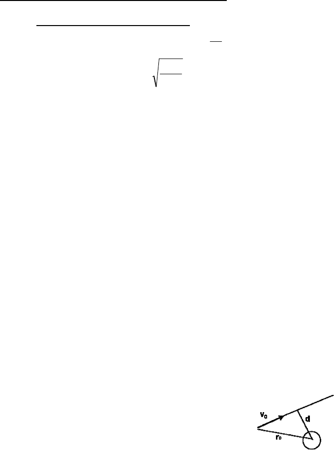 <p>1</p><p>COMPLEMENTOS DE MECÂNICA CLÁSSICA</p><p>3a LISTA DE EXERCÍCIOS-2014</p><p>1) Uma partícula de massa m se move sob a ação de uma força central</p><p>2r</p><p>k</p><p>F −= com k>0. No ponto P, que</p><p>dista a da origem, sua velocidade é perpendicular a</p><p>→</p><p>r e vale v0=</p><p>ma2</p><p>k</p><p>.</p><p>a) Esboce o gráfico do potencial efetivo em função de r, indicando o ponto P.</p><p>b) Qual é a energia cinética da partícula no ponto de máxima aproximação da origem?</p><p>c) O movimento está contido numa região finita do espaço? Justifique.</p><p>d) Calcule a frequência de pequenas oscilações radiais em torno do ponto de mínimo e compare com a</p><p>frequência de revolução (movimento circular). O que se pode concluir sobre as órbitas?</p><p>2) Uma partícula de massa m se move sob a ação de uma força central cujo potencial é dado por V(r)= Kr</p><p>4</p><p>,</p><p>com K>0.</p><p>a) Para que valores da energia e do momento angular a órbita será um círculo de raio a em torno da origem?</p><p>b) Qual será o período do movimento circular?</p><p>c) Se a partícula for ligeiramente afastada dessa órbita, qual será o período de pequenas oscilações em torno</p><p>de a? A órbita será fechada?</p><p>3) Considere um corpo de massa m sujeito à força gravitacional terrestre. O corpo é lançado de um</p><p>ponto que dista 0r</p><p>r</p><p>do centro da Terra com uma velocidade v0 cuja direção é perpendicular à linha que</p><p>liga o corpo ao centro da Terra. Admita que o potencial gravitacional seja nulo no infinito, isto é</p><p>V(∞)=0.</p><p>a) Determine a dependência radial do potencial efetivo Vef (r), em função de MT, G, m, v0 e r0 e a partir</p><p>de Vef (r) determine uma relação envolvendo v0 e r0 para que a órbita seja circular.</p><p>b) Determine uma relação envolvendo v0 e r0 para que a órbita seja parabólica.</p><p>c) Determine uma relação envolvendo v0 e r0 para que a órbita seja elíptica.</p><p>d) Determine uma relação envolvendo v0 e r0 para que a órbita seja hiperbólica.</p><p>e) Esboce o gráfico de Vef (r) indicando cada um dos casos acima.</p><p>4) Descobre-se um asteroide que está a uma distância r0=2,0 x 109 m da Terra com uma</p><p>velocidade de v0=1,0 x 104 m/s. A distância entre a trajetória</p><p>do asteróide nesse ponto e o centro da Terra é d=3 x 107m.</p><p>A que distância mínima do centro da Terra passará o asteroide?</p><p>5) Observa-se um cometa a uma distância de 1,00 x 10</p><p>8</p><p>km do Sol, viajando em direção a ele à velocidade de</p><p>51,6 km por segundo, num ângulo de 45</p><p>0</p><p>em relação ao raio do Sol. Escreva a equação para a órbita do</p><p>cometa, em coordenadas polares, com a origem no Sol e o eixo x passando pela posição em que o cometa foi</p><p>observado. Considere a massa solar como 2,00 x 10</p><p>30</p><p>kg.</p><p>6) A distância de periélio (mais próxima) ao Sol do planeta Marte é de 2,06 x 10</p><p>8</p><p>km, e a distância do</p><p>afélio(máxima) é de 2,485 x 10</p><p>8</p><p>km. Suponha que a Terra se mova no mesmo plano em círculo de raio 1,49</p><p>x 108 km e um período de um ano. A partir desses dados, determine a velocidade de Marte no periélio.</p><p>Suponha que uma nave espacial Mariner seja lançada de forma que seu periélio esteja na órbita terrestre e o</p><p>seu afélio, no periélio de Marte. Determine a velocidade do Mariner relativa a Marte, no ponto onde eles se</p><p>encontram. Qual deles tem a velocidade maior? Qual deles tem a maior velocidade angular durante o</p><p>período de vôo?</p><p>2</p><p>7) Considere uma partícula de massa m sujeita a uma força rkF</p><p>rr</p><p>−= , k>0(oscilador harmônico isotrópico).</p><p>O momento angular da partícula é L.</p><p>a) Determine a energia potencial.</p><p>b) Mostre que o menor valor da energia para essa partícula é:</p><p>2</p><p>1</p><p>2</p><p>min</p><p>m</p><p>kL</p><p>E</p><p>−</p><p></p><p></p><p></p><p></p><p></p><p></p><p>= .</p><p>c) Mostre que para uma dada energia total E>Emin a trajetória está situada dentro de um anel r1 =</p><p>as órbitas têm a forma: ( )[ ]0cosA</p><p>r</p><p>1</p><p>θ−θβ= . Expresse β em termos de K, E, L e a massa m da partícula</p><p>incidente. Mostre que a seção de choque para espalhamento através de um ângulo entre Θ e Θ + dΘ, para</p><p>partículas submetidas a essa força, é:</p><p>( )</p><p>Θ</p><p>Θ−πΘ</p><p>Θ−ππ</p><p>=σ d</p><p>2mv</p><p>K2</p><p>d</p><p>222</p><p>0</p><p>9) Considere que a órbita da Terra em torno do Sol seja circular e que a massa do Sol subitamente se reduza</p><p>à metade. Qual será, nesse caso, a órbita da Terra? A Terra escapará do sistema solar?</p><p>10) De acordo com a teoria da força nuclear de Yukawa, a força entre um nêutron e um próton tem o</p><p>seguinte potencial: 0K,</p><p>r</p><p>Ke</p><p>)r(V</p><p>r</p><p>>−=</p><p>α−</p><p>.</p><p>a) Determine a força, comparando-a com a força da lei do inverso do quadrado da distância.</p><p>b) Discuta os tipos de movimento que podem ocorrer, caso uma partícula de massa m se desloque sob a ação</p><p>de tal força.</p><p>c) Determine L e E para o movimento em círculo de raio a. Determine o período do movimento circular e o</p><p>período de pequenas oscilações radiais.</p>
