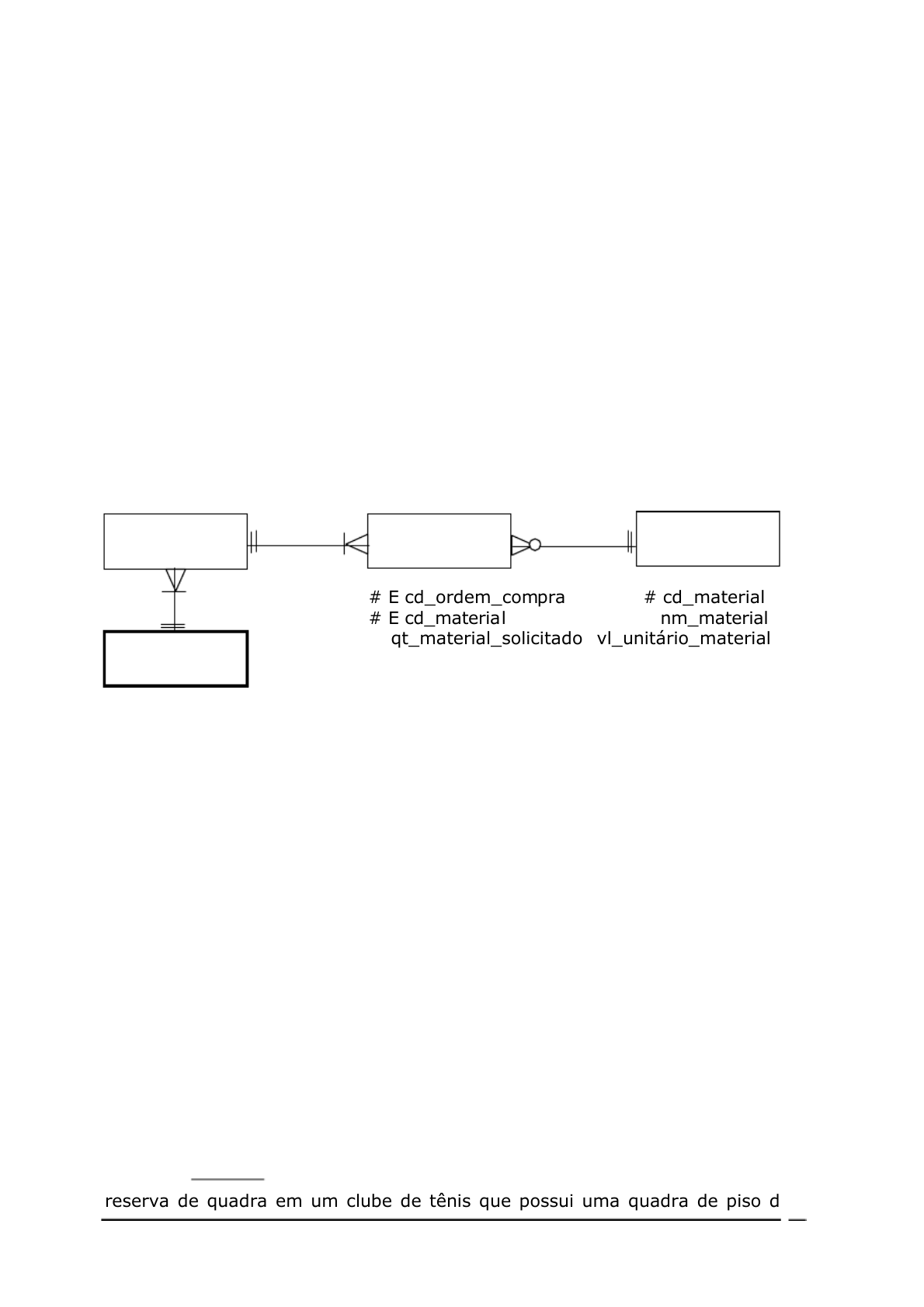 <p>7/9/2019 APOSTILA_BDI_2011</p><p>http://slidepdf.com/reader/full/apostilabdi2011 93/154</p><p>B A N C O D E D A D O S I F A T E C D E P R A I A G R A N D E</p><p>93</p><p>Uma tupla está na 3FN, se atender a 2FN, e seus atributos não</p><p>apresentarem dependência transitiva da chave.</p><p>Um atributo apresenta dependência transitiva da chave quando ele é</p><p>identificado por outro atributo não chave e este por sua vez é identificado pela</p><p>chave. Isso quer dizer que a identificação do atributo não chave pela chaveocorre de maneira indireta, através de outro atributo não chave.</p><p>No exemplo que está sendo discutido. O objeto ORDEM COMPRA está fora</p><p>da 3FN, uma vez que nm_fornecedor e cd_insc_estadual_fornecedor são</p><p>atributos identificados por cd_fornecedor e não pelo atributo #</p><p>cd_ordem_compra que é a chave da instância. Esta situação se constitui em</p><p>outra anormalidade que também precisa ser corrigida. Os atributos que são</p><p>identificados transitivãmente formarão outro objeto que terá como chave o</p><p>atributo que os identifica.</p><p>O novo relacionamento formado é do tipo N: 1 e cd_fornecedor passa a ser</p><p>atributo estrangeiro no objeto ORDEM COMPRA. A nova situação será:</p><p># E cd_ordem_compra # cd_material</p><p># E cd_material nm_material</p><p>qt_material_solicitado vl_unitário_material</p><p>#cd_fornecedor</p><p>nm_fornecedor</p><p>cd_inscrição_estadual_fornecedor</p><p>Nesta altura todos os objetos estão normalizados, atendem as três Formas</p><p>Normais, e o modelo de dados está estabilizado.</p><p>OUTRAS FORMAS NORMAIS</p><p>Na maioria dos bancos de dados a decomposição até a 3ª Forma Normal é</p><p>suficiente. Porém na literatura surgem outras formas normais:</p><p>FORMA NORMAL BOYCE CODD (BCNF)</p><p>Criada em 1974 para tratar tipos de anomalias não tratadas pela 3FN.</p><p>É usada em normalização de banco de dados que consistem em uma versão mais</p><p>rigorosa da 3FN. Um objeto está na forma BCNF se para cada uma de suas</p><p>dependências funcionais X Y, X é uma super chave de Y, ou seja X é uma</p><p>chave candidata. Somente em casos raros podemos ter um objeto na 3FN que</p><p>não atinja os requisitos da forma BCNF.</p><p>Exemplo: Cada linha da figura acima representa uma representa uma</p><p>reserva de quadra em um clube de tênis que possui uma quadra de piso duro</p><p>ORDEM</p><p>COMPRA</p><p>ITEM ORDEM</p><p>COMPRA MATERIAL</p><p>FORNECEDOR</p><p>#cd_ordem_compradt_emissão_ordem_compra</p><p>E cd_fornecedor</p>