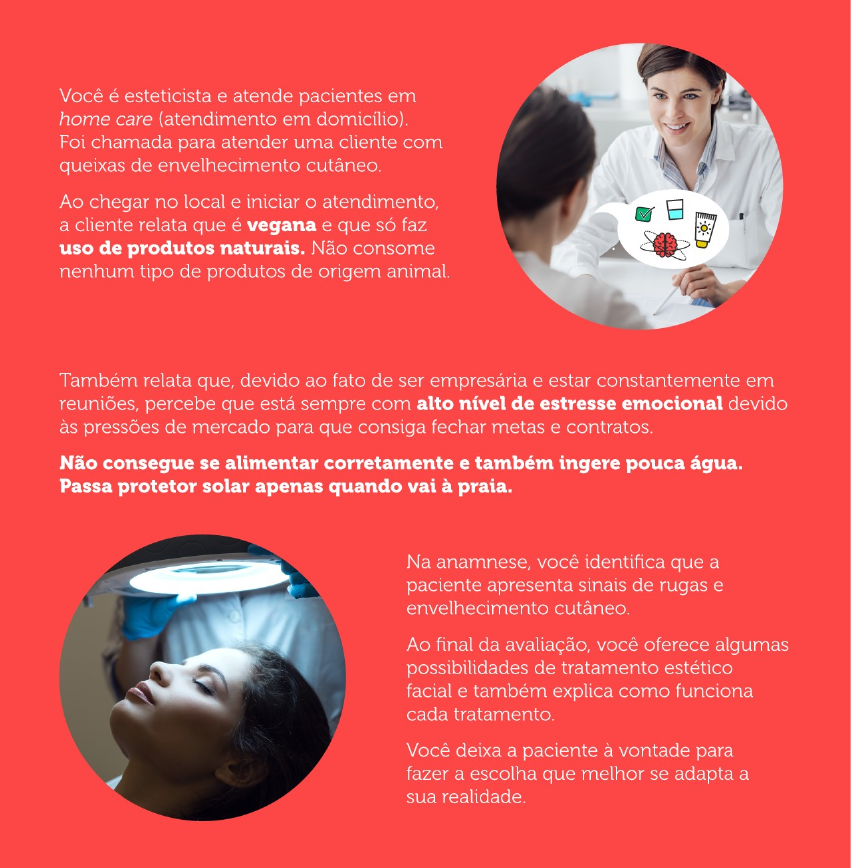 <p>Desafio</p><p>O desequilíbrio no consumo de alimentos e o desequilíbrio hormonal causado por estresse, baixo consumo de água, falta de sono, carga excessiva de trabalho, exposição ao sol sem proteção, entre outros fatores, podem gerar desequilíbrios na pele, causando alterações de oxidação, com envelhecimento cutâneo precoce.</p><p>Os alimentos para a beleza são classificados em, pelo menos, quatro categorias diferentes: nutracêuticos, nutricosméticos, suplementos alimentares e fitoterápicos. Estes são usados como forma de melhorar os aspectos da pele como falta de proteção solar, hidratação, flacidez, envelhecimento, rugas, entre outros problemas estéticos.</p><p>Com base nisso, imagine a seguinte situação:</p><p></p><p>Com base na situação apresentada, responda:</p><p>a) Quais fatores podem estar causando os problemas de envelhecimento cutâneo na cliente?</p><p>b) Em relação aos diferentes tipos de compostos que existem no mercado como opção para melhorar a beleza de dentro para fora, descreva qual tipo de produto para ingestão oral ela pode consumir para melhorar a condição estética. Justifique sua escolha.</p><p>Sua resposta</p><p>Os principais fatores que pode estar causando os problemas de envelhecimento cutâneo é a má alimentação, estresse, a poluição também impacta, assim como a pouca hidratação informada, além disso a paciente não utiliza proteção solar diariamente. Quanto aos compostos existentes no mercado, podemos descrever o colágeno hidrolisado. O colágeno é uma proteína essencial para a saúde da pele, cabelos e unhas, e sua ingestão pode ajudar a melhorar a elasticidade e firmeza da pele, reduzindo os sinais de envelhecimento.</p><p>Enviado em: 21/10/2024 14:01</p><p>Padrão de resposta esperado</p><p>a) Os problemas de envelhecimento cutâneo podem ser causados por falta de hidratação (pouco consumo de água), exposição ao sol sem proteção adequada e constante estresse emocional. Estes podem gerar radicais livres que favorecem o processo de envelhecimento.</p><p>b) Considerando que a paciente é vegana, é importante que ela faça uso de compostos fitoterápicos, pois são oriundos de fontes vegetais. Estes são regulamentados pela ANVISA, portanto, são seguros para o consumo, desde que devidamente orientados por um profissional habilitado.</p><p>image1.png</p>