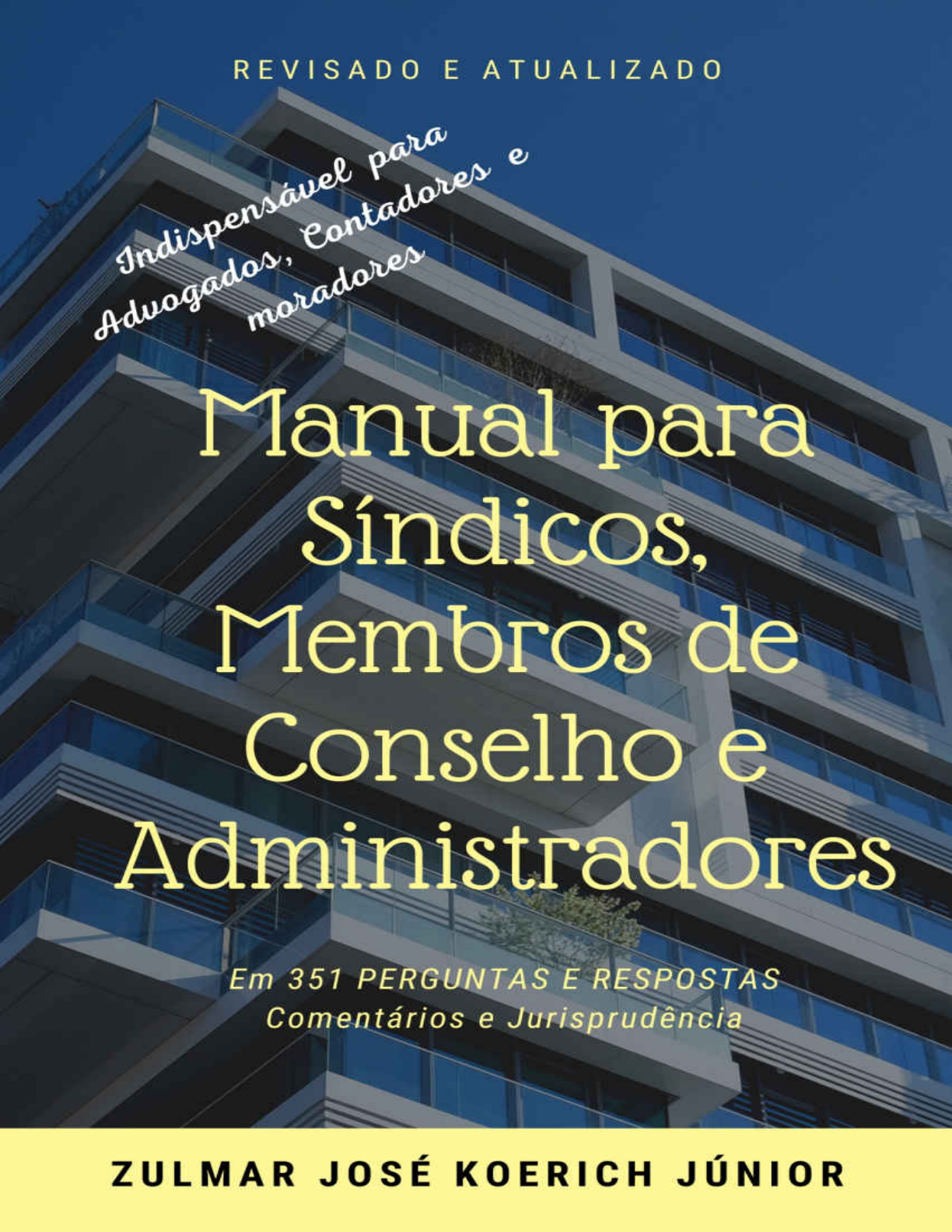 <p>MANUAL PARA SÍNDICOS, MEMBROS DE CONSELHO E</p><p>ADMINISTRADORES</p><p>EM 351 PERGUNTAS E RESPOSTAS</p><p>Comentários e Jurisprudência</p><p>Revisado e atualizado Florianópolis – SC: 2020</p><p>Zulmar José Koerich Junior</p><p>© 2020 Zulmar José Koerich Júnior</p><p>Todos os direitos reservados. Esta obra, seja na impressão física, seja em</p><p>ebook, seja na totalidade, ou em qualquer parte dela, não pode ser</p><p>reproduzido ou usado de forma alguma sem autorização expressa e por</p><p>escrito, do autor, exceto pelo uso de citações breves em resenhas</p><p>literárias ou anúncios. Esses direitos se projetam sobre as edições</p><p>anteriores, impressas de forma independente.</p><p>A presente obra tem por finalidade apresentar aos Síndicos,</p><p>administradores e gestores um completo manual para consultas a ser</p><p>realizadas no cotidiano da vida em condomínio, abrangendo os assuntos</p><p>de grande dificuldade e controvérsia. Não nos prenderemos em questões</p><p>relacionadas à manutenção predial - de fácil percepção e decisão, mas</p><p>avançar por temas que causam dúvidas até mesmo em profissionais</p><p>experientes.</p><p>Não buscamos aqui “filosofar” sobre os temas propostos, mas identificar</p><p>uma grande quantidade de questões práticas e dar uma resposta</p><p>revestida de legalidade, fundamentada, quando possível, em posições de</p><p>nossos Tribunais. Por outro lado, não pretendemos identificarmo-nos</p><p>como paladinos da verdade, mas simplesmente estudiosos do assunto</p><p>que pretendem dar sua parcela de contribuição para que a justiça seja</p><p>feita e a harmonia seja alcançada.</p><p>Zulmar José Koerich Junior. Bacharel em Direito formado pela</p><p>Universidade Federal de Santa Catarina – UFSC. É Advogado</p><p>especialista em questões condominiais. Pos-graduado em Direito Civil e</p><p>empresarial. Sócio da Manzi & Koerich Advogados Associados, em</p><p>Florianópolis-SC. Colaborador da Associação de Condomínios de São</p><p>Paulo. Colaborador do Jornal dos Condomínios-SC e Sindiconet.</p><p>Contato zulmar@manzikoerich.adv.br.</p><p>mailto:zulmar@manzikoerich.adv.br</p><p>Dedicatória</p><p>Dedico esta obra ao meu pequeno filho Francisco Manzi Koerich, que</p><p>inundou nosso lar de alegria.</p><p>Sumário</p><p>I - DO SÍNDICO</p><p>II –DO CONDOMÍNIO EM JUÍZO</p><p>III –MANUTENÇÕES DE SEGURANÇA IV – PRESTAÇÃO DE CONTAS</p><p>V – DO SEGURO DO CONDOMÍNIO</p><p>VI – DOS DOCUMENTOS DO CONDOMÍNIO</p><p>VII - OFENSAS À PESSOA DO SÍNDICO</p><p>VIII - INGRESSO EM UNIDADE DE APARTAMENTO SEM AUTORIZAÇÃO</p><p>IX - CONDOMÍNIO E EMPREGADOS</p><p>X - DO SUBSÍNDICO</p><p>XI - DO CONSELHO FISCAL E CONSULTIVO</p><p>XII - ADMINISTRADORA DE CONDOMÍNIO</p><p>XIII - CONTRATOS EM GERAL – EMPRESAS E PROFISSIONAL AUTÔNOMO</p><p>XIV - DAS REGRAS CONDOMINIAIS</p><p>XV - DOS DIREITOS E DEVERES DOS CONDÔMINOS</p><p>XVI - ALTERAÇÃO DE FACHADA XVII - APARELHO DE AR CONDICIONADO</p><p>XVIII - FECHAMENTO DE SACADAS</p><p>XIX - DO BARULHO E COMPORTAMENTO NOCIVO OU PREJUDICIAL</p><p>XX - ANIMAIS DE ESTIMAÇÃO EM CONDOMÍNIOS</p><p>XXI - DAS ADVERTÊNCIAS E DAS MULTAS</p><p>XXII - CONDÔMINO ANTISSOCIAL</p><p>XXII - DESPESAS DO CONDOMÍNIO</p><p>XXIV - CONVOCAÇÃO</p><p>XXV - EDITAL DE CONVOCAÇÃO</p><p>XXVI - DO DIREITO AO VOTO</p><p>XXVII - QUÓRUM DE VOTAÇÃO</p><p>XXVIII - PRESTAÇÃO DE CONTAS</p><p>XXIX - DO LOCATÁRIO (INQUILINO) XXX - DAS OBRAS</p><p>XXXI-RESPONSABILIDADE CIVIL DO CONDOMINIO</p><p>XXXII - CONTROLE DE ACESSO</p><p>I - DO SÍNDICO</p><p>1) O que é Síndico de fato?</p><p>R: Referida situação pode ser observada em condomínios com poucas</p><p>unidades, em que as contribuições são recolhidas de porta em porta para</p><p>pagamento de despesas básicas, em que são feitas contratações de</p><p>profissionais para prestar pequenos serviços, identificando-se</p><p>perfeitamente, nestes casos, um dos condôminos que toma a frente</p><p>nestas atividades. Também percebemos tal fato em condomínios maiores,</p><p>naquelas situações em que expirado o prazo do mandato do Síndico,</p><p>esse, sem eleição, continua a exercer a função. Muito embora a</p><p>constituição de um condomínio não dependa da eleição de um Síndico, a</p><p>massa condominial necessariamente deve ter um representante, na</p><p>qualidade de Síndico, administrador ou gestor, legitimamente eleito</p><p>por uma assembleia. Caso não haja uma eleição propriamente dita,</p><p>aquele que de fato exerça funções próprias de Síndico, como pagamento</p><p>de contas, recolhimento de cotas, contratação de prestadores de serviço,</p><p>acaba atuando na função de representante do condomínio, como “Síndico</p><p>de fato”, e responsabilizando-se igualmente como se eleito fosse.</p><p>Jurisprudência: CONDOMÍNIO EM EDIFÍCIO DE APARTAMENTOS. Síndico de</p><p>fato, que após o término de seu mandato continua a exercer a função -</p><p>Alegação de malversações - Ação de indenização proposta contra o</p><p>condomínio e não contra ele, por um grupo de condôminos -Impropriedade</p><p>evidente - Sentença que decretou a improcedência e, a rigor, mais</p><p>propriamente seria de carência, por ilegitimidade passiva - Necessidade de o</p><p>Síndico de fato primeiro ser acionado em ação própria, aqui sequer chegou a</p><p>figurar no pólo passivo da demanda - Apelo improvido. (TJSP, APL</p><p>9164142582006826 SP 916414258.2006.8.26.000003/05/2011).</p><p>2) O Síndico é empregado do condomínio? Pode ele estabelecer</p><p>horário para atendimento aos condôminos?</p><p>R: A natureza jurídica da delegação de poderes identifica-se com o</p><p>mandato civil, uma vez que a assembleia dos condôminos, detendo os</p><p>poderes de deliberação acerca deste assunto, constitui terceiro para</p><p>executar as funções administrativas do condomínio.</p><p>Referida função é exer