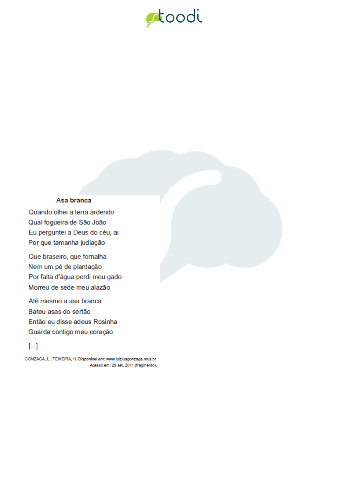 <p>Página 1</p><p>Copyright (c) 2013 - 2018 Stoodi Ensino e Treinamento a Distância LTDA - EPP - Todos os direitos reservados</p><p>1. ENEM 2016</p><p>Em uma aula de biologia sobre formação vegetal brasileira, a professora destacou que, em uma região, a flora convive com</p><p>condições ambientais curiosas. As características dessas plantas não estão relacionadas com a falta de água, mas com as condições</p><p>do solo, que é pobre em sais minerais, ácido e rico em alumínio. Além disso, essas plantas possuem adaptações ao fogo.</p><p>As características adaptativas das plantas que correspondem à região destacada pela professora são:</p><p>a. Raízes escoras e respiratórias.</p><p>b. Raízes tabulares e folhas largas.</p><p>c. Casca grossa e galhos retorcidos.</p><p>d. Raízes aéreas e perpendiculares ao solo.</p><p>e. Folhas reduzidas ou modificadas em espinhos.</p><p>2. ENEM 2017</p><p>O bioma brasileiro retratado na canção é caracterizado principalmente por</p><p>a. índices pluviométricos baixos.</p><p>b. alta taxa de evapotranspiração.</p><p>c. temperatura de clima temperado.</p><p>d. vegetação predominantemente epífita.</p><p>e. migração das aves no período reprodutivo.</p><p>Página 2</p><p>Copyright (c) 2013 - 2018 Stoodi Ensino e Treinamento a Distância LTDA - EPP - Todos os direitos reservados</p><p>3. ENEM 2013</p><p>O manguezal é um dos mais ricos ambientes do planeta, possui uma grande concentração de vida, sustentada por nutrientes trazidos</p><p>dos rios e das folhas que caem das árvores. Por causa da quantidade de sedimentos — restos de plantas e outros organismos —</p><p>misturados à água salgada, o solo dos manguezais tem aparência de lama, mas dele resulta uma floresta exuberante capaz de</p><p>sobreviver naquele solo lodoso e salgado.</p><p>NASCIMENTO, M. S. V. Disponível em: http://chc.cienciahoje.uol.com.br.</p><p>Acesso em: 3 ago. 2011.</p><p>Para viverem em ambiente tão peculiar, as plantas dos manguezais apresentam adaptações, tais como</p><p>a. folhas substituídas por espinhos, a fim de reduzir a perda de água para o ambiente.</p><p>b. folhas grossas, que caem em períodos frios, a fim de reduzir a atividade metabólica.</p><p>c. caules modificados, que armazenam água, a fim de suprir as plantas em períodos de seca</p><p>d. raízes desenvolvidas, que penetram profundamente no solo, em busca de água.</p><p>e. raízes respiratórias ou pneumatóforos, que afloram do solo e absorvem o oxigênio diretamente do ar.</p><p>4. UERN 2015</p><p>Sobre a caatinga, analise as afirmativas.</p><p>I. Bioma que apresenta chuvas irregulares, secas prolongadas e temperaturas elevadas.</p><p>II. Bioma que apresenta plantas denominadas xeromórflcas.</p><p>III. Segundo maior bioma brasileiro.</p><p>IV. Apresenta plantas adaptadas ao fogo, com gemas subterrâneas, troncos com grossas epidermes e sementes com germinação</p><p>induzidas pelo calor.</p><p>Estão corretas apenas as afirmativas</p><p>a. I e II.</p><p>b. I e III.</p><p>c. II e III.</p><p>d. III e IV.</p><p>5. UPE 2014</p><p>Leia o texto a seguir:</p><p>No Egito e na Antiguidade clássica, vivia um belo e esplendoroso pássaro, de origem mítica, com uma plumagem escarlate e dourada</p><p>e com um canto melodioso que encantava qualquer um. A Fênix, como era chamada, era dotada de uma capacidade extraordinária:</p><p>tinha uma longevidade sem precedentes. À medida que sentia a morte se aproximar, ela mesma construía um ninho de ervas</p><p>aromáticas e, com o próprio calor do corpo - cujas penas pareciam labaredas - ateava fogo a si própria e transformava-se em cinzas.</p><p>Dessas cinzas, ressurgia outra ave Fênix e, assim, da mesma morte pelo fogo, surgia uma nova e promissora vida.</p><p>Fonte: Conecte Bio 1 - Sônia Lopes e Sérgio Rosso.</p><p>Essa lenda egípcia remete-nos a uma característica bastante peculiar de um bioma brasileiro.</p><p>Assinale a alternativa que indica o bioma o qual tem o fogo, produzido naturalmente, como mecanismo de manutenção da sua</p><p>biodiversidade.</p><p>Página 3</p><p>Copyright (c) 2013 - 2018 Stoodi Ensino e Treinamento a Distância LTDA - EPP - Todos os direitos reservados</p><p>a. Amazônia</p><p>b. Caatinga</p><p>c. Campo Sulino</p><p>d. Cerrado</p><p>e. Mata Atlântica</p><p>6. UECE 2014</p><p>As plantas da caatinga possuem algumas características particulares, como folhas transformadas em espinhos, cutículas altamente</p><p>impermeáveis, caules suculentos, raízes profundas etc. Essa descrição se refere ao que definimos como</p><p>a. xeromorfismo.</p><p>b. caducifolia.</p><p>c. convergência adaptativa.</p><p>d. mimetismo.</p><p>7. UECE 2015</p><p>"O bioma Caatinga poderá passar por graves transformações que irão influenciar diretamente na agricultura e no abastecimento de</p><p>água (...)'; "Nosso objetivo é conseguir um compromisso político e social para a proteção da Caatinga antes que o pior aconteça (...)';</p><p>'A Caatinga é um dos biomas brasileiros mais ameaçados pelo uso intempestivo dos recursos naturais (...)'; 'As maiores extensões de</p><p>áreas em processo de desertificação no Brasil, com perda gradual de fertilidade do solo, estão localizadas no Semiárido, local onde</p><p>se encontra o bioma, resultado da combinação do cultivo inadequado da terra as variações climáticas"</p><p>(Conferencistas da Rio +20, 2012).</p><p>Sobre a caatinga, pode-se afirmar corretamente que é</p><p>a. uma área em estado quase nativo, que tem sofrido pouca intervenção antrópica.</p><p>b. um bioma que se concentra apenas na região Nordeste do Brasil, com grande diversidade vegetal.</p><p>c. uma área caracterizada principalmente pela predominância de espécies vegetais adaptadas ao estresse hídrico.</p><p>d. um bioma que se concentra parcialmente no Nordeste brasileiro, podendo ser identificada por possuir plantas em sua maioria</p><p>halófitas.</p><p>8. UECE 2015</p><p>“Os mangueza