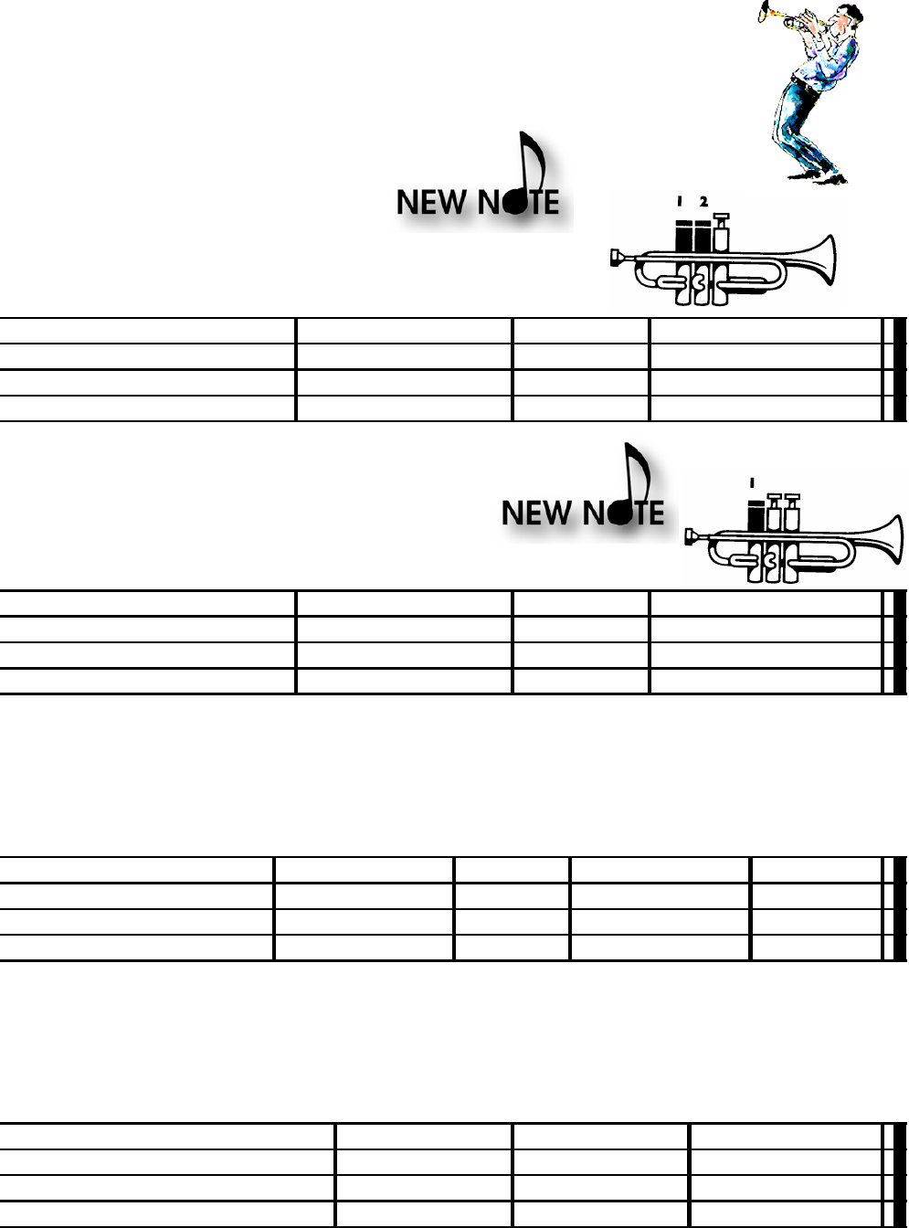 <p>44</p><p>1. Our First Note</p><p>&</p><p>Welcome to the wonderful world of trumpet</p><p>playing. Your teacher has shown you how</p><p>to hold your instrument and make a sound</p><p>on the mouthpiece.</p><p>Let's play our first song!</p><p>1 & 2</p><p>s Œ Œ "E"Œ Œ</p><p>1 & 21 & 2</p><p>s Œ Œ Œ Œ</p><p>44</p><p>2. Our Second Note</p><p>&</p><p>1</p><p>x Œ Œ Œ Œ "F"</p><p>1</p><p>x Œ Œ Œ Œ</p><p>44</p><p>3. Three's a Crowd</p><p>&</p><p>1 & 2</p><p>s ŒŒŒŒ</p><p>1</p><p>x ŒŒŒŒ</p><p>1 & 2</p><p>s</p><p>44</p><p>4. Four In a Row</p><p>&</p><p>1 & 2</p><p>Copyright © 2004 Children's Music Workshop</p><p>s</p><p>1</p><p>x</p><p>1 & 2</p><p>s</p><p>1</p><p>x</p><p>44</p><p>5. A Funny Pair</p><p>&</p><p>1</p><p>{ { Œ Œ</p><p>1 & 2</p><p>z z Œ Œ</p><p>& { { Œ Œ { z { Œ</p><p>44</p><p>6. Skate Board Sam</p><p>& { { { Œ z z z Œ</p><p>& z z Œ Œ { { { Œ</p><p>2</p><p>44</p><p>7. Catch That Note</p><p>& z z z z s</p><p>& { { { { x</p><p>44&</p><p>8. Keep On</p><p>Blowin'</p><p>x z z z z</p><p>& s { { { Œ</p><p>3</p><p>44</p><p>9. Our Third Note</p><p>&</p><p>OPEN</p><p>t "G"t </p><p>44</p><p>10. Couch Potato</p><p>& t</p><p>Whole rests get four beats of silence.</p><p> x </p><p>& s t </p><p>44</p><p>11. Puppy Dogs</p><p>& w w w Œ { { { Œ</p><p>& z z z Œ w w w Œ</p><p>4</p><p>44</p><p>12. Our Fourth Note</p><p>&</p><p>1 & 3</p><p>R R</p><p>"D" R</p><p>44</p><p>13. Apple for the Teacher</p><p>& y y y y y y y Œ</p><p>& y y y y y y y Œ</p><p>& y y z z { { z z</p><p>& y z { z y Œ y Œ</p><p>5</p><p>44</p><p>14. Our Fifth Note</p><p>&</p><p>OPEN</p><p>I "C"</p><p>I I</p><p>44&</p><p>15. Bumper Cars</p><p>" Œ " Œ y y y Œ</p><p>& z Œ z Œ { { { Œ</p><p>& w w w Œ { {{ Œ zzz Œ y yy Œ</p><p>& " Œy Œ z Œ{Œ z z yy I</p><p>6</p><p>44&</p><p>16. Half Notes Happen</p><p>^ ^ 4 4 ^ E ^ P</p><p>44&</p><p>17. Hot Cross Buns</p><p>^ . I ^ . I</p><p>& " " " " y y yy ^ . I</p><p>7</p><p>&Notes are written on</p><p>lines and spaces called</p><p>the "staff".</p><p>How many lines can you find?</p><p>How many spaces can you find?</p><p>44&</p><p>18. High Dive</p><p>" " " y ^ .</p><p>& " z y y I</p><p>& " " " y ^ .</p><p>& " z y y I</p><p>8</p><p>44& z y " y z z ^ y y . z w 4</p><p>19. Mary Had a Little Lamb</p><p>& z y " y z z ^ y y z y I</p><p>44</p><p>20. Bad News</p><p>Bears</p><p>& z</p><p>When you see this logo, follow the link for</p><p>additional songs and exercises online.</p><p>Œ</p><p>www.bandfunbook.com/PAGE9</p><p>y Œ z y " Œ { Œ z Œ</p><p>& { z y Œ Œ w { z y w P</p><p>9</p><p>44& wz w z w z Œ z w w { z . Œy</p><p>21. Dreydl, Dreydl</p><p>& { y { y { y Œ y w { z y I</p><p>44& P ˙ . ˙ ^ ˙ x</p><p>22. Notes Without Letters</p><p>& E ˙ ^ ˙ . ˙ I</p><p>& ˙ ˙ ˙ ˙ ˙ ˙ w</p><p>10</p><p>&</p><p>Low "B" Blow gently.</p><p>Play easy like your "C". ]</p><p>2</p><p>44& z P y z { .</p><p>23. Shoo Fly, Don't Bother Me!</p><p>& y - " y z P</p><p>& z P y z { . w w w { z y P</p><p>44& zœœœ {œœœ zœœœ yœœœ</p><p>24. Crazy Tonguing</p><p>& " œ œ œ g œ œ œ œ œ œ œ w</p><p>11</p><p>44 ..A œ œ œ œ œ œ œ œ œ œ</p><p>44 ..B œ œ œ œ œ œ œ œ œ œ</p><p>44 ..C œ œ œ œ œ œ œ œ œ œ</p><p>44 ..D œ œ œ œ œ œ œ œ œ œ</p><p>44 ..E</p><p>www.bandfunbook.com/PAGE12</p><p>œ œ œ œ œ œ œ œ œ œ œ œ</p><p>12</p><p> " " yyz " zyyy " " yyz P yyy</p><p>25. Yankee Doodle Cha Cha</p><p> " " yyz {zyy " y " yyy P " " "</p><p> { w ! ! ! 4 . z { w w w E P</p><p>26. Caribbean Cruise</p><p> { w ! ! ! 4 4 ^ w z x</p><p> " " " y y z " " . z z z y " . .</p><p>27. Country Hoe Down</p><p> " " " y y z z z E w { { z y P P</p><p>13</p><p></p><p>28. Eighth Note Slide</p><p> { { { z z z y y y " </p><p> y y y z z { { { E</p><p></p><p></p><p></p><p>29. The Cabbage Song</p><p> z z z z { {</p><p>s</p><p>z z z z y y</p><p> z z z z { { { { z z y y " "</p><p>14</p><p> "A"</p><p>Firm corners!</p><p>Lots of air!</p><p>Blow high like your "G".</p><p>S</p><p></p><p>30. Old MacDonald</p><p>Had a Farm</p><p> { { { " y y P ! ! w w</p><p>1 & 2</p><p>E </p><p> { { {</p><p>Half note rests get</p><p>two beats of silence.</p><p>" " { { E</p><p> { { { { { { { { { { { {</p><p> { { { " y y P ! ! w w E </p><p>15</p><p>1. </p><p>2.</p><p></p><p></p><p>31. Stodola Pumpa</p><p></p><p>When you reach the repeat sign under the first ending, stop and</p><p>go back to the beginning. When you get to the first ending again,</p><p>skip it and go to the second ending.</p><p>! ! ! w w w { { { " { z z z y z</p><p>1. </p><p>2.</p><p> { { { " { { { { </p><p> w ! w { z { 4 y z E z { 4</p><p>32. London Bridge</p><p> . 4 z P </p><p>16</p><p>A "slur" is a curved line that connects</p><p>two or more notes of different pitches.</p><p>Tongue the first note and move to the</p><p>next notes without tonguing. Don't stop blowing.</p><p>z { w</p><p></p><p>A "tie" is a curved line that connects</p><p>two or more notes of the same pitch.</p><p>Hold the note for the combined value of the notes.</p><p>E {</p><p></p><p>33. Southern Roses</p><p> P E ^ . </p><p> z { w . z { w P </p><p> P E ^ . </p><p> z { w . z E { </p><p>17</p><p></p><p>Note(s) that come before the first</p><p>full measure of a piece of music.</p><p>y w w 4</p><p></p><p>Hold (keep blowing) the note</p><p>until your director tells you to stop,</p><p>]</p><p> y z { zy yz {!z{y {w</p><p>34. Snake Charmer</p><p> ! ! ! ! w z { w w w w { y z</p><p> { z y y z { ! z { y</p><p> </p><p> " { z { w y 4 { z y z E P</p><p>35. Aura Lee</p><p> { z y z E </p><p>18</p><p></p><p>36. Jingle</p><p>Bells</p><p></p><p>www.bandfunbook.com/PAGE19</p><p>z z ^ z z ^ z w " y ^ </p><p> { { { { { z z z z z y y z . 4</p><p> </p><p> { { { { { z z z z w w { y I</p><p>19</p><p></p><p>37. Twinkle, Twinkle, Little Star</p><p> " " w w !</p><p>Go back to the beginning</p><p>and play until "Fine".</p><p>! 4 { { z z y y</p><p>Fine</p><p>P</p><p> w w { { z z . </p><p>D. C. al Fine</p><p> </p><p> z</p><p>Go back to the sign and</p><p>play until "Fine".<