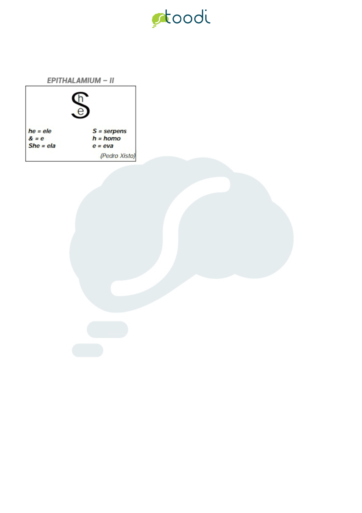 <p>Página 1</p><p>Copyright (c) 2013 - 2018 Stoodi Ensino e Treinamento a Distância LTDA - EPP - Todos os direitos reservados</p><p>1. ENEM 2004</p><p>O poema a seguir pertence à poesia concreta brasileira. O termo latino de seu título significa "epitalâmio", poema ou canto em</p><p>homenagem aos que se casam.</p><p>Considerando que símbolos e sinais são utilizados geralmente para demonstrações objetivas, ao serem Incorporados no poema</p><p>"Epithalamium - II",</p><p>a. adquirem novo potencial de significação.</p><p>b. eliminam a subjetividade do poema.</p><p>c. opõem-se ao tema principal do poema.</p><p>d. invertem seu sentido original.</p><p>e. tornam-se confusos e equivocados.</p><p>2. UFRGS 1998</p><p>Considere as seguintes afirmações sobre o Concretismo.</p><p>I - Buscou na visualidade um dos suportes para atingir rupturas radicais com a ordem discursiva da língua portuguesa.</p><p>II - Teve como integrantes fundamentais Haroldo de Campos, Augusto de Campos e Décio Pignatari.</p><p>III - Foi um projeto de renovação formal e estética da poesia brasileira, cuja importância fica restrita à década de 1950.</p><p>Quais estão corretas?</p><p>a. Apenas I</p><p>b. Apenas II</p><p>c. Apenas III</p><p>d. Apenas I e II</p><p>e. I, Il e III</p><p>3. ENEM 2012</p><p>Logia e mitologia</p><p>Meu coração</p><p>de mil e novecentos e setenta e dois</p><p>já não palpita fagueiro</p><p>sabe que há morcegos de pesadas olheiras</p><p>Página 2</p><p>Copyright (c) 2013 - 2018 Stoodi Ensino e Treinamento a Distância LTDA - EPP - Todos os direitos reservados</p><p>que há cabras malignas que há</p><p>cardumes de hienas infiltradas</p><p>no vão da unha na alma</p><p>um porco belicoso de radar</p><p>e que sangra e ri</p><p>e que sangra e ri</p><p>a vida anoitece provisória</p><p>centuriões sentinelas</p><p>do Oiapoque ao Chuí.</p><p>CACASO. Lero-lero. Rio de Janeiro: 7Letras; São Paulo: Cosac & Naify, 2002.</p><p>O título do poema explora a expressividade de termos que representam o conflito do momento histórico vivido pelo poeta na década</p><p>de 1970. Nesse contexto, é correto afirmar que</p><p>a. o poeta utiliza uma série de metáforas zoológicas com significado impreciso.</p><p>b. “morcegos”, “cabras” e “hienas” metaforizam as vítimas do regime militar vigente.</p><p>c. o “porco”, animal difícil de domesticar, representa os movimentos de resistência.</p><p>d. o poeta caracteriza o momento de opressão através de alegorias de forte poder de impacto.</p><p>e. “centuriões” e “sentinelas” simbolizam os agentes que garantem a paz social experimentada.</p><p>4. UFRGS 2006</p><p>Leia o poema a seguir, de Décio Pignatari, e considere as aflrmações que seguem.</p><p>I - Trata-se de um exemplo de poesia concreta, vanguarda do século XX que alterou radicalmente os recursos materiais da</p><p>construção poética, valendo-se inclusive, de técnicas da publicidade.</p><p>II - No poema, o uso do imperativo e o jogo lúdico das aliterações contribuem para denunciar a forma persuasiva e sedutora da</p><p>mensagem publicitária que induz ao consumo.</p><p>III - O último verso é a síntese da intenção satírica do poema, que desqualifica o produto anunciado e, por extensão, a sociedade de</p><p>consumo que ele representa.</p><p>Quais estão corretas?</p><p>a. Apenas I.</p><p>b. Apenas II.</p><p>c. Apenas III.</p><p>d. Apenas II e III.</p><p>e. I, II e III.</p><p>Página 3</p><p>Copyright (c) 2013 - 2018 Stoodi Ensino e Treinamento a Distância LTDA - EPP - Todos os direitos reservados</p><p>5. ENEM 2015</p><p>Aquarela</p><p>O corpo no cavalete</p><p>é um pássaro que agoniza</p><p>exausto do próprio grito.</p><p>As vísceras vasculhadas</p><p>principiam a contagem</p><p>regressiva.</p><p>No assoalho o sangue</p><p>se decompõe em matizes</p><p>que a brisa beija e balança:</p><p>o verde – de nossas matas</p><p>o amarelo – de nosso ouro</p><p>o azul – de nosso céu</p><p>o branco o negro o negro</p><p>CACASO. In: HOLLANDA, H. B (Org.). 26 poetas hoje. Rio de Janeiro: Aeroplano, 2007.</p><p>Situado na vigência do Regime Militar que governou o Brasil, na década de 1970, o poema de Cacaso edifica uma forma de</p><p>resistência e protesto a esse período, metaforizando</p><p>a. as artes plásticas, deturpadas pela repressão e censura.</p><p>b. a natureza brasileira, agonizante como um pássaro enjaulado.</p><p>c. o nacionalismo romântico, silenciado pela perplexidade com a Ditadura.</p><p>d. o emblema nacional, transfigurado pelas marcas do medo e da violência.</p><p>e. as riquezas da terra, espoliadas durante o aparelhamento do poder armado.</p><p>6. ENEM 2013</p><p>Mesmo tendo a trajetória do movimento interrompida com a prisão de seus dois líderes, o tropicalismo não deixou de cumprir seu</p><p>papel de vanguarda na música popular brasileira. A partir da década de 70 do século passado, em lugar do produto musical de</p><p>exportação de nível internacional prometido pelos baianos com a “retomada da linha evolutória”, instituiu-se nos meios de</p><p>comunicação e na indústria do lazer uma nova era musical.</p><p>TINHORÃO, J. R. Pequena história da música popular: da modinha ao tropicalismo. São Paulo: Art, 1986 (adaptado).</p><p>A nova era musical mencionada no texto evidencia um gênero que incorporou a cultura de massa e se adequou à realidade brasileira.</p><p>Esse gênero está representado pela obra cujo trecho da letra é:</p><p>a. A estrela d'alva / No céu desponta / E a lua anda tonta / Com tamanho esplendor. (As pastorinhas, Noel Rosa e João de Barro)</p><p>Página 4</p><p>Copyright (c) 2013 - 2018 Stoodi Ensino e Treinamento a Distância LTDA - EPP - Todos os direitos reservados</p><p>b. Hoje / Eu quero a rosa mais linda que houver / Quero a primeira estrela que vier / Para enfeitar a noite do meu bem. (A noite do</p><p>meu bem, Dolores Duran)</p><p>c. No rancho fundo / Bem pra lá do fim do mund