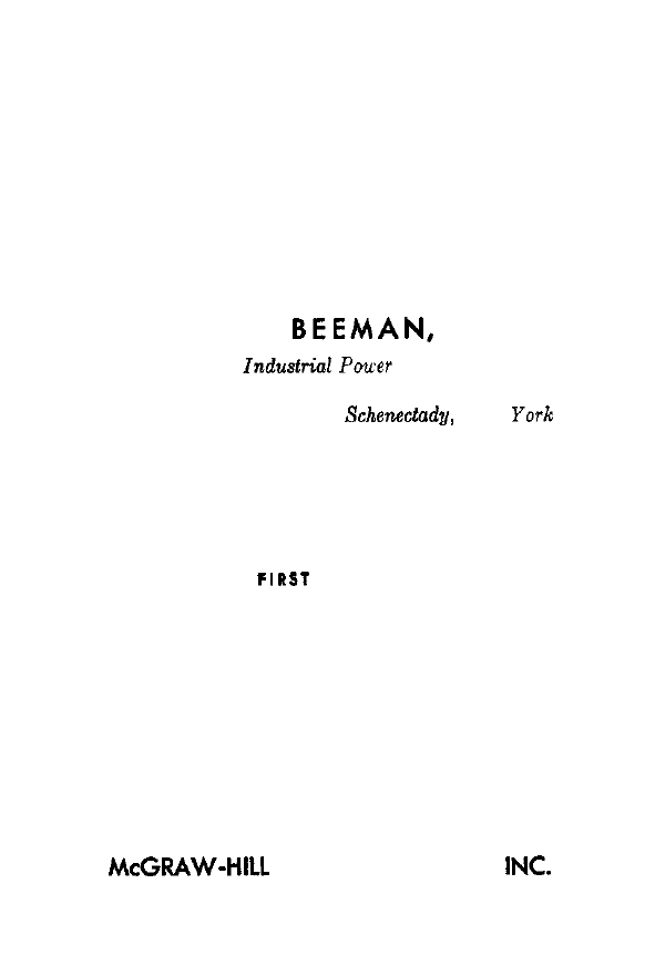<p>Industrial Power Systems</p><p>Handbook</p><p>D O N A L D BEEMAN, Editor</p><p>Manager, Industriaf P w e r Engineering</p><p>Industrial Engineering Seclwn</p><p>General Electric Company, Schenectady, New Yorlc</p><p>FIRST EDIT ION</p><p>McGRAW-HILL BOOK COMPANY, INC.</p><p>1955 New York Toronto London</p><p>Ch.UPh?r 1 by Donald Beeman, Alan Graeme Darling,</p><p>and R. H. Kaufmann</p><p>Short-circuit-current Calculating</p><p>Procedures</p><p>FUNDAMENTALS OF A-C SHORT-CIRCUIT CURRENTS</p><p>The determination of short-circuit currents in power distribution sys-</p><p>tems is just as basic and important as the determination of load currents</p><p>for the purpose of applying circuit breakers, fuses, and motor starters.</p><p>The magnitude of the shoncircuit current is often easier to determine</p><p>than the magnitude of the load current.</p><p>Calculating procedures have been so greatly simplified compared with</p><p>the very complicated procedures previously used that now only simple</p><p>arithmetic is required to determine the short-circuit currents in even the</p><p>most complicated power systems.</p><p>SHORT-CIRCUIT CURRENTS AND THEIR EFFECTS</p><p>If adequate protection is to he provided for a plant electric system, the</p><p>size of the electric power system must also be considered to determine</p><p>how much short-circuit current i t will deliver. This is done so that cir-</p><p>cuit breakers or fuses may he selected with adequate interrupting capac-</p><p>ity (IC). This interrupting capacity should be high enough to open</p><p>safely the maximum short-circuit current which the power system can</p><p>cause to flow through a circuit breaker if a short circuit occurs in the</p><p>feeder or equipment which it protects.</p><p>The magnitude of the load current is determined by the amount Of</p><p>work that is being done and hears little relation to the size of the system</p><p>supplying the load. However, the magnitude of the short-circuit current</p><p>is somewhat independent of the load and is directly related to the size or</p><p>I</p><p>2 SHORT-CIRCUIT-CURRENT CALCULATING PROCEDURES</p><p>capacity of t,he power source. The larger the apparatus which supplies</p><p>electric power to the system, the greater the short-circuit current will be.</p><p>Take a simple case: A 440-volt three-phase lo-lip motor draws about</p><p>13 amp of current a t full load and will draw only this amount whether</p><p>supplied by a 25-kva or a 2500-kva transformer bank. So, if only thc</p><p>load currcnts arc considered when selecting motor branch circuit break-</p><p>ers, a 15- or 20-amp circnit, breaker wnuld he specified. However, the</p><p>size of t,he power system back of the circuit breaker has a real bearing on</p><p>the amount of the short,-circuit, current. which can flow as a result of a</p><p>short circuit on the load side of the circuit breaker. Hence, a much</p><p>larger circuit breaker would be required to handle the short-circuit current</p><p>from a 2500-kva bank than from a 25-kva bank of transformers.</p><p>These numbers A simple mathematical example is shown in Fig. 1.1.</p><p>MUST BE CAPABLE OF INTERRUPTING 1000 AMPERES</p><p>El I O O V</p><p>100 A</p><p>~ ~ 1 0 . 1 OHMS</p><p>MOTOR LOAD</p><p>CURRENT</p><p>5 AMP</p><p>APPARENT</p><p>IMPEDANCE</p><p>20 OHMS</p><p>E I 00 SHORT CIRCUIT CURRENT = - : - = 1000- AMPERES</p><p>Z T 0.1</p><p>MUST BE CAPABLE OF INTERRUPTING 10,000 AMPERES</p><p>w</p><p>I000 A</p><p>2 1 = 0.01 OHMS</p><p>MOTOR LOAD</p><p>CURRENT</p><p>5 AMP</p><p>FIG. 1.1</p><p>circuit-current magnitude than load.</p><p>Illustrotion showing that copocity of power source has more effect on rhort-</p><p>SHORT-CIRCUIT-CURRENT CALCULATING PROCEDURES 3</p><p>have been chosen for easy calculation rather than a representation of</p><p>actual system conditions.</p><p>The impedance, limiting the flow of load current, consists mainly of</p><p>the 20 ohms apparent impedance of the motor. If a short circuit occurs</p><p>at F , the only impedance t o limit the flow of short-circuit current is the</p><p>transformer impedance (0.1 ohm compared with 20 ohms for the motor);</p><p>therefore, the short-circuit current is 1000 amp, or 200 times as great as</p><p>the load current. Unless circuit breaker A can open 1000 amp, the</p><p>short-circuit current will continue to flow, doing great damage.</p><p>Suppose the plant grows and a larger transformer, one rated a t 1000</p><p>amp, is substituted for the 100-amp unit. A short circuit a t F , (bottom</p><p>in Fig. 1.1) will now be limited by only 0.01 ohm, the impedance of the</p><p>larger transformer. Although the load current is still 5 amp, the short-</p><p>circuit current will now he 10,000 amp, and circuit breaker A must be</p><p>able t o open that amount. Consequently it is necessary to coiisider the</p><p>size of the system supplying the plant as well as the load current, to be</p><p>sure that circuit breakers or fuses are selected which have adequate</p><p>interrupting rating for stopping the flow of the short-circuit current.</p><p>Short-circuit and load currents are analogous t o the flow of xvater in a</p><p>hydroelectric plant, shoivn in Fig. 1.2. The amount of water that flows</p><p>under normal conditions is determined by the load on the turbines.</p><p>Within limits, i t makes little difference whether the reservoir behiiid the</p><p>dam is large or small. This flow of water is comparable to the flow of load</p><p>current in the distribution system in a factory.</p><p>On the other hand, if the dam breaks, the amount of water that will</p><p>flow will depend upon the capacity of the reservoir and will bear little</p><p>relation to the load on the turbines. Whether the reservoir is large or</p><p>small will make a great difference in this case. This flow of water is</p><p>comparable t o the flow of current through a short circuit in the distribu-</p><p>tion system. The load currents do useful work, like the water that flows</p><p>down 