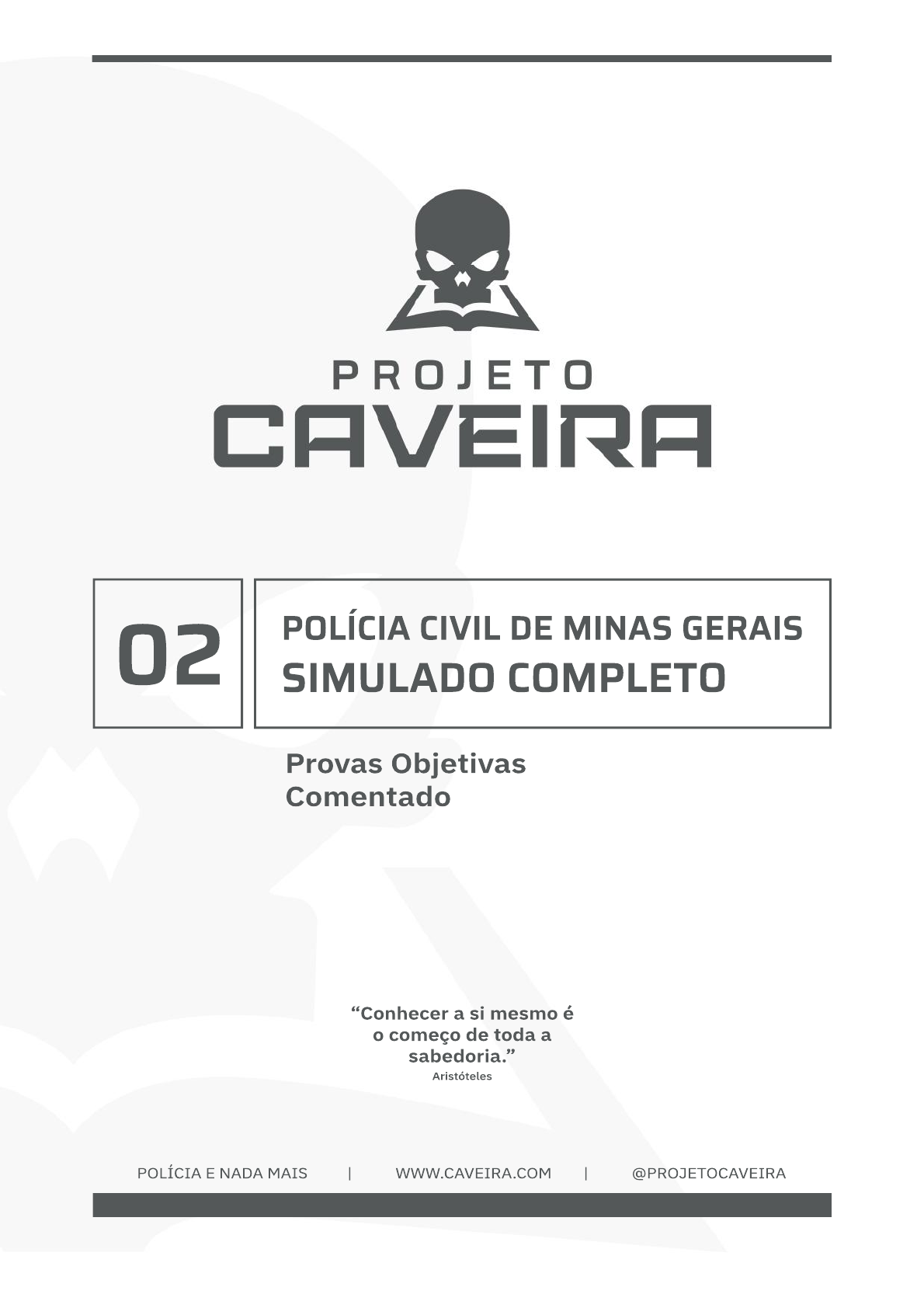 <p>02 POLÍCIA CIVIL DE MINAS GERAIS</p><p>SIMULADO COMPLETO</p><p>Provas Objetivas</p><p>Comentado</p><p>POLÍCIA E NADA MAIS | WWW.CAVEIRA.COM | @PROJETOCAVEIRA</p><p>“Conhecer a si mesmo é</p><p>o começo de toda a</p><p>sabedoria.”</p><p>Aristóteles</p><p>1119959.12/07/2024</p><p>815.378.917-15.141582</p><p>GABARITO 2º Simulado - PCMG</p><p>1 2 3 4 5 6 7 8 9 10</p><p>C C B D A D B A D A</p><p>11 12 13 14 15 16 17 18 19 20</p><p>D A B C B D A C D B</p><p>21 22 23 24 25 26 27 28 29 30</p><p>B X A C B D A B C C</p><p>31 32 33 34 35 36 37 38 39 40</p><p>D C D C A A B C A B</p><p>41 42 43 44 45 46 47 48 49 50</p><p>C B A D A D C B D A</p><p>51 52 53 54 55 56 57 58 59 60</p><p>D A C C D C A B C D</p><p>1119959.12/07/2024</p><p>815.378.917-15.141582</p><p>PROJETO CAVEIRA 2º SIMULADO COMPLETO – PCMG 2023 – PRÉ-EDITAL</p><p>1</p><p>Língua Portuguesa</p><p>TEXTO 1</p><p>Conto de fadas para Mulheres Modernas</p><p>Luís Fernando Veríssimo</p><p>Senhoras e senhores, atentem-se a esta história:</p><p>Era uma vez, numa terra muito distante, uma</p><p>linda princesa, independente e cheia de autoestima, que,</p><p>enquanto contemplava a natureza e pensava em como o</p><p>maravilhoso lago do seu castelo estava de acordo com</p><p>as conformidades ecológicas, se deparou com uma rã.</p><p>Então, a rã pulou para o seu colo e disse:</p><p>- Linda princesa, eu já fui um príncipe muito</p><p>bonito. Mas, uma bruxa má lançou-me um encanto e eu</p><p>transformei-me nesta rã asquerosa. Um beijo teu, no</p><p>entanto, há de me transformar de novo num belo príncipe</p><p>e poderemos casar e constituir lar feliz no teu lindo</p><p>castelo. A minha mãe poderia vir morar conosco e tu</p><p>poderias preparar o meu jantar, lavarias as minhas</p><p>roupas, criarias os nossos filhos e viveríamos felizes para</p><p>sempre…</p><p>E então, naquela noite, enquanto saboreava</p><p>pernas de rã à sautée, acompanhadas de um cremoso</p><p>molho acebolado e de um finíssimo vinho branco, a</p><p>princesa sorria e pensava:</p><p>– Eu, hein? … nem morta!</p><p>Disponível em: . (adaptado). Acesso em: 9 maio. 2023.</p><p>1. O aspecto de modernidade linguística atribuído no</p><p>texto 1 se dá devido ao(à):</p><p>A) Equilíbrio ecológico do castelo.</p><p>B) Emprego de expressão estrangeira.</p><p>C) Uso biforme do vocativo na enunciação inicial.</p><p>D) Empoderamento feminino da protagonista.</p><p>Gabarito: C</p><p>COMENTÁRIO DO PROFESSOR:</p><p>Salve, salve, caveiras! Aqui temos uma questão que</p><p>precisamos ficar atentos ao enunciado da pergunta.</p><p>Vejam só:</p><p>No enunciado, solicita-se a identificação de um traço de</p><p>modernidade linguística! Repetindo, LINGUÍSTICA.</p><p>Ainda que o texto aborde um tema extremamente</p><p>contemporâneo e atual, que é o empoderamento</p><p>feminino, as ações da protagonista não configuram um</p><p>aspecto linguístico, mas sim comportamental.</p><p>No entanto, repare que, ultimamente, tem sido cada vez</p><p>mais comum ouvirmos em noticiários, palestras, eventos,</p><p>a saudação aos presentes fazendo e distinguindo as</p><p>marcas de gênero feminino e masculino, como os casos:</p><p>“Boa noite a todos e a todas”, “Sejam todos e todas bem-</p><p>vindas” ou ainda, como no caso do texto de Veríssimo,</p><p>“Senhoras e senhores”.</p><p>Vale destacar que essa construção (distinguindo o</p><p>feminino e masculino) é desnecessária perante a</p><p>Gramática Normativa, visto que a forma masculina já</p><p>seria o suficiente. E, por esta razão, quando as pessoas</p><p>optam por fazer essa distinção da marcação do gênero,</p><p>usando o masculino e o feminino ao mesmo tempo e de</p><p>forma dissociado, tem-se uma característica</p><p>contemporânea/moderna quanto aos aspectos</p><p>linguísticos.</p><p>Leia atentamente o trecho do texto 1:</p><p>“Era uma vez, numa terra muito distante, uma linda</p><p>princesa, independente e cheia de autoestima, que,</p><p>enquanto contemplava a natureza e pensava em como o</p><p>maravilhoso lago do seu castelo estava de acordo com</p><p>as conformidades ecológicas, se deparou com uma rã.</p><p>Então, a rã pulou para o seu colo e disse [...]”.</p><p>2. Quanto ao emprego dos aspectos linguísticos, assinale</p><p>a alternativa correta:</p><p>A) A palavra “autoestima” foi grafada incorretamente, já</p><p>que o uso de hífen é obrigatório, assim como nas</p><p>palavras: vice-amiga, pró-ativo e semi-aberto.</p><p>B) A expressão “Era uma vez” funciona como um adjunto</p><p>adverbial de tempo, o qual confere ao texto uma ideia</p><p>precisa na exposição ou transmissão de fatos.</p><p>C) A palavra “que” funciona como pronome relativo, o</p><p>qual possui valor coesivo referencial anafórico.</p><p>D) Os conectivos “de acordo” e “então” foram</p><p>empregados com função coesiva sequencial,</p><p>estabelecendo no texto a mesma relação lógica.</p><p>Gabarito: C</p><p>COMENTÁRIO DO PROFESSOR:</p><p>Fale, Caveiras! Simbora analisar casa uma das</p><p>alternativas e descobrir qual é a alternativa correta? Bora</p><p>lá:</p><p>A) INCORRETO, a palavra “autoestima” não pode</p><p>receber hífen. Ademais a palavra “semiaberto” deve</p><p>também ser redigida sem hífen.</p><p>B) INCORRETO, ainda que a expressão “era uma vez”</p><p>indique um adjunto adverbial de tempo, ele traduz uma</p><p>ideia de atemporalidade, e não precisão temporal, no</p><p>texto.</p><p>C) CORRETO, o pronome relativo “que”, em “Era uma</p><p>vez, numa terra muito distante, uma linda princesa,</p><p>independente e cheia de autoestima, que”, retoma o</p><p>termo anterior “linda princesa”, funcionando, assim, como</p><p>um elemento coesivo anafórico (retomada de ideias</p><p>postas anteriormente).</p><p>D) INCORRETO, embora os conectivos “de acordo” e</p><p>“então” exerçam uma função sequencial no texto, eles</p><p>não possue