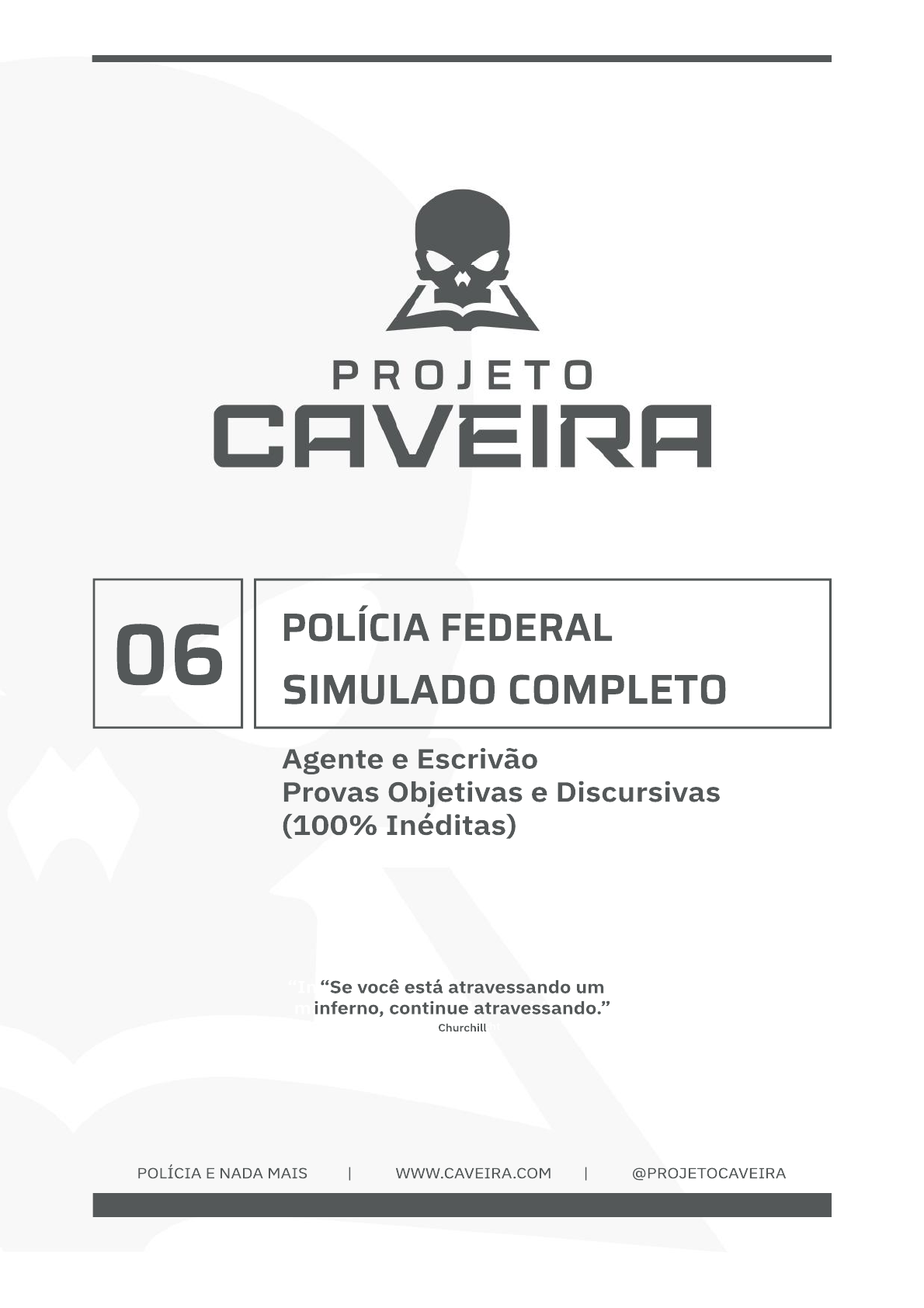 <p>POLÍCIA FEDERAL06 SIMULADO COMPLETO</p><p>Agente e Escrivão</p><p>Provas Objetivas e Discursivas</p><p>(100% Inéditas)</p><p>POLÍCIA E NADA MAIS | WWW.CAVEIRA.COM | @PROJETOCAVEIRA</p><p>“Inteligência não é não cometer erros,</p><p>mas saber resolvê-los rapidamente.”</p><p>Bertolt Brecht</p><p>“Se você está atravessando um</p><p>inferno, continue atravessando.”</p><p>Churchill</p><p>1083474.23/06/2024</p><p>060.096.861-80.100196</p><p>PROJETO CAVEIRA 06º SIMULADO - PF 2024</p><p>1</p><p>BLOCO I</p><p>Língua Portuguesa:</p><p>Estamos ligadas para sempre: Maria Claudete e eu</p><p>Alguém que se chama Maria Claudete usou meu</p><p>e-mail para se cadastrar na 99, o aplicativo de transporte</p><p>por veículos. Maria Claudete paga todas as corridas em</p><p>dinheiro; não está, logo, me trazendo prejuízo. O</p><p>transtorno, se posso chamar assim, é só receber as</p><p>mensagens do aplicativo me informando de todos os</p><p>passos dela.</p><p>Maria Claudete foi na rua das casas, número</p><p>zero. Maria Claudete foi na loja tal. Maria Claudete fez</p><p>uma parada antes de chegar ao seu destino.</p><p>No começo achei que Maria Claudete era eu,</p><p>depois lembrei que meu nome é Maria Claudia. Minhas</p><p>amigas me chamam de Claudete, daí a confusão que fiz</p><p>entre mim e eu mesma. A outra diferença é que não uso</p><p>o 99 – e agora é que não vou usar mesmo. Tentei tirar o</p><p>meu e-mail da conta da Maria Claudete, mas para isso é</p><p>preciso baixar o aplicativo. Só que o meu e-mail está</p><p>associado a uma conta que já existe. Se tento me</p><p>cadastrar, a 99 manda a mensagem: este e-mail já está</p><p>em uso.</p><p>Estamos ligadas para sempre, Maria Claudete e</p><p>eu.</p><p>Nos últimos tempos, ando pensando que ela é</p><p>uma irmã perdida e que resolveu usar desse expediente</p><p>para se reaproximar. Sei lá, vai que descobriu que o meu</p><p>pai a teve fora do casamento ou, melhor ainda, a minha</p><p>mãe. Quem sabe a minha mãe, muito jovem, viveu uma</p><p>aventura proibida, engravidou, foi obrigada a se desfazer</p><p>da filha e agora estamos aí, Maria Claudete e eu,</p><p>dividindo o mesmo e-mail, já que não conseguimos</p><p>crescer juntas.</p><p>Mas às vezes também penso que Maria</p><p>Claudete pode ser só falcatrua, e que nem se chama</p><p>Maria Claudete. Talvez nem seja Maria, o nome dela é</p><p>Rosângela ou Márcia. Porque não faz sentido. Sabendo-</p><p>se que basta entrar no Google e criar um e-mail, por que</p><p>ela usa o meu?</p><p>Maria Claudete foi ao parque. Maria Claudete foi</p><p>às compras. Maria Claudete foi dançar.</p><p>E se Maria Claudete for uma líder de facção, se</p><p>além do meu e-mail, tem meus dados e está envolvida</p><p>em compras de armas y otras cositas que me arrepiam</p><p>só de aventar? Ou se for uma doida que pegou meu e-</p><p>mail para me zoar? Pior que eu sei onde ela mora, porque</p><p>Maria Claudete vai e volta e acaba sempre no mesmo</p><p>endereço. Será prudente bater lá?</p><p>Maria Claudete foi ao mercado. Maria Claudete</p><p>foi até a praça. Maria Claudete foi rezar.</p><p>Enquanto não resolvo a situação, se é que um</p><p>dia vou resolver, já que precisaria ter o meu e-mail para</p><p>falar com a 99, eu fantasio. É Carnaval e mal não faz.</p><p>Maria Claudete me rendeu uma crônica, quem sabe não</p><p>pensamos, ela e eu, em um livro? Já nos vejo na</p><p>contracapa, Maria Claudete e Maria Claudia, separadas</p><p>no nascimento e unidas pelo Gmail.</p><p>Só te peço uma coisa, Maria Claudete: juízo.</p><p>Olha lá o que vai aprontar pela cidade. Não tenho nada</p><p>a ver com a tua vida e não me importaria com teus</p><p>passeios, não fosse obrigada a saber de cada um deles.</p><p>Por isso é que te imploro para cuidar da nossa reputação.</p><p>Nós temos um e-mail _(?)_ zelar.</p><p>Disponível em: gauchazh.clicrbs.com.br/donna/colunistas/claudia-</p><p>tajes/noticia/2024/02/estamos-ligadas-parasempre-maria-claudete-e-</p><p>eu. Acesso em: 27 mar. 2024.</p><p>Considerando o texto, julgue os itens a seguir.</p><p>01. De acordo com o texto, uma das divagações da</p><p>autora sobre a identidade e a situação com Maria</p><p>Claudete é o fato de que Maria Claudete pode estar se</p><p>divertindo às custas da autora.</p><p>02. O texto pertence ao gênero textual crônica, pois a</p><p>autora, além de utilizar uma linguagem mais informal,</p><p>parte de uma situação real pessoal para criticar os danos</p><p>causados por ter tido seu e-mail roubado.</p><p>03. Com base nas informações do texto, apesar de saber</p><p>como fazer contato com Maria Claudete, a autora ainda</p><p>tem hesitações se deve realizá-lo.</p><p>04. No trecho “Olha lá o que vai aprontar pela cidade”</p><p>(último parágrafo), a expressão sublinhada poderia ser</p><p>substituída por “Veja bem”, sem causar prejuízo</p><p>gramatical e alteração do sentido original do texto.</p><p>05. No trecho “agora estamos aí, Maria Claudete e eu,</p><p>dividindo o mesmo e-mail, já que não conseguimos</p><p>crescer juntas” (5º parágrafo), a expressão destacada</p><p>estabelece uma relação lógico-discursiva de explicação</p><p>à ação anterior.</p><p>06. No último parágrafo do texto, a expressão “Olha lá”</p><p>foi empregada em sentido figurado.</p><p>07. O uso do acento indicativo de crase em “Maria</p><p>Claudete foi até a praça” (9º parágrafo) traria prejuízo</p><p>gramatical à sentença.</p><p>08. No trecho “e que resolveu usar desse expediente</p><p>para se reaproximar” (5º parágrafo), a palavra destacada</p><p>poderia ser substituída, sem prejuízo gramatical e de</p><p>sentido original para o texto, pela expressão “meio”.</p><p>09. O trecho “está envolvida em compras de armas y</p><p>outras cositas que me arrepiam só de aventar” (8º</p><p>parágrafo) poderia ser reescrito, sem causar prejuízo</p><p>gr