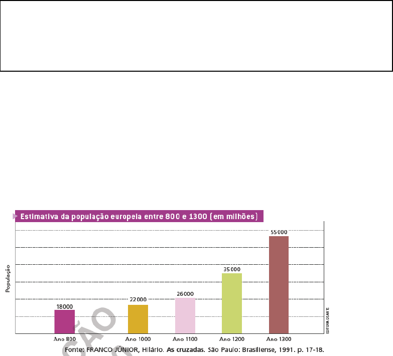 <p>PROFESSOR(A):MARTA ALMEIDA. CONTATO: (98) 9 8229 2222 ROTEIRO DE ESTUDOS IV</p><p>DISCIPLINA: HISTÓRIA 7º ANO TURMA______TURNO______ SÃO BERNARDO-MA, 2021</p><p>ESCOLA MUNICIPAL CÉLIA CRISTINA PEREIRA DOS REIS ENSINO FUNDAMENTAL II</p><p>ALUNO:_____________________________________________________</p><p>Habilidade atendida nessa atividade: (EF07HI01) Explicar o significado de “modernidade” e suas lógicas de inclusão e exclusão, com base em uma concepção europeia.</p><p>(EF07HI04) Identificar as principais características dos Humanismos e dos Renascimentos e analisar seus significados.</p><p>SEGUE ABAIXO O ROTEIRO DE ESTUDO ATRAVÉS DO LIVRO DIDÁTICO: HISTÓRIA SOCIEDADE E CIDADANIA, EDITORA FTD. 7ºANO. CAPÍTULO 3 MUDANÇAS NA EUROPA FEUDAL.PÁG. 46.</p><p>O revigoramento do comércio e das cidades ...48 As feiras ............................................................ 50</p><p>Cidades novas e antigas ................................ 50 Comerciantes, artesãos e suas corporações ...... 51</p><p>As cidades se libertam ................................... 52 As Cruzadas ........................................................ 53</p><p>Conhecimento e arte ...................................... 55 A universidade ..................................................... 55</p><p>Crise, doenças e revoltas ............................... 56 A Guerra dos Cem Anos ...................................... 57</p><p>Rebeliões camponesas .................................. 59</p><p>ATIVIDADE pág. 61à 63.</p><p>1. Identifique com um X a alternativa INCORRETA. A partir do século XI, na Europa feudal foram introduzidas importantes inovações técnicas na agricultura, tais como:</p><p>a) O uso do arado de ferro (a charrua) em lugar do arado de madeira.</p><p>b) A introdução do sistema de cultura em três campos (rotação trienal).</p><p>c) Um novo modo de atrelar o cavalo usado para puxar o arado. A partir do século X, ele passou a ser atrelado pelo peito, o que aumentava seu rendimento e resistência no trabalho.</p><p>d) O aprimoramento e a difusão dos moinhos acionados pela força do vento ou da água; tais moinhos contribuíram para aumentar a velocidade e a qualidade da moagem de grãos.</p><p>e) Nenhuma das anteriores.</p><p>2. Leitura de gráfico.</p><p>a) O que o gráfico mostra? ________________________________________________________</p><p>______________________________________________________________________________</p><p>b) Em que século a população aumentou mais? ________________________________________</p><p>_______________________________________________________________________________</p><p>c) No título do gráfico há a palavra “estimativa”. O que ela significa? ________________________</p><p>_______________________________________________________________________________</p><p>3. Observe o mapa da página 49 com atenção. Com base no que você estudou no capítulo:</p><p>a) Dê outro título ao mapa.</p><p>________________________________________________________________________________</p><p>b) Identifique as duas principais rotas terrestres que ligavam o sul ao norte da Europa (a cidade de onde partiam e a cidade a que chegavam). ______________________________________________</p><p>________________________________________________________________________________</p><p>c) Por que a área comercial de Champagne aparece em destaque? ___________________________</p><p>________________________________________________________________________________</p><p>d) O que eram as feiras medievais representadas no mapa?________________________________</p><p>________________________________________________________________________________</p><p>4. Sobre as feiras medievais, avalie as alternativas e escreva em seu caderno V para as verdadeiras e F para as falsas:</p><p>a) ( ) Com o aumento do volume de comércio, surgiram também as feiras.</p><p>b) ( ) As feiras medievais duravam de 15 a 60 dias, aconteciam uma ou duas vezes por ano e reuniam mercadores vindos dos mais diferentes lugares.</p><p>c) ( ) As feiras medievais eram semelhantes em tudo às feiras livres atuais.</p><p>d) As feiras medievais comercializavam sobretudo alimentos trazidos de sítios relativamente próximos.</p><p>e) ( ) Como cada comerciante comparecia à feira com a moeda de sua região e como as moedas tinham valores diferentes, surgiram os cambistas, pessoas que faziam o câmbio (troca) do dinheiro.</p><p>f) ( ) Os cambistas colocavam as moedas sobre um banco de madeira para examiná-las. Por isso, receberam o nome de banqueiros.</p><p>5. Identifique com um X a alternativa INCORRETA. Sobre as cidades medievais, pode-se afirmar:</p><p>a) ( ) Tiveram diferentes origens: algumas nasceram ao redor de feiras, outras, às margens dos rios, outras, ainda, em torno do castelo de um nobre.</p><p>b) ( ) Muitas dessas cidades se localizavam nas terras de um nobre, a quem os moradores tinham de pagar impostos e prestar serviços gratuitos.</p><p>c) ( ) Para se libertar do controle dos nobres, os habitantes das cidades uniam seus esforços e compravam cartas de franquia.</p><p>d) ( ) As cidades medievais não apresentavam nenhum dos problemas das cidades atuais.</p><p>6. Leia a letra da canção do cantor Seu Jorge:</p><p>O termo “burguesinha” está associado a um grupo social surgido na Idade Média.</p><p>a) Que grupo é esse e como ele era formado?</p><p>______________________________________</p><p>______________________________________</p><p>b) Por que o cantor refere-se à personagem da letra como “burguesinha”?</p><p>______________________________________</p><p>______________________________________</p><p>c) Aponte paralelos entre a personagem da música e os burgueses medievais.</p><p>________________________________________________________________________________</p><p>7. O final do século XII assistiu ao surgimento das universidades na Europa. Veja o que Roger Bacon, um professor universit