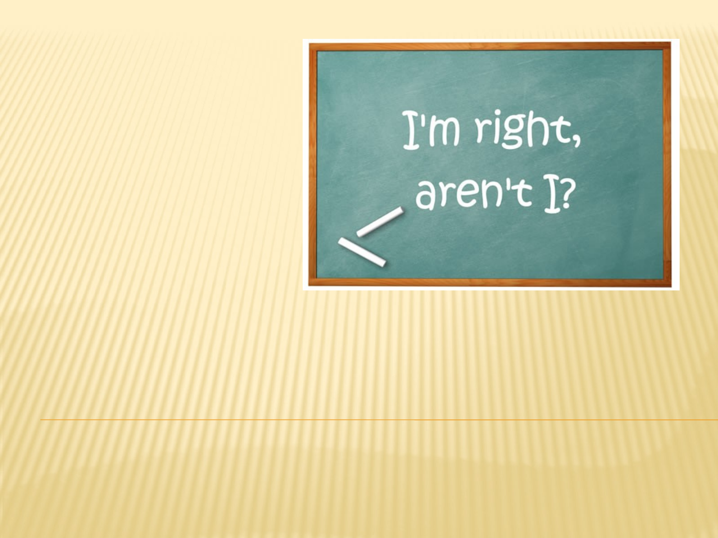 Tag questions When do we use tag questions? We use tag questions when we want to confirm some information, don’t we? Yes, we do! Compare: John is a teacher (I know this is true). John is a teacher, isn’t he? (I’m 90% sure, I need confirmation) Mary runs every day (I know this) Mary runs every day, doesn’t she? (I’m not 100% sure) When do we use tag questions? We also use tag questions when we think someone will agree with us, don’t we? Yes, we do! This project is good for the environment, isn’t it? (I know it’s good and I expect you have the same opinion) It wasn’t a nice weather yesterday, was it? (I think that the weather was bad yesterday and I expect you agree with me) The formation of tag questions Sentence + COMMA (,) + a helping verb (do, don’t, does, doesn’t, did, didn’t, have, haven’t, has, hasn’t, can, can’t, etc.) OR the verb TO BE (is, isn’t, are, aren’t, was, wasn’t, were, weren’t, etc.) + a pronoun (I, you, we, they, he, she, it). Oxford is a school, isn’t it? sentence a helping verb a pronoun The formation of tag questions If the sentence is AFFIRMATIVE (+), the tag will be NEGATIVE (-) Students are smart, aren’t they? If the sentence is NEGATIVE (-), the tag will be AFFIRMATIVE (+). Lazy pupils don’t like to study, do they? The formation of tag questions To help you with the formation, use QUESTIONS (?). Claire likes chocolate. simple sentence Does Claire like chocolate? question Claire likes chocolate, doesn’t she? tag question The committee discussed the local regeneration project. simple sentence Did the committee discuss the local regeneration project? question The committee discussed the local regeneration project, didn’t it? tag question I have a lot of ambitions towards the future. simple sentence Do I have a lot of ambitions towards the future? question I have a lot of ambitions towards the future, don’t I? tag question I haven’t got a lot of ambitions towards the future, have I? tag question exceptions Some tag questions form differently (they are irregular): I’m right, aren’t I? I’m lucky, aren’t I? Nobody is here, are they? (nobody is NEGATIVE, that’s why the tag is AFFIRMATIVE). Everybody has done the homework, haven’t they? There is plenty of food, isn’t there? Short answers Michelle went to a restaurant, didn’t she? Yes, she did. OR No, she didn’t. We shouldn’t drink alcohol, should we? Yes, we should. OR No, we shouldn’t. (this person wants to drink alcohol) (this person agrees that we shouldn’t drink it) practice You are French, _____ ___? You work at the university, _____ ___? Jack isn’t buying a new phone, _____ ___? We can put some things in storage, ____ __? Pablo is going to help us, _____ ___? They haven’t read the novel, _____ ___? You didn’t speak to the manager, ____ __? I’m tired, ____ __? There are a few documents that you have to sign, ____ ___? Nobody is here, ____ ___? It rains in September a lot, _____ ___? Good job, isn’t it? image3.jpeg image4.png image5.jpeg