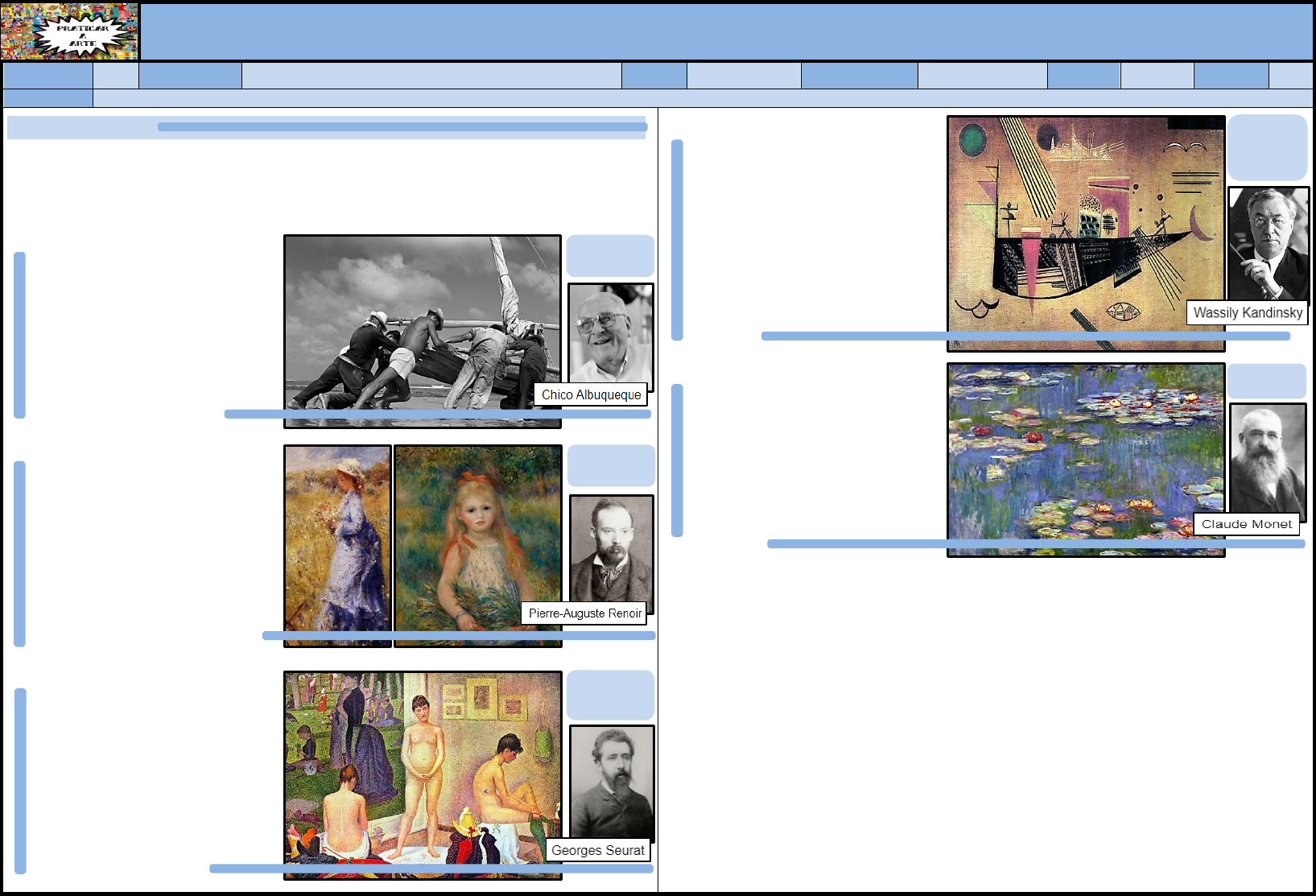 Vamos apreciar algumas obras de arte de artistas e dos movimentos artísticos de cada