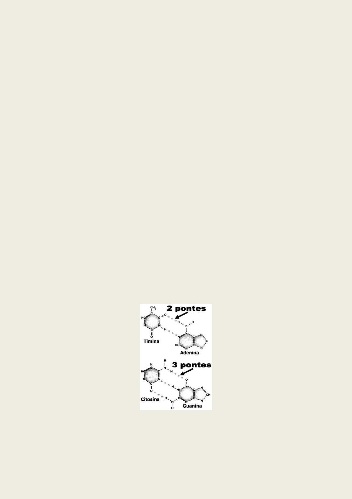 620 QUESTÕES DE BIOLOGIA... COM COMENTÁRIO E RESOLUÇÃO! uma base nitrogenada e um radical fosfato. No entanto, nos eucariontes, o açúcar é a ribose.”] – INCORRETA * Tanto nos procariontes quanto nos eucariontes, os nucleotídeos que compõem o DNA, denominados desoxirribonucleotídeos, são constituídos de uma desoxirribose (carboidrato com 5 átomos de carbono), uma base nitrogenada e um radical fosfato. - AFIRMATIVA II [“Em todos os tipos celulares, o DNA (material genético) é composto de um açúcar, a desoxirribose, uma base nitrogenada (púrica ou pirimídica) e um radical fosfato, formando uma molécula dupla-hélice (modelo de Watson e Crick).”] – CORRETA * O DNA presente em todas as células é uma dupla-hélice (modelo de Watson e Crick), constituído de desoxirribonucleotídeos (unidades do DNA) compostos de uma desoxirribose, uma base nitrogenada [púrica (adenina ou guanina) ou pirimídica (citosina ou timina)] e um radical fosfato. - AFIRMATIVA III [“Em todos os tipos celulares, o DNA (material genético) é formado por duas cadeias de nucleotídeos, compostos de um açúcar de cinco carbonos, a desoxirribose, um radical fosfato e uma base nitrogenada cujas quantidades de adenina e guanina são iguais bem como as de citosina e timina.”] – INCORRETA * No DNA (dupla-hélice) de todos os tipos celulares, a adenina (base púrica) pareia com a timina (base pirimídica) e a guanina (base púrica) pareia com a citosina (base pirimídica). Nesses DNAs, portanto, as quantidades de adenina e timina são iguais, bem como as de guanina e citosina. - AFIRMATIVA IV [“Nos procariontes, seres unicelulares mais simples, o DNA (material genético) é um polinucleotídeo fita simples, enquanto, nos eucariontes, é um polinucleotídeo do tipo dupla-hélice (modelo de Watson e Crick).”] – INCORRETA * Tanto nos procariontes quanto nos eucariontes, o DNA é um polinucleotídeo do tipo dupla- hélice (modelo de Watson e Crick). - AFIRMATIVA V (“Em todos os tipos celulares, o DNA (material genético) é uma dupla- hélice resultante de dois polinucleotídeos, ligados entre si por suas bases, através de pontes de hidrogênio entre pares de bases específicas: a adenina emparelha-se com a timina, e a guanina, com a citosina.”) – CORRETA * Em todos os tipos celulares, o DNA é uma dupla-hélice constituída por duas cadeias (ou fitas) polinucleotídicas, unidas por pontes de hidrogênio que se formam entre as bases. Nessa dupla- hélice a adenina pareia com a timina e a guanina com a citosina. Entre a adenina e a timina se formam 2 pontes e entre guanina e citosina se formam 3 pontes, como se pode ver na figura abaixo. 13. (UFV) A sequência de nucleotídeos 3′……ATGGATTAG……5′ de uma fita de DNA após ser transcrita e traduzida irá codificar para qual peptídeo?