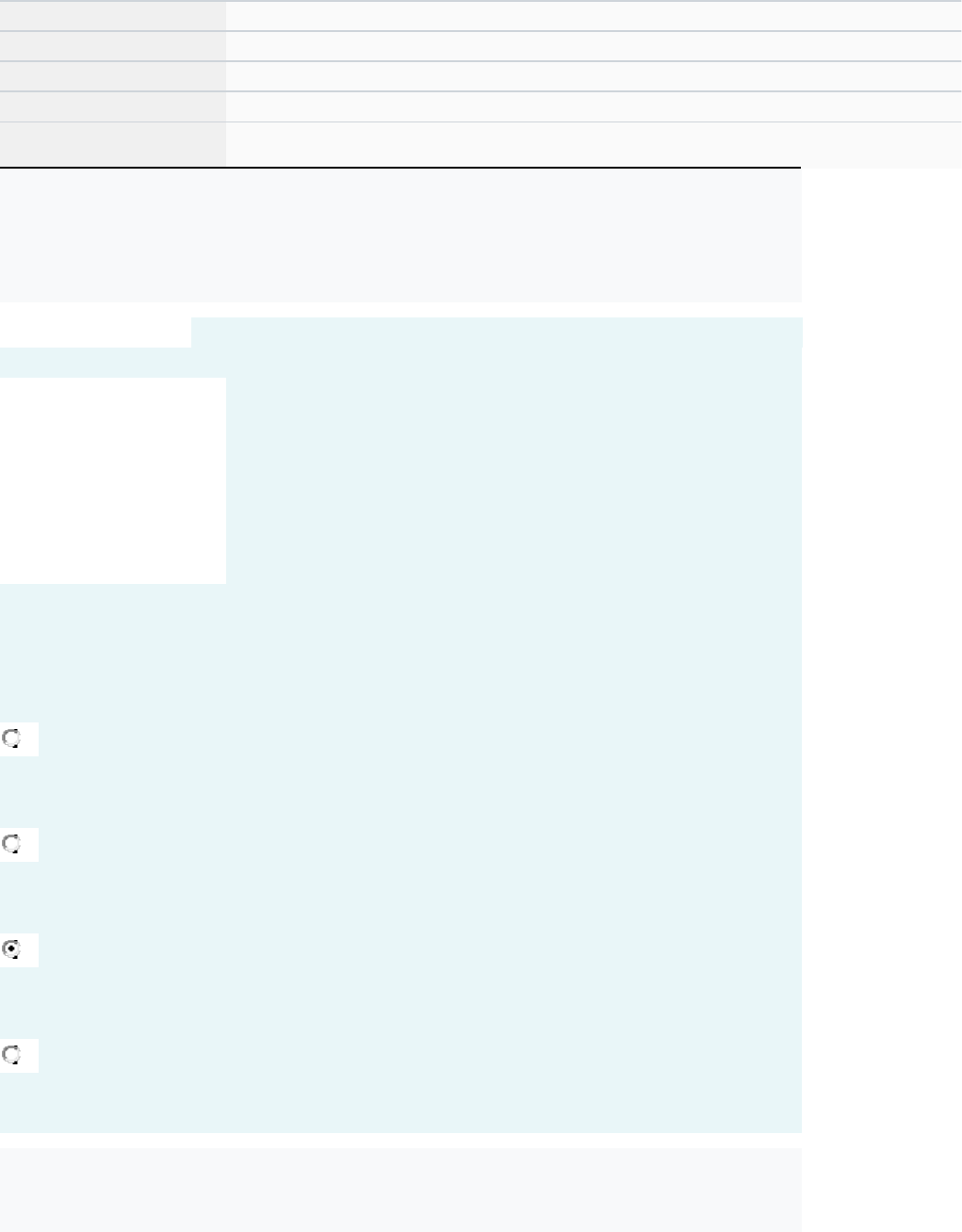 Questionário Avaliativo - Seção 1 Iniciado em sexta-feira, 25 out. 2024, 20:25 Estado Finalizada Concluída em sexta-feira, 25 out. 2024, 20:36 Tempo empregado 10 minutos 37 segundos Avaliar 25,00 de um máximo de 25,00(100%) Parte superior do formulário Questão 1 Correto Atingiu 5,00 de 5,00 Marcar questão Texto da questão Em relação ao momento antes do dia de aplicação do teste, o Aplicador precisa: I. Preencher e assinar a Lista de Presença/Termo de Sigilo, Compromisso e Confidencialdiade. II. Participar das capacitações previstas. III. Participar somente da capacitação do Evento de Alinhamento. IV. Fazer somente a leitura do Manual de Aplicação. Estão CORRETAS as afirmativas: a. II, III, apenas. b. I, III, IV, apenas. c. I, II, apenas. d. II, III, IV, apenas. Questão 2 Correto Atingiu 5,00 de 5,00 Marcar questão Texto da questão Em relação ao dia de aplicação do teste, o Aplicador precisa: I. Chegar com antecedência para o início da aplicação. II. Conferir as informações que constam na etiqueta do pacote. III. Ir direto para a sala de aplicação e aguardar a chegada do diretor IV. Providenciar um relógio para marcação do tempo. Estão CORRETAS as afirmativas: a. I, II, IV, apenas. b. I, II, III, apenas. c. II, III, IV, apenas. d. I, III, IV, apenas. Questão 3 Correto Atingiu 5,00 de 5,00 Marcar questão Texto da questão Em relação ao momento após a aplicação do teste, o Aplicador precisa: I. Lacrar o pacote de prova dentro da sala de aula. II. Levar o pacote de prova para sua casa e entregar quando for solicitado. III. Destacar o Cartão-Resposta do caderno de teste. IV. Devolver dentro do pacote de teste todo o material de aplicação. Estão CORRETAS as afirmativas: a. I, III, IV, apenas. b. I, IV, apenas. c. I, II, apenas. d. II, III, IV, apenas. Questão 4 Correto Atingiu 5,00 de 5,00 Marcar questão Texto da questão Assinale a alternativa correta que apresenta as responsabilidades do Aplicador no dia de realização do teste da Avaliação Somativa: a. Distribuir, guardar, acompanhar a aplicação e recolher os instrumentos da avaliação na escola sob sua responsabilidade. b. Coordenar a aplicação dos instrumentos da avaliação, acompanhando o trabalho de campo dos Aplicadores. c. Abrir e conferir o pacote de teste em sala reservada, sem danificá-lo. d. Aplicar os testes e assegurar a padronização dos procedimentos, sigilo e ética na aplicação. Questão 5 Correto Atingiu 5,00 de 5,00 Marcar questão Texto da questão Assinale F para as alternativas falsas e V para as alternativas verdadeiras. Para se tornar um aplicador, ( ) Basta participar das capacitações on-line ou presencial oferecidas pelo Coordenador. ( ) Deve preencher e assinar a Lista de Presença/Termo de Sigilo, Compromisso e Confidencialidade no Evento de alinhamento Selo Aplicador CAEd. ( ) Entrar no Sistema de Avaliação é opcional se você já foi aprovado no Evento de alinhamento Selo Aplicador CAEd ( ) Precisa participar e ser aprovado no Evento de Alinhamento Selo Aplicador CAEd. A sequência CORRETA, de cima para baixo, é: a. F, V, F, V. b. V, F, F, F. c. V, F, V, V. d. F, V, F, F. Parte inferior do formulário image1.wmf image2.wmf