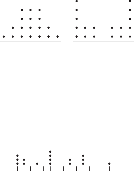 50 › McGraw Hill 500 GRE® Math Questions Distribution X 20 30 40 50 60 70 80 Distribution Y 20 30 40 50 60 70 80 120. Quantity A Quantity B The standard deviation of The standard deviation of Distribution X Distribution Y (A) Quantity A is greater. (B) Quantity B is greater. (C) The two quantities are equal. (D) The relationship cannot be determined from the information given. Minutes Number of Minutes 16 Customers Waited in Line 5 10 15 20 The preceding dot plot shows the number of minutes 16 customers waited in line at a coffee shop. 121. Quantity A Quantity B The interquartile range of the data The range of the data divided by 2 (A) Quantity A is greater. (B) Quantity B is greater. (C) The two quantities are equal. (D) The relationship cannot be determined from the information given. 02_McCune_Ch01.indd 50 2/21/22 5:02 PM