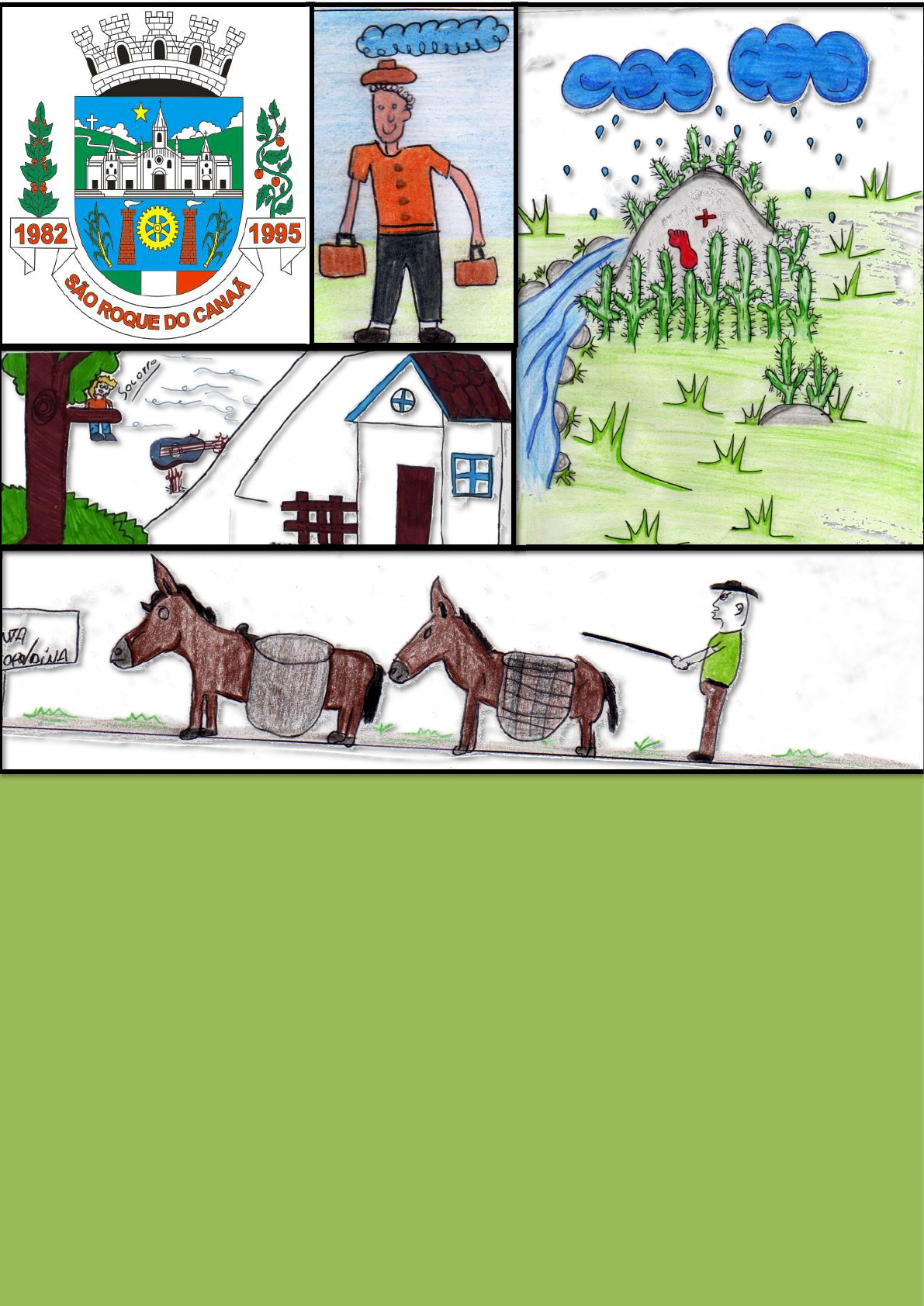 <p>Lendas, contos,</p><p>causos, superstições e</p><p>curiosidades</p><p>Município de São Roque do Canaã/ES</p><p>Projeto Resgate Cultural 2013/2014</p><p>2</p><p>PREFEITURA MUNICIPAL DE SÃO ROQUE DO CANAÃ</p><p>SECRETARIA MUNICIPAL DE EDUCAÇÃO</p><p>SECRETARIA MUNICIPAL DE MEIO AMBIENTE</p><p>SECRETARIA MUNICIPAL DE TURISMO, CULTURA, ESPORTE E LAZER</p><p>LENDAS, CONTOS, CAUSOS, SUPERTIÇÕES E CURIOSIDADES</p><p>DO MUNICIPIO DE SÃO ROQUE DO CANAÃ/ES</p><p>PREFEITO MUNICIPAL:</p><p>MARCOS GERALDO GUERRA</p><p>VICE-PREFEITO MUNICIPAL:</p><p>ODAYR JOSE LUCHI</p><p>SECRETÁRIA MUNICIPAL DE EDUCAÇÃO:</p><p>CARLA GIANI ARRIGONI FORMENTINI</p><p>SECRETÁRIO MUNICIPAL DE MEIO AMBIENTE:</p><p>HUGO ROLDI GUARIZ</p><p>SECRETÁRIO MUNICIPAL DE TURISMO, CULTURA, ESPORTE E LAZER:</p><p>GLAUBER REGATTIERI ROLDI</p><p>3</p><p>PREFEITURA MUNICIPAL DE SÃO ROQUE DO CANAÃ</p><p>SECRETARIA MUNICIPAL DE EDUCAÇÃO</p><p>SECRETARIA MUNICIPAL DE MEIO AMBIENTE</p><p>SECRETARIA MUNICIPAL DE TURISMO, CULTURA, ESPORTE E LAZER</p><p>PEDAGOGO ORIENTADOR DO PROJETO NA SECRETARIA MUNICIPAL DE EDUCAÇÃO:</p><p>RAFAEL CALCI</p><p>TÉCNICO DA SECRETARIA MUN. DE TURISMO, CULTURA, ESPORTE E LAZER:</p><p>ALEX SANTIAGO DUARTE LEITE DA SILVA</p><p>CORRIGIDO E REVISADO POR:</p><p>PROFESSOR MARCOS ANTONIO WOLKARTT</p><p>PROFESSORA MARISTELA FADINI MELOTTI</p><p>ESCOLAS ENVOLVIDAS:</p><p>EMEIEF “DARLY NERTY VERVLOET”</p><p>EMEIEF “JOSEPHIR BOSCHETTI”</p><p>EMEIEF “LUIZ MÔNICO”</p><p>SÃO ROQUE DO CANAÃ, 2014</p><p>4</p><p>“Porque não se vai sozinho ao encontro, não se vai nu, mas com</p><p>toda a carga de memória que se tem, e das próprias</p><p>experiências.</p><p>(Eliana Yunes)</p><p>5</p><p>APRESENTAÇÃO</p><p>Folclore é o conjunto de tradições e manifestações populares constituído por lendas,</p><p>mitos, provérbios, danças e costumes que são passados de geração em geração.</p><p>O folclore simboliza a cultura popular e apresenta grande importância na identidade de um</p><p>povo, de uma nação. Para não se perder a tradição folclórica, é importante que as</p><p>manifestações culturais sejam transmitidas através das gerações.</p><p>Com objetivo de potencializar a rede de iniciativas culturais do Município de São Roque do</p><p>Canaã, através do resgate das tradições de sua cultura popular, bem como do incentivo na</p><p>formação e expressão popular para moradores de nosso município pensamos em construir</p><p>o presente trabalho, visando resgatar causos, contos e lendas regionais, no intuito de</p><p>tornar visível a todos a riqueza de demonstrações culturais presente no município.</p><p>Tais textos foram produzidos pelos alunos das Escolas Municipais de Educação Infantil e</p><p>Ensino Fundamental “Darly Nerty Vervloet”, “Josephir Boschetti” e “Luiz Mônico”, após</p><p>mapeamento e visitas às famílias das comunidades que as escolas atendem, para coleta de</p><p>dados.</p><p>Tal projeto teve seu primeiro mapeamento realizado em 2008, pela EMEIEF “Darly Nerty</p><p>Vervloet”, um segundo mapeamento foi realizado em 2013 com os alunos da EMEIEF “Darly</p><p>Nerty Vervloet” e também com as escolas “Josephir Boschetti” e “Luiz Mônico”, com</p><p>intuito de obter mais dados e novas histórias.</p><p>Durante o primeiro semestre do ano de 2014, os alunos realizaram a ilustração dos textos</p><p>com os alunos, bem como a organização, digitação e edição dos mesmos, para que durante</p><p>a semana do folclore, pudéssemos reproduzir esse material para todo o município de São</p><p>Roque do Canaã.</p><p>CAUSOS</p><p>6</p><p>Causos são narrativas populares em que une os costumes do</p><p>povo e o prazer de contar história. Possui um aspecto irônico</p><p>e ambíguo, o que resulta no humor do texto.</p><p>Contar histórias é uma arte que nasceu com o próprio homem,</p><p>na tentativa de transmitir um conhecimento de uma geração</p><p>para outra, inscrevendo as experiências na memória. Contar e</p><p>ouvir histórias são uma tradição tão antiga, que não se sabe</p><p>ao certo a sua origem.</p><p>No Brasil, os “causos” receberam a influência dos indígenas,</p><p>dos africanos e dos portugueses e a arte de contar histórias</p><p>representa uma importante fonte de identidade cultural e</p><p>social, simbolizando a perpetuação de uma tradição, a</p><p>preservação da memória, a união de gerações, a interação de</p><p>grupos e a “gostosura” de ouvir histórias.</p><p>A arte de contar e ouvir histórias, portanto, é uma prática de</p><p>suma importância para a preservação da memória da</p><p>sociedade e para a formação de leitores. No entanto, a</p><p>contação de histórias vem sendo esquecida pelo homem</p><p>contemporâneo. A criança é parte de uma história que é fruto</p><p>de histórias passadas e será fio usado para tecer histórias</p><p>futuras. Desse modo, procurou-se com o desenvolvimento</p><p>deste projeto propiciar o resgate cultural e a formação de</p><p>pequenos leitores por meio do contar, do ouvir, do escrever e</p><p>do reescrever os textos orais pesquisados e coletados,</p><p>fomentando a memória e o imaginário social tão adormecidos</p><p>no mundo moderno, reafirmando, assim, a importância de</p><p>nossos antepassados e fazendo com que o conhecimento por</p><p>eles narrados não se apague da memória do homem</p><p>contemporâneo.</p><p>1. VIDA DURA</p><p>7</p><p>Local: Córrego Santa Rosa;</p><p>Área de abrangência: Reduto Familiar;</p><p>Personagens envolvidos: Dona Anita, o marido e o cunhado;</p><p>Autor (pesquisador): Alunos das séries finais do ano letivo de 2008;</p><p>Ilustração: Mayke Oliveira Cremonini;</p><p>Escola: EMEIEF “Darly Nerty Vervloet”.</p><p>Antigamente, nós trabalhávamos muito e não tínhamos nem um capote e nem um chinelo.</p><p>Colhia muito café que era levado no lombo de burros, até</p><p>Santa Leopoldina. Gas