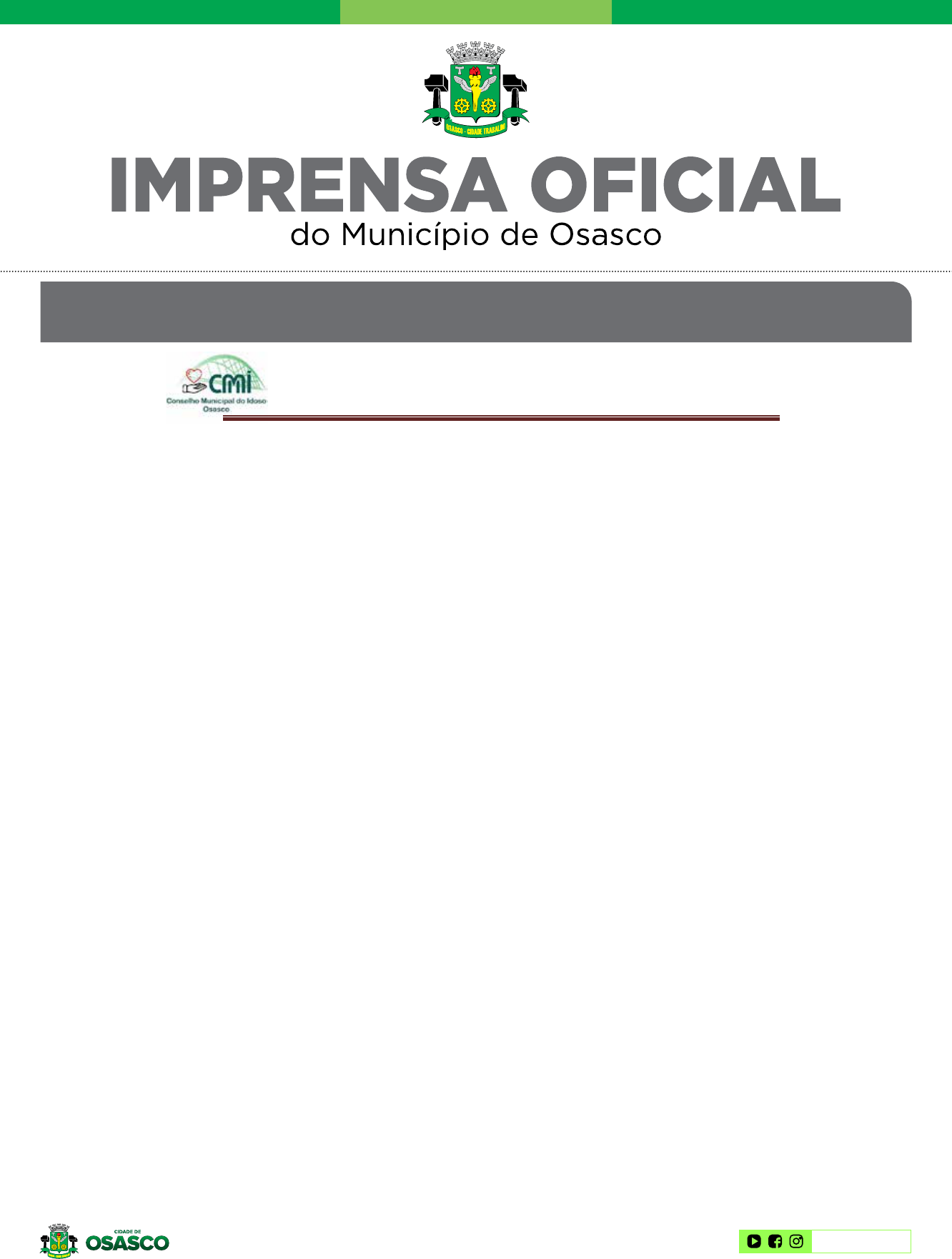 @ PrefeituradeOsasco ANO XXV | Nº 2733 23 | OUTUBRO | 2024 www.osasco.sp.gov.br GABINETE DO PREFEITO CONSELHO MUNICIPAL DO IDOSO DE OSASCO Lei Municipal nº 3.397 de 19/01/1998, alterada pelas Leis nº 4.637 de 15/05/2014, nº 4.695 de 29/06/2015 e nº 5.132 de 22/09/2021 Rua Dom Ercílio Turco, 180 – Bela Vista – Osasco – SP – CEP 06080- 000 / Telefone: (11) 2183-6718 / Email: cmi.sas@osasco.sp.gov.br ATA DA 4ª REUNIÃO ORDINÁRIA DO CONSELHO MUNICIPAL DO IDOSO - CMI Data: 10 de setembro de 2024 Local: Auditório da Secretaria Municipal de Assistência Social, Rua Dom Ercílio Turco, 180, Bela Vista, Osasco – SP No dia dez de setembro de dois mil e vinte e quatro, na sede da Secretaria Municipal de Assistência Social, em seu auditório, localizado na Rua Dom Ercílio Turco, nº 180, Bela Vista, foi realizada a 4ª Reunião Ordinária do Conselho Municipal do Idoso - CMI. Estiveram presentes as seguintes conselheiras e conselheiros: 1-Ana Paula Loureiro Harada (ANOSCAR); 2-Cibele Tomaz do Carmo (Secret. De Habitação); 3-Cirlei Correa Alves de Oliveira (Secret. De Habitação); 4-Dr. Claudio Ramos da Silva (OAB); 5-Dr. Edionaldo Bomfim de Jesus (OAB); 6-Elza Hieko Aoki (Pastoral da Pessoa Idosa); 7- Gilma Maria Ramos da Silva (Associação Camila); 8-Dr. Hamilton Galvão Araújo (CAIFA); 9-Jaci Rodrigues Chaves (UAPO); 10-Margaret Vaz Figueira (PGM); 11-Maria Aparecida Alcantara Doria (Secr. Saúde); 12-Maria Aparecida Vilas Boas (CATI); 13-Mariana Grassia (AUDAX); 14-Paulo Maria Vieira de Camargo (A.C.I.M.O); 15-Rafael Cardoso Buin (SEGOV); 16- Debora Cristiane de Jesus (Comunidade Impacto)17-Deise Tortolero Ferreira do Rosário (S. Educação); 18-Tatiane Ap. de Moraes Oliveira (Secr. De Planej. E Gestão); 19-Solange Garramona (Secr. De Transporte e Mobilidade Urbana); 20-Miriam de Sousa Fileto (Secr. De Transporte e Mobilidade Urbana). Estiveram presentes como convidados: Sra. Daiane A. da Silva, Gerente da Vigilância Sócio Assistencial e o Dr. George Antônio S. Tavares, Presidente da Comissão da Pessoas Idosa da 56ª Subseção OAB/ SP. Secretaria executiva do CMI: Raíssa Santos de Oliveira, Rafael Model Panham, Rodrigo de Medeiros Moreira e Thaís Cardoso de Carvalho. Abertura: A 4ª Reunião Ordinária foi iniciada pelo Presidente, Dr. Hamilton Galvão Araújo, que cumprimentou a todos os presentes e informou a pauta: 1. Abertura da reunião com a palavra do Presidente; 2. Leitura e deliberação da Ata anterior; 3. Ordem do dia: I. Inclusão do Dr. Claudio na Comissão de Mobilização; II. A saída de dois Conselheiro(a)(s) da Comissão de Avaliação e Gestão de Projetos em respeito a previsão Legal da formação da Comissão; III. Comemoração ao Dia da Pessoa Idosa; IV. Apresentação do Parecer da Comissão competente a respeito da A.C.M; V. Palavra para plenária e outros informes; 4. Encerramento com as considerações finais. Leitura, Debate e Aprovação da Ata Anterior: O Presidente solicitou ao Secretário que realizasse a leitura da ata da reunião anterior. A ata foi lida, votada e aprovada por unanimidade. Ordem do Dia: O Presidente iniciou esclarecendo sobre as alterações nas Comissões em obediência as determinações contidas na Lei. Em seguida foi disponibilizada a palavra ao Dr. George Presidente da Comissão da Pessoa Idosa da 56º Subseção OAB/SP, o qual trouxe esclarecimentos sobre o evento denominado Semana do Idoso e como funcionará. Subsequentemente foi lido pelo Secretario o parecer da Comissão de Inscrição, Registro, Normas e Fiscalização com relação a renovação da inscrição ACM, ao final da leitura a Coordenadora da Comissão, Conselheira Gilma, falou sobre os trabalhos desenvolvidos na Comissão. Após as ponderações o presidente Hamilton pôs em votação a aprovação do parecer o qual foi aprovado por unanimidade. @ PrefeituradeOsasco IMPRENSA OFICIAL DO MUNICÍPIO DE OSASCO 2 Osasco, 23 de outubro de 2024 Órgão Oficial criado pelo Decreto nº 8.607, de 04 de março de 1998 - Editado pela Secretaria de Comunicação Social da Prefeitura de Osasco - Av. Lázaro de Mello Brandão, 300 CEP 06023-901 - Fone 3652 9520 IMPRESSO EM OFICINAS PRÓPRIAS - e-mail: imprensa@osasco.sp.gov.br site: www.osasco.sp.gov.br CONSELHO MUNICIPAL DO IDOSO DE OSASCO Lei Municipal nº 3.397 de 19/01/1998, alterada pelas Leis nº 4.637 de 15/05/2014, nº 4.695 de 29/06/2015 e nº 5.132 de 22/09/2021 Rua Dom Ercílio Turco, 180 – Bela Vista – Osasco – SP – CEP 06080- 000 / Telefone: (11) 2183-6718 / Email: cmi.sas@osasco.sp.gov.br Dando continuidade, o Presidente disponibilizou a palavra para a senhora Daiane para fazer uma breve palestra sobre a importância da capacitação dos Conselheiros (as), a qual apresentou com riqueza de detalhes a importância da capacitação dos membros do Conselho. Encerrada a apresentação da senhora Daiane, o presidente a agradeceu pelos esclarecimentos, e falou sobre as dificuldades de o Conselho obter dos aparelhos públicos, respostas a respeito das providencias tomadas pelos setores com relação às denúncias que chegam ao conhecimento do Conselho. Encerramento: O Presidente Hamilton Galvão Araújo agradeceu a presença de todas as pessoas e deu por encerrada a Sessão. Eu, Edionaldo Bomfim de Jesus, secretário, redigi a presente ata, que, após ser lida e aprovada, será assinada por quem de direito. Osasco, 08 de outubro de 2024 Presidente do CMI: Hamilton Galvão Araujo Secretário do CMI: Edionaldo Bomfim de Jesus Tesoureira do CMI: Deborah Cristiane de Jesus Santos Biênio 2024/2026 @ PrefeituradeOsasco IMPRENSA OFICIAL DO MUNICÍPIO DE OSASCO 3 Osasco, 23 de outubro de 2024 RESUMO DAS PORTARIAS 23.10.2024 ROGÉRIO LINS, Prefeito do Município de Osasco, usando das atribuições que lhe são conferidas por Lei; RESOLVE: EXONERAR: PORTARIA Nº 3124 / 2024 - EXONERAR, SERVIDOR EM ESTÁGIO PROBATÓRIO, ADRIANA DA SILVA ANDRADE, – matrícula nº 198.727, servente de escola, de pro