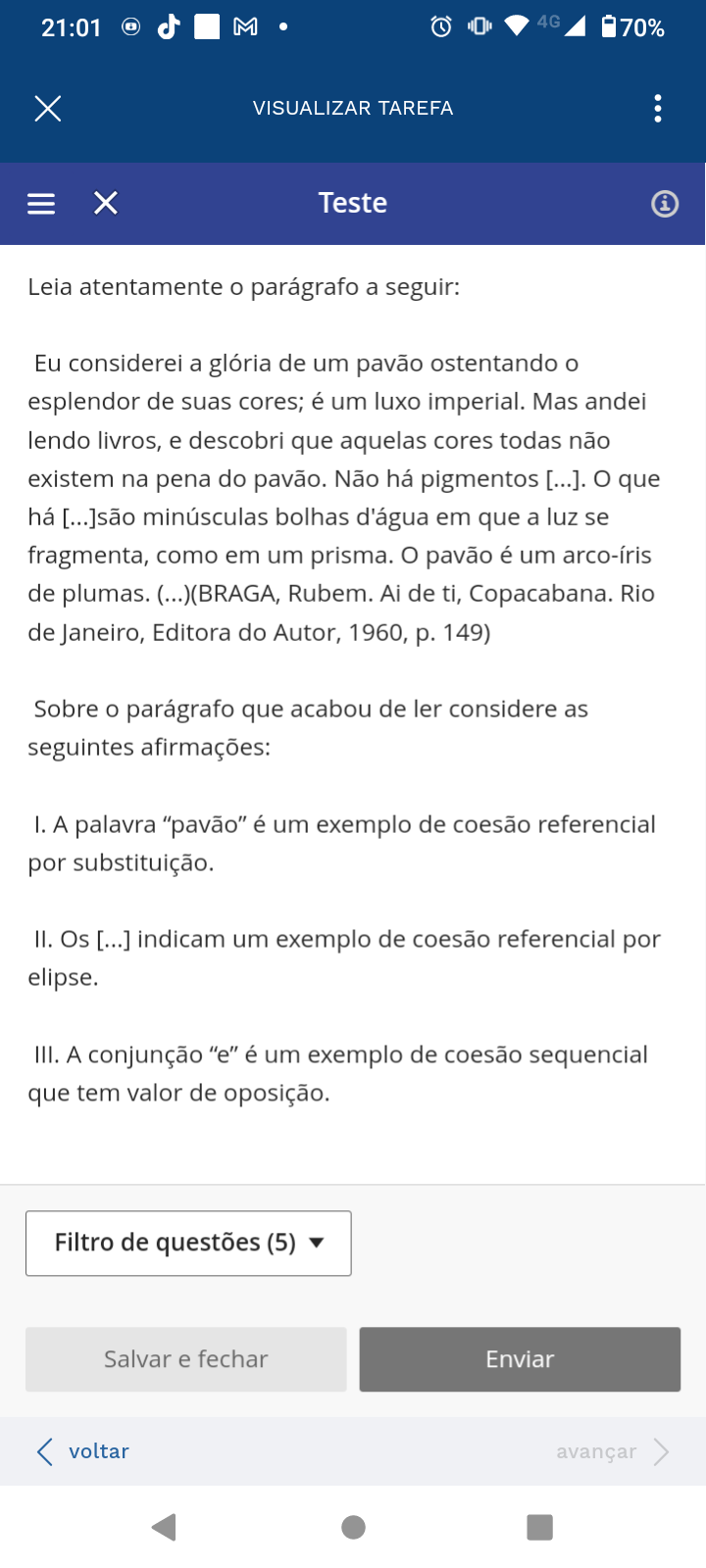 Questão 9 Segmentar, é um processo em que se identifica as partes de uma perícope (ideia). É um procedimento idêntico ao da delimitação, com base n...