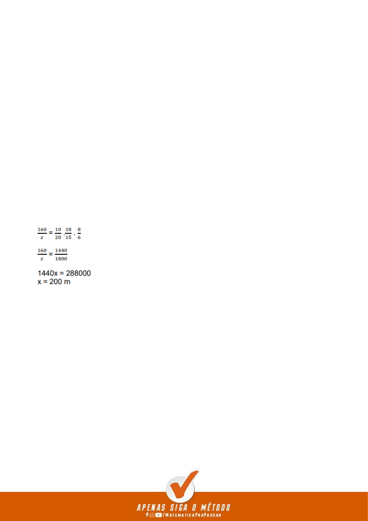 Página 483 16 - Dez operários fazem 160 m de uma construção em 18 dias de 8 horas de serviço. Quantos metros farão dessa obra em 15 dias,trabalhando 6 horas por dia, 20 operários? Resolução da questão Montando uma regra de três composta, temos: METROS OPERÁRIOS DIAS HORAS 160 10 18 8 x 20 15 6 Comparando metros com operários: Se aumentar o número de operários, será possível fazer mais metros de muro. (DIRETAMENTE) Comparando metros com dias: Se diminuir o número de dias, irá diminuir o número de metros de muro construídos. (DIRETAMENTE) Comparando metros com horas: Se diminuir o número de horas, irá diminuir o número de metros de muro construídos. (DIRETAMENTE) 17 - A composição em g, presente em 250ml de certa solução, é dividida da seguinte maneira: 1/6 corresponde á substância X, 1/10 corresponde a substância Y, 2/5 corresponde a Z e 5 g correspondente a substância W. Logo, o total de gramas contidos em 1 litro desta solução é? a) 40 b) 50 c) 60 d) 70 Resolução da questão Na composição dos 250 ml desta solução, existe uma parte dela em gramas que tem peso “m”. As frações do exercício referem-se a esta composição em gramas e não aos 250 ml. Ou seja:
