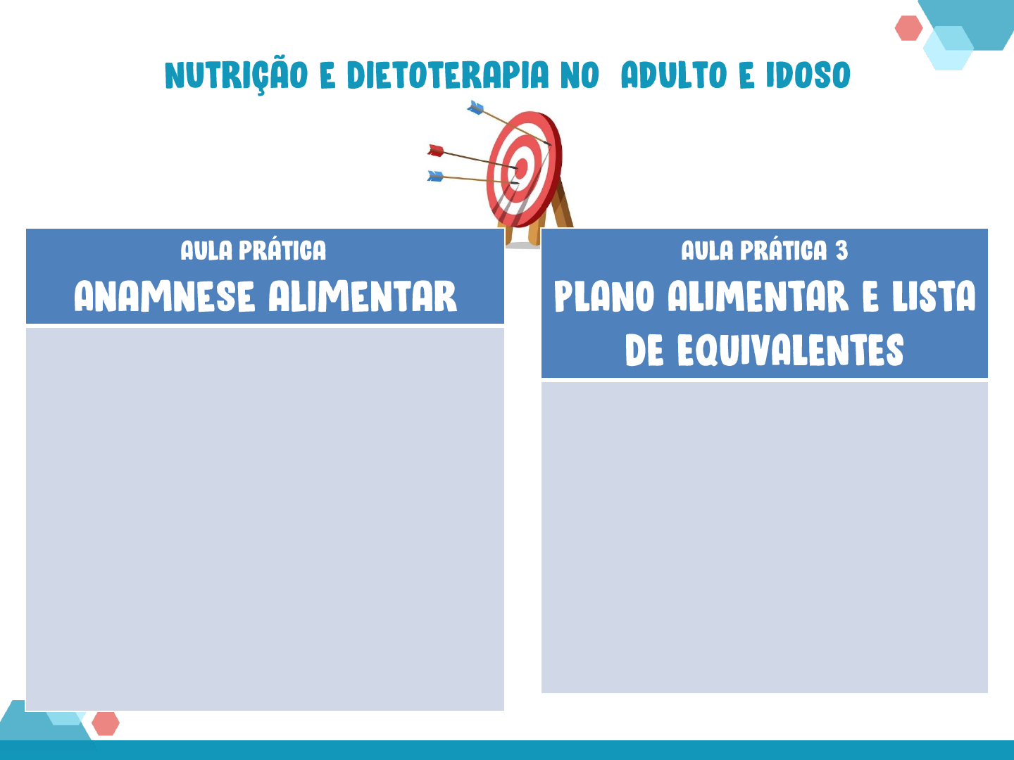 2 A sala se dividiria em grupos, para: • Estruturar formulários de anamnese alimentar e recordatório 24h; • Aplicar os formulários; • Calcular o consumo calórico do entrevistado, com base no recordatório 24h (AVANUTRI/DIETBOX). • Elaborar um plano alimentar para um colega de turma por meio de sistema de nutrição (AVANUTRI/DIETBOX). • Elaborar lista de substituição de alimentos personalizada para o colega em questão. Para planejar uma dieta deve-se levar em conta suas características: ✓Idade ✓Sexo ✓Atividade Física ✓Condições sócio-econômicas ✓Hábitos Alimentares ✓Clima Para a composição do cardápio, deve-se considerar a distribuição do aporte calórico: 6 refeições: Desjejum (20%) Colação Almoço Lanche Jantar Ceia (5%) (30%) (10%) (30%) (5%) 5 refeições: Desjejum (20%) Almoço Lanche Jantar Ceia (30%) (10-15%) (30%) (5-10%) 4 refeições: Desjejum (20-25%) Almoço Lanche Jantar (30%) (15-20%) (30%) Harmonia de cores: Ex.2: Frango assado Arroz Feijão Vagem refogada Salada de beterraba e alface Melancia Planejar as calorias que serão dadas para o colega: - Fórmulas: DRI´s, Harris-Benedict e Regra de bolso Perda de peso: 20 – 25 kcal/kg peso Manter peso: 25 – 30 kcal/kg peso Ganho de peso: 30 – 40 kcal/kg peso Distribuir a proporção dos macronutrientes CHO 45-65% do VCT PTN 10-35% do VCT LIP 20-35% do VCT Exemplo: Considerando uma colega do sexo feminino, 20 anos, 74 kg, 1, 65m: - IMC: 27,2 kg/m² - Sobrepeso - Dar de 20 a 25 cal/kg de peso atual: vai de 1480 a 1850 kcal/dia. 1. Adicionar um paciente (se tiver com o notebook, faz individual com seus dados) 2. Preencher medidas antropométricas 3. Diagnóstico nutricional 4. Definir NER e VET de acordo com objetivo (manutenção, perda ou ganho de peso) 5. Montar plano alimentar com distribuição dos macronutrientes segundo recomendações 6. Fazer uma lista de substitutos alimentares pelo menos para uma refeição principal (café da manhã, almoço ou jantar) Slide 1: Nutrição e Dietoterapia no Adulto e Idoso Slide 2: Aula prática 2 ANAMNESE ALIMENTAR Slide 3: Aula prática 2 RECORDATÓRIO 24H Slide 4: Aula prática 2 CALCULAR VET Slide 5: Aula prática 3 PLANO ALIMENTAR Slide 6: Aula prática 3 PLANO ALIMENTAR Slide 7: Aula prática 3 PLANO ALIMENTAR Slide 8: Aula prática 3 PLANO ALIMENTAR Slide 9: Aula prática 3 PLANO ALIMENTAR Slide 10: Aula prática 3 PLANO ALIMENTAR
